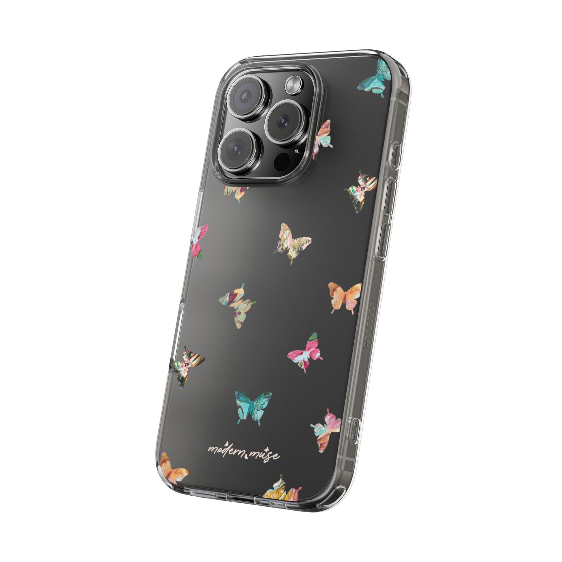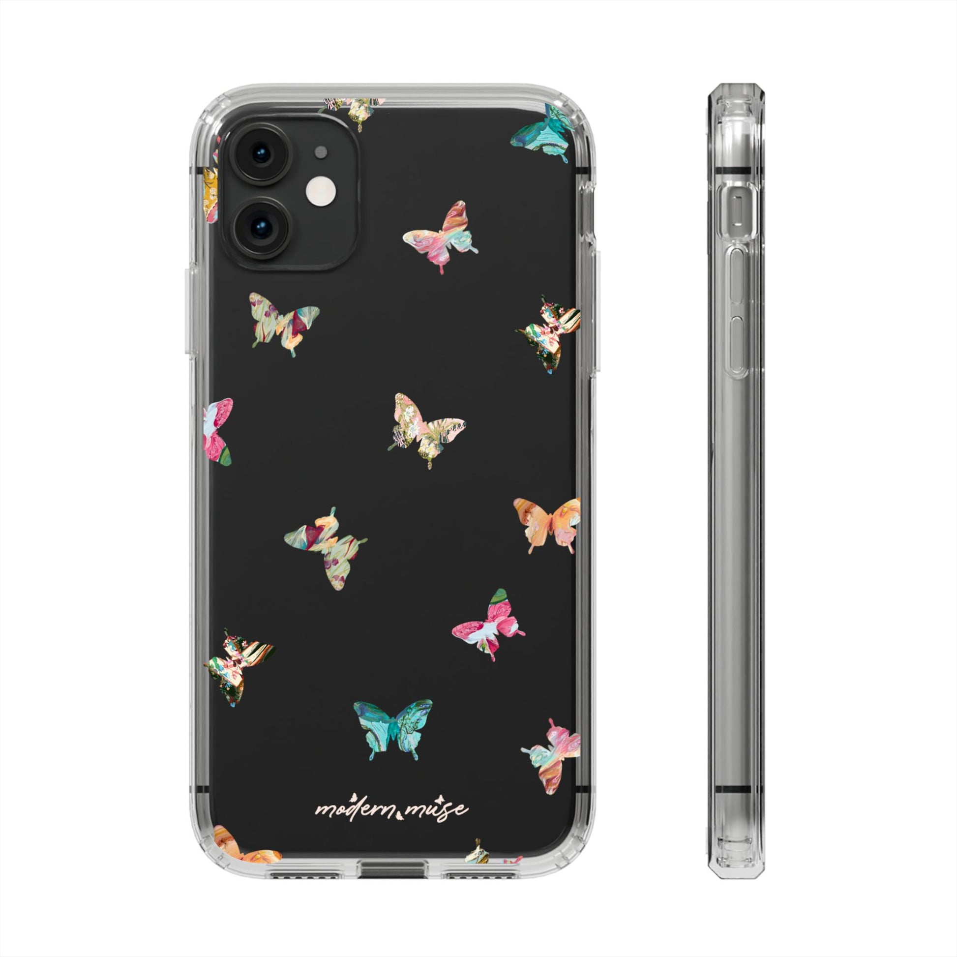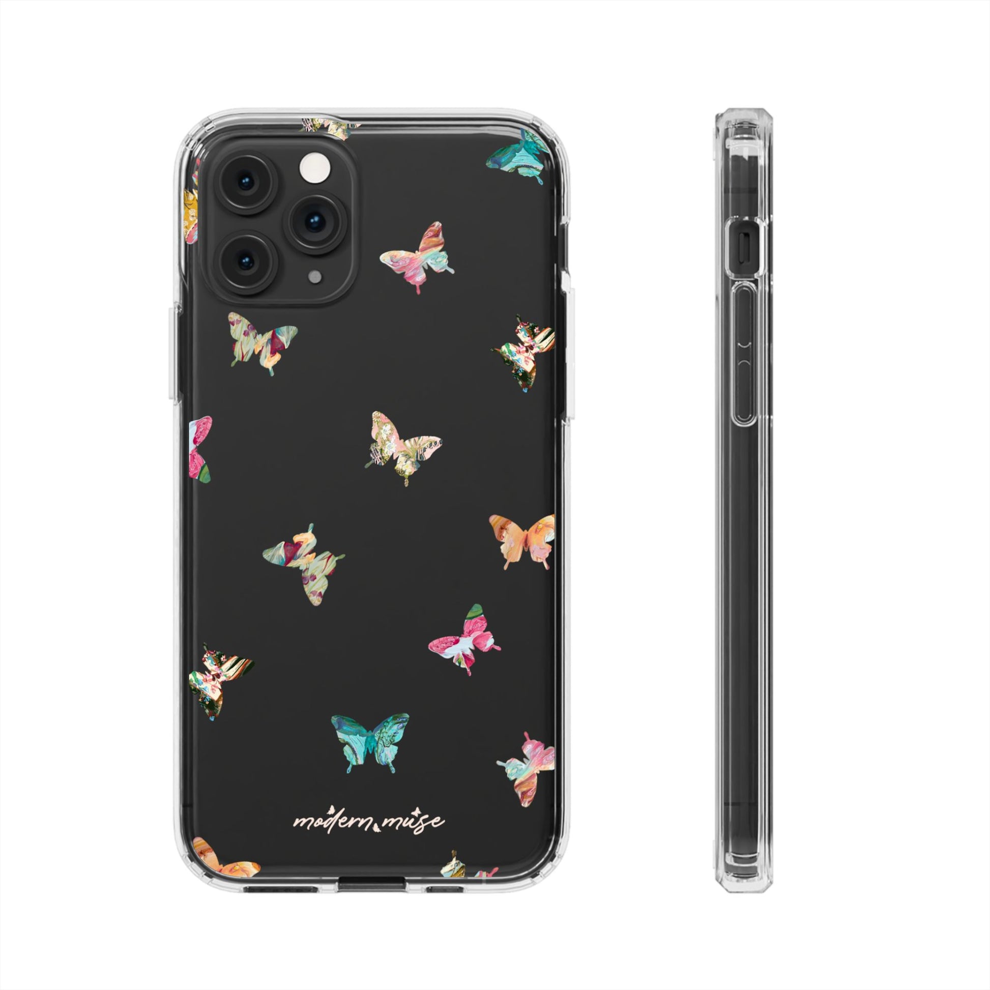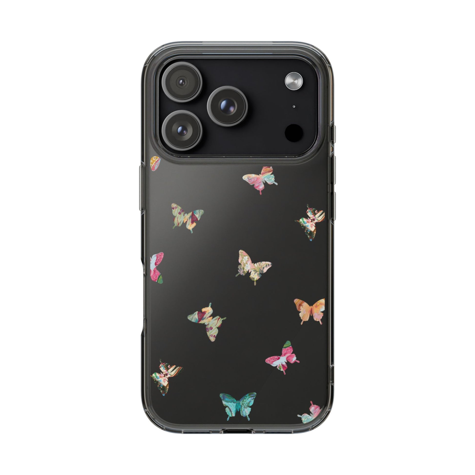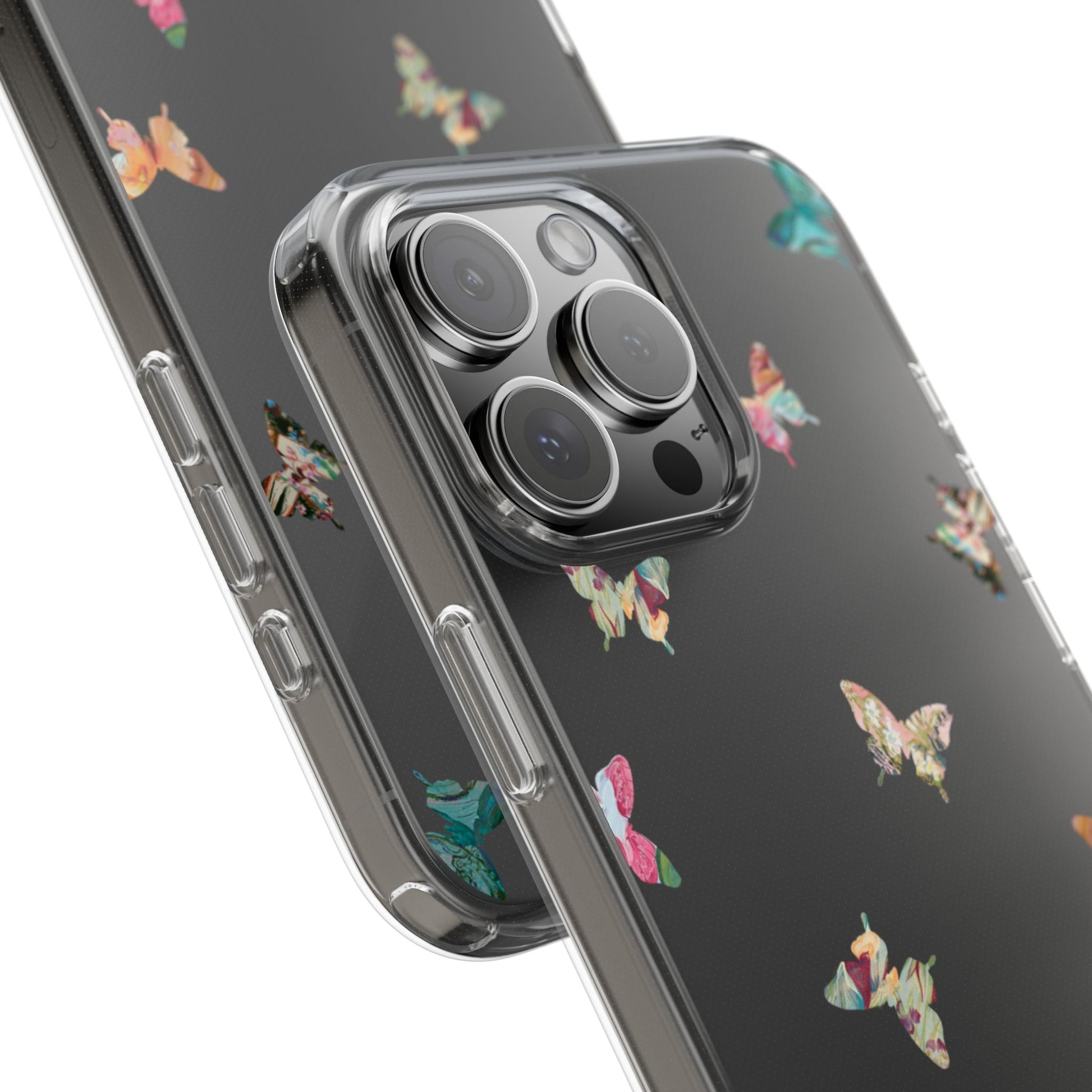 Clear, slim, and endlessly cheerful — this clear impact-resistant case keeps your phone safe while letting a playful butterfly print shine through. The lightweight polycarbonate back and soft TPU sides cushion against daily bumps without adding bulk. Edge-to-edge 3D printing and in-surface printing lock the colorful butterflies beneath a glossy finish so the design stays vivid and won’t rub off. It snaps on easily, leaves ports and buttons accessible, and still supports wireless charging so your routine stays effortless. Fits into a creative, style-conscious life where protection and personality go hand in hand.