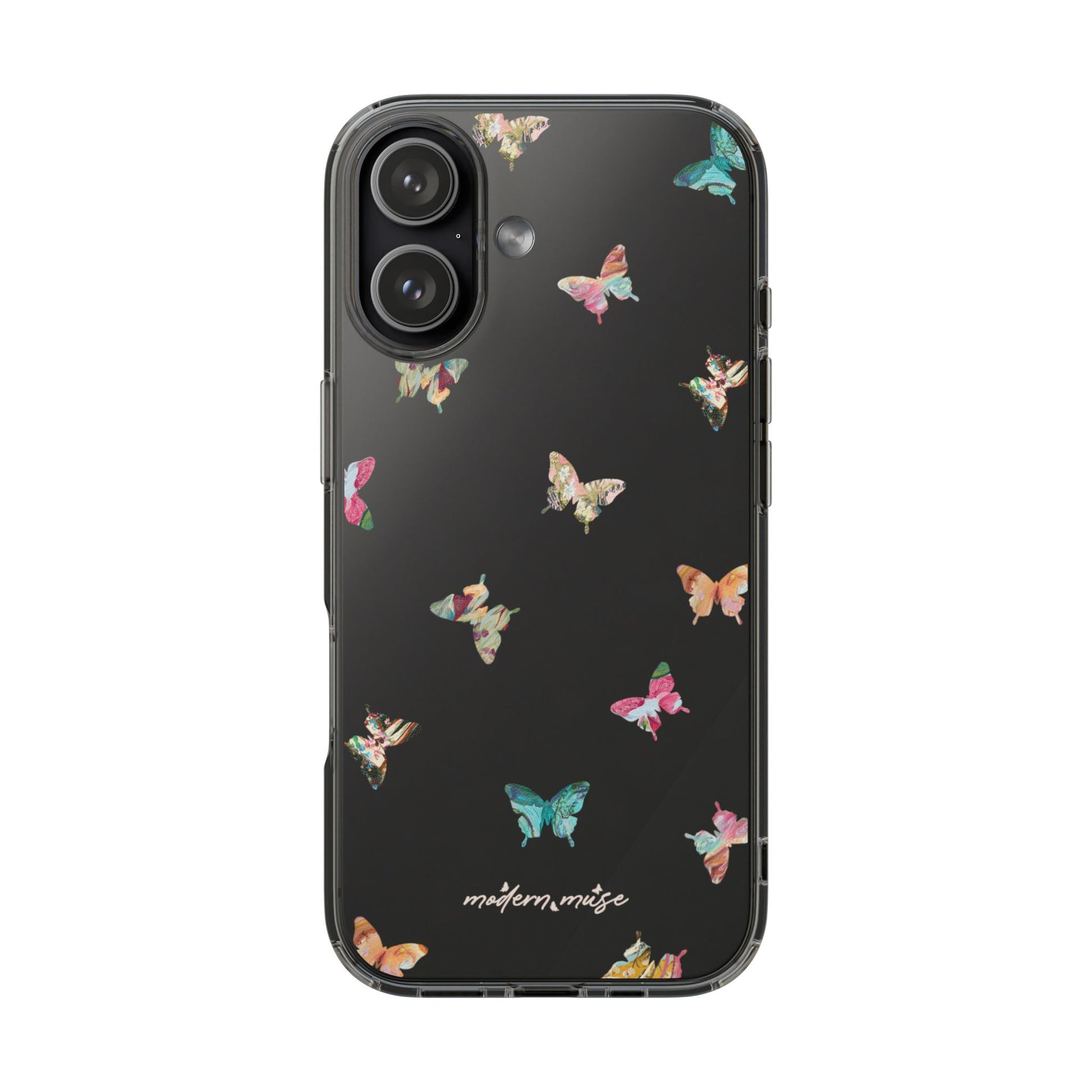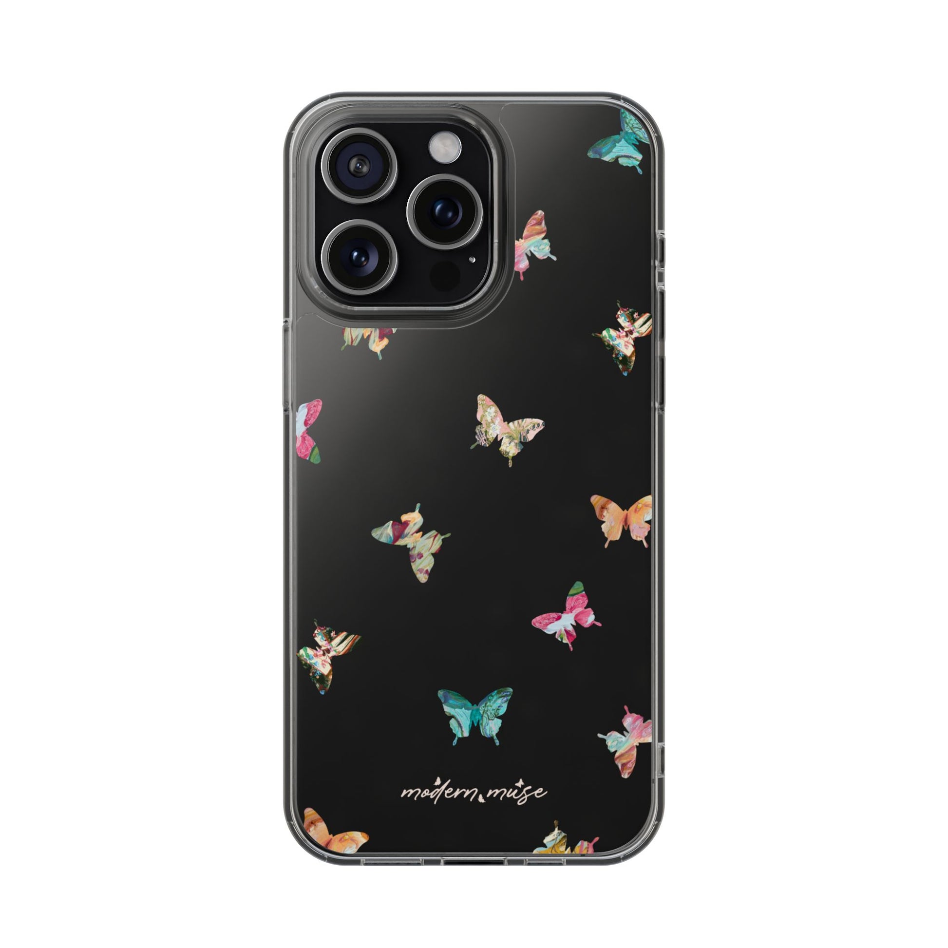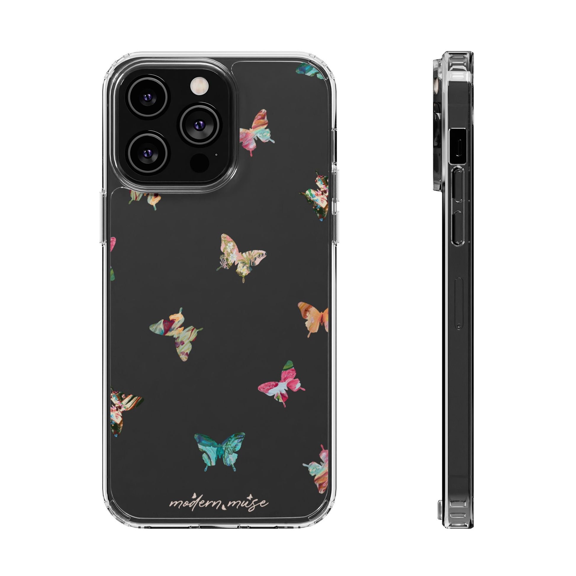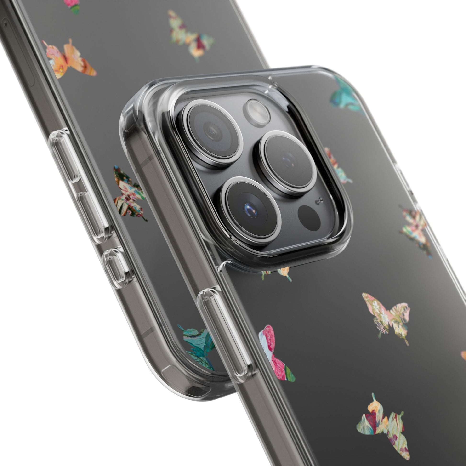 Clear, slim, and endlessly cheerful — this clear impact-resistant case keeps your phone safe while letting a playful butterfly print shine through. The lightweight polycarbonate back and soft TPU sides cushion against daily bumps without adding bulk. Edge-to-edge 3D printing and in-surface printing lock the colorful butterflies beneath a glossy finish so the design stays vivid and won’t rub off. It snaps on easily, leaves ports and buttons accessible, and still supports wireless charging so your routine stays effortless. Fits into a creative, style-conscious life where protection and personality go hand in hand.
