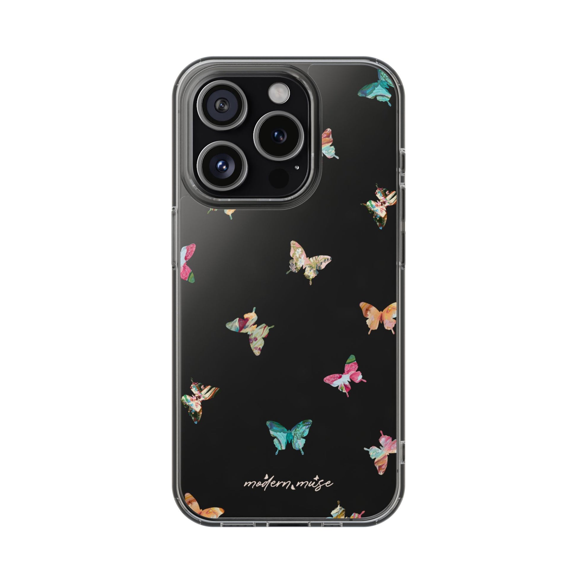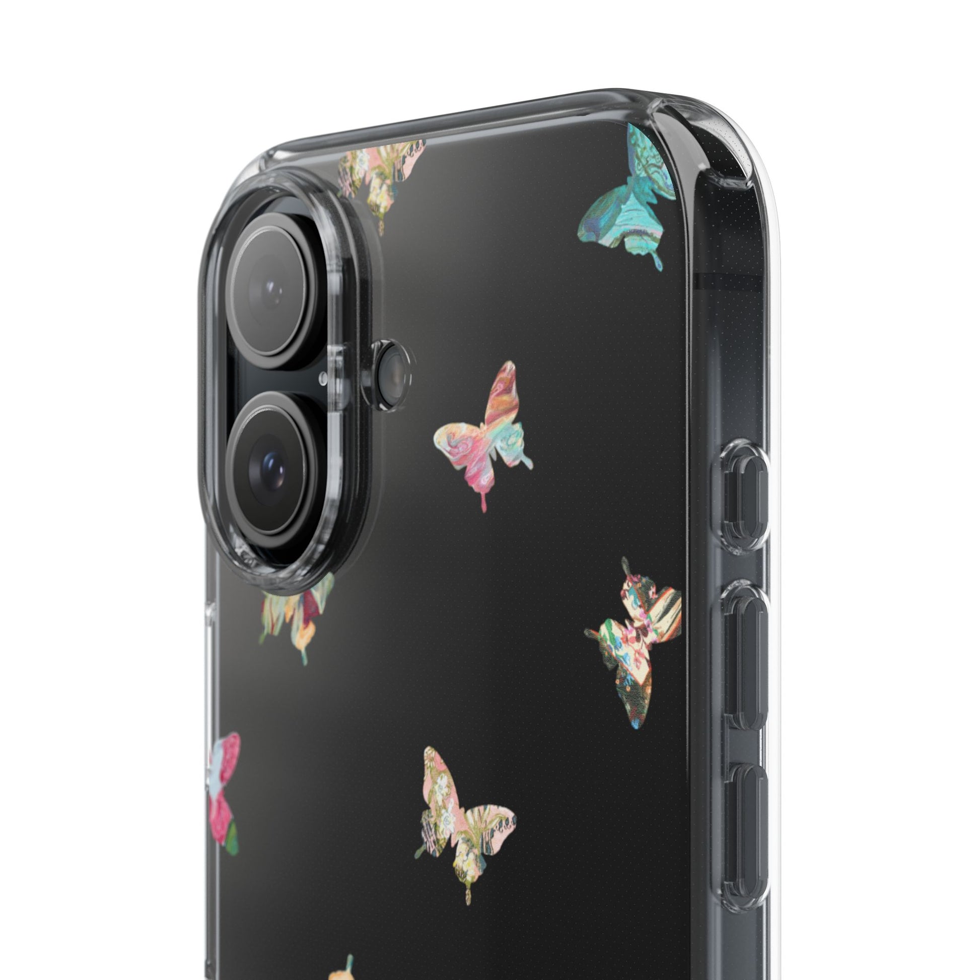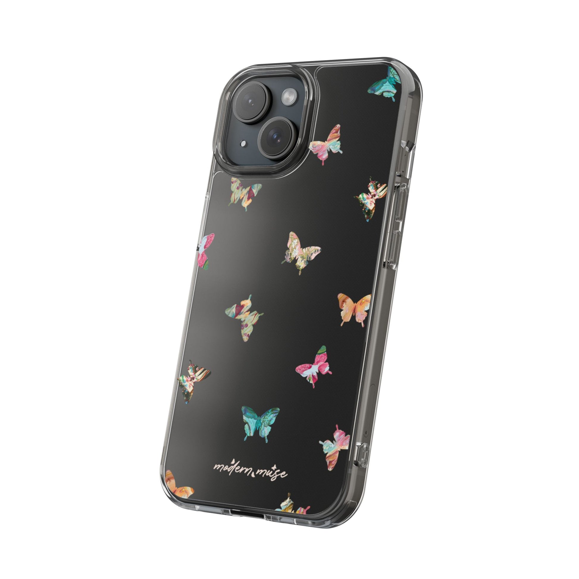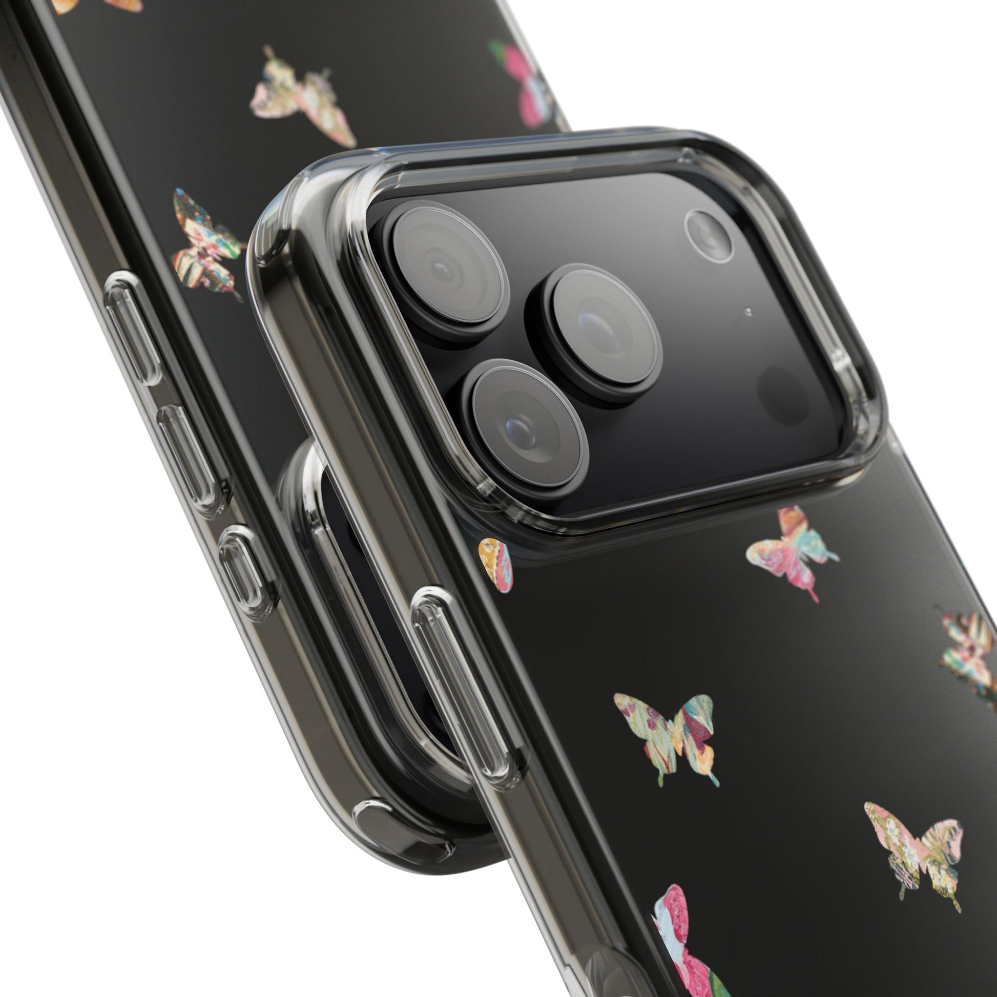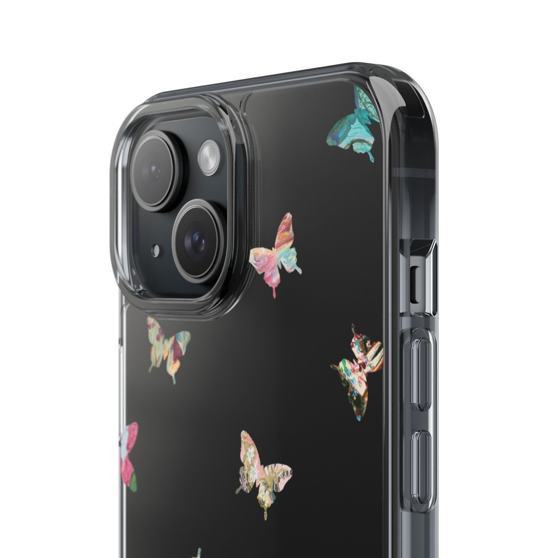 Clear, slim, and endlessly cheerful — this clear impact-resistant case keeps your phone safe while letting a playful butterfly print shine through. The lightweight polycarbonate back and soft TPU sides cushion against daily bumps without adding bulk. Edge-to-edge 3D printing and in-surface printing lock the colorful butterflies beneath a glossy finish so the design stays vivid and won’t rub off. It snaps on easily, leaves ports and buttons accessible, and still supports wireless charging so your routine stays effortless. Fits into a creative, style-conscious life where protection and personality go hand in hand.