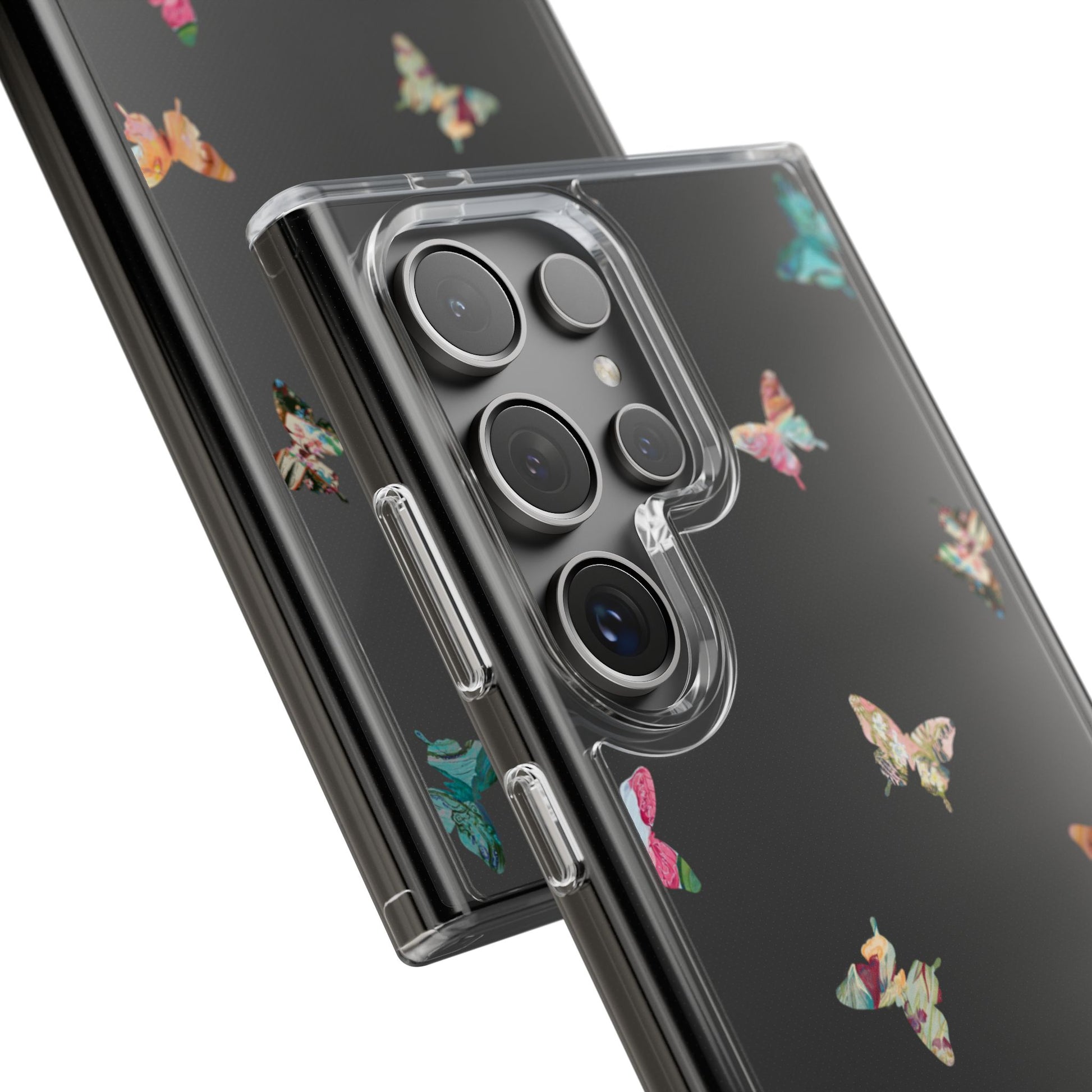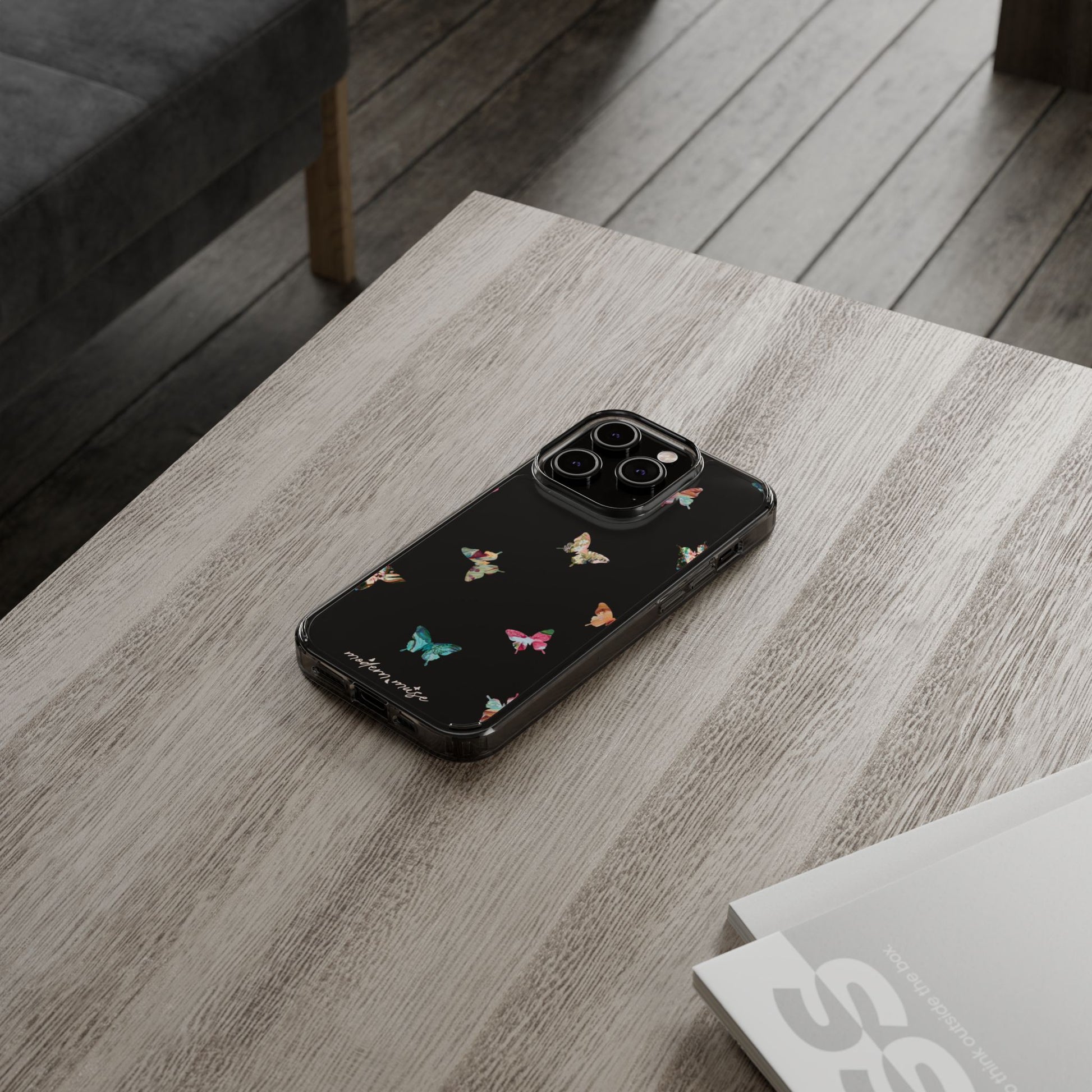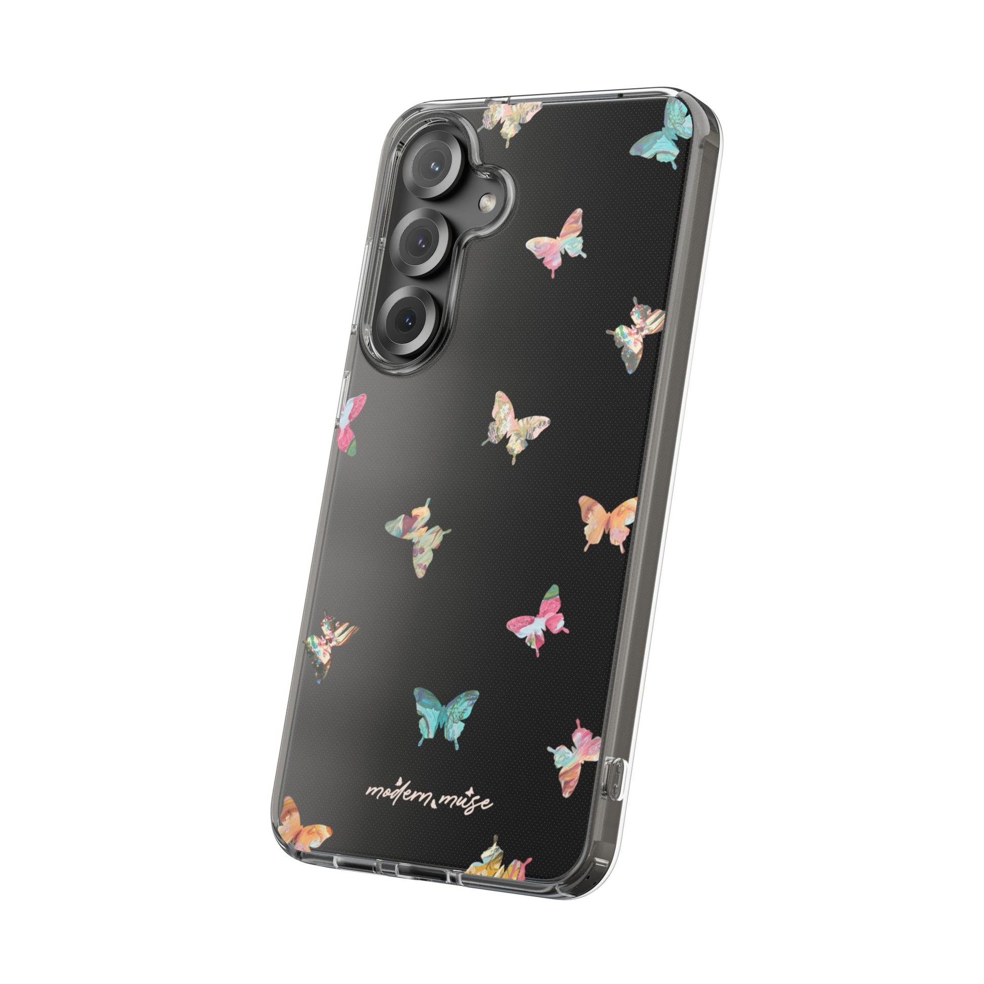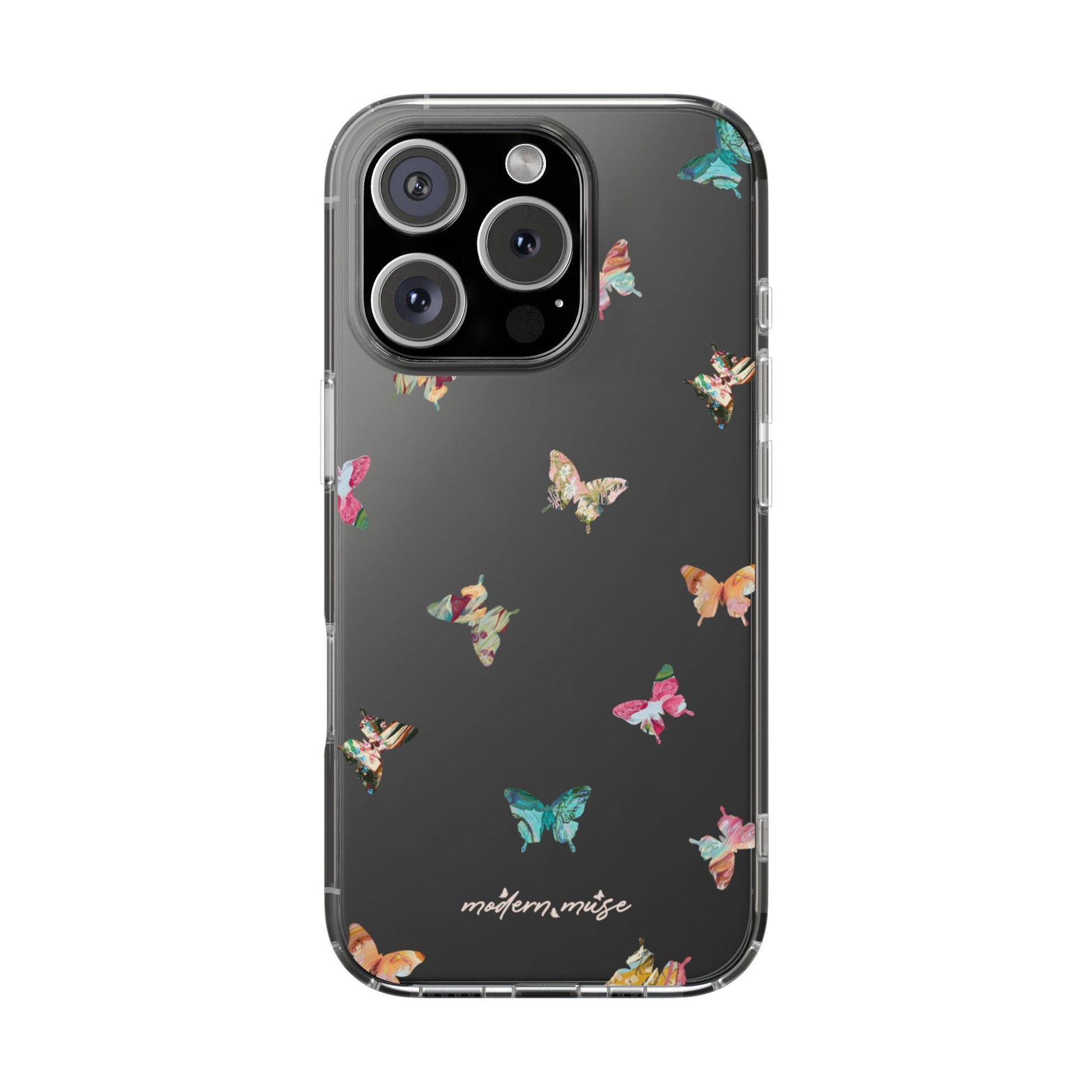 Clear, slim, and endlessly cheerful — this clear impact-resistant case keeps your phone safe while letting a playful butterfly print shine through. The lightweight polycarbonate back and soft TPU sides cushion against daily bumps without adding bulk. Edge-to-edge 3D printing and in-surface printing lock the colorful butterflies beneath a glossy finish so the design stays vivid and won’t rub off. It snaps on easily, leaves ports and buttons accessible, and still supports wireless charging so your routine stays effortless. Fits into a creative, style-conscious life where protection and personality go hand in hand.