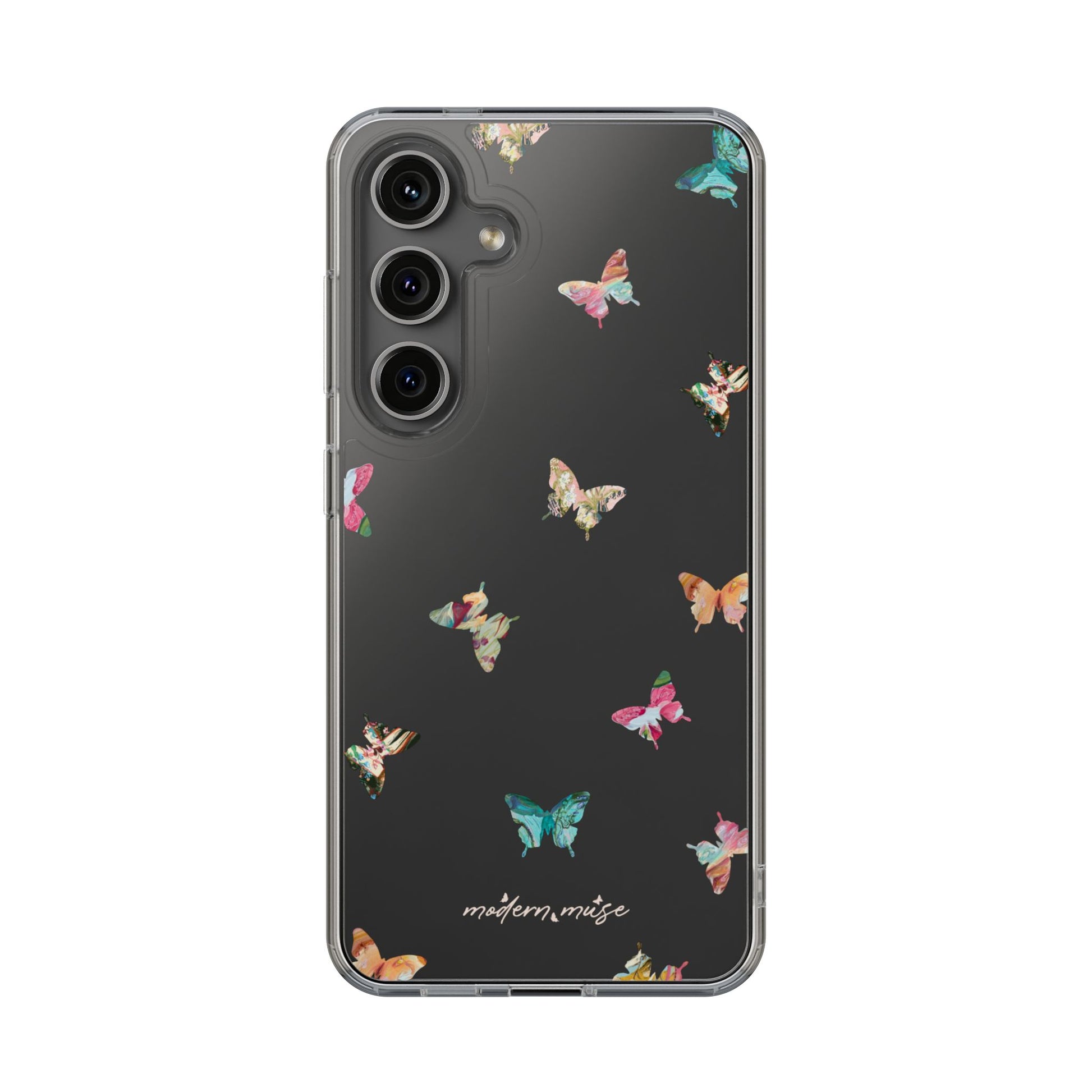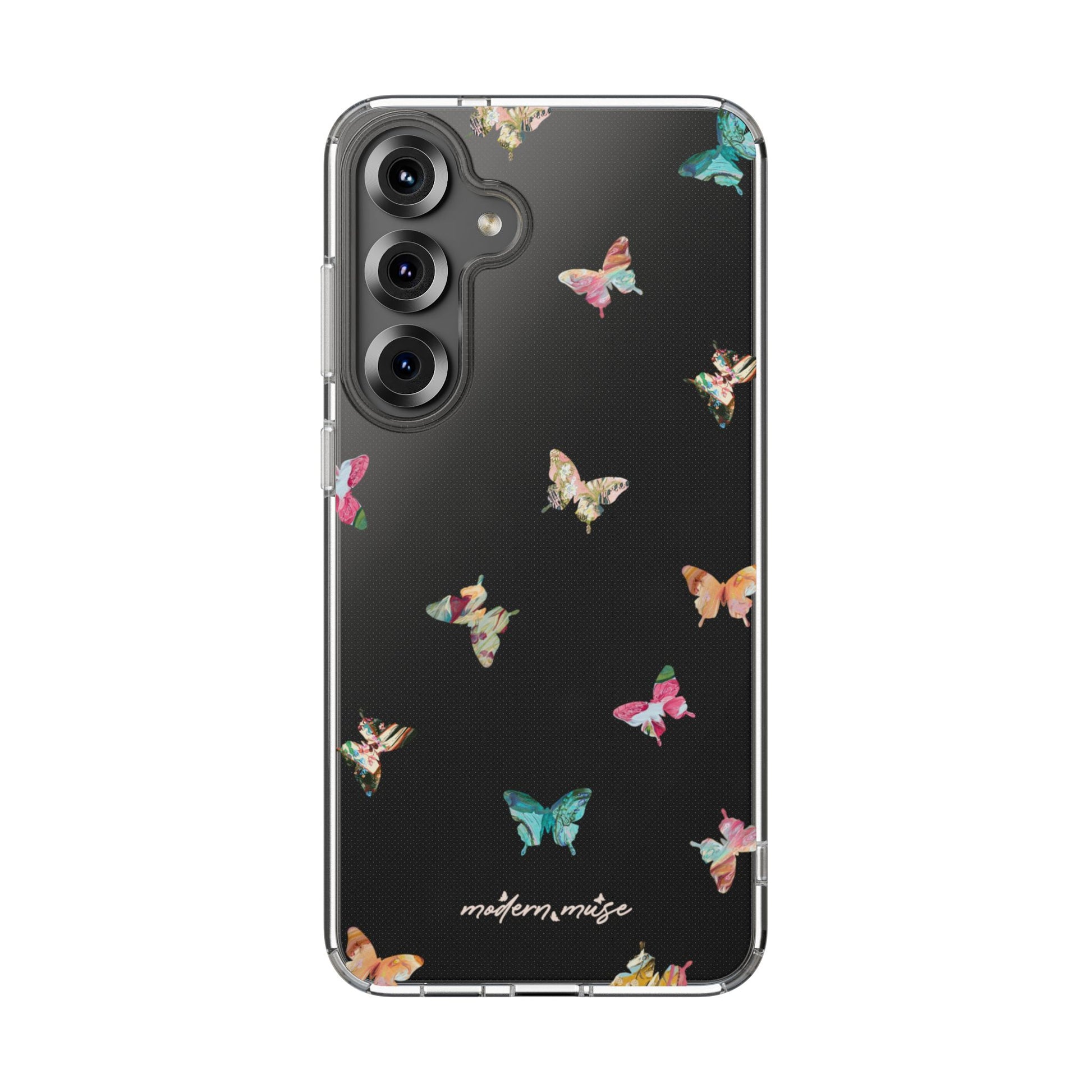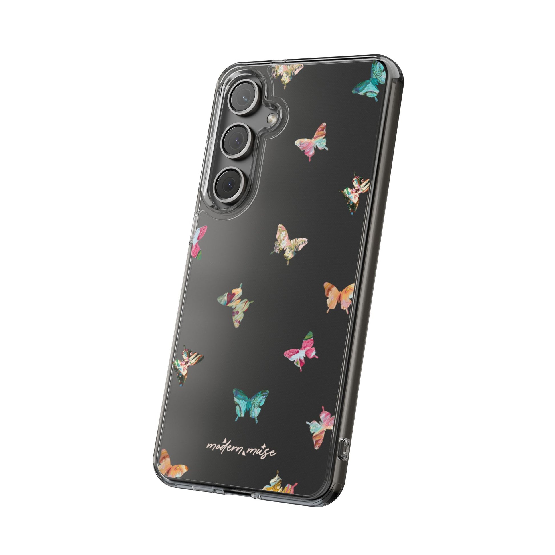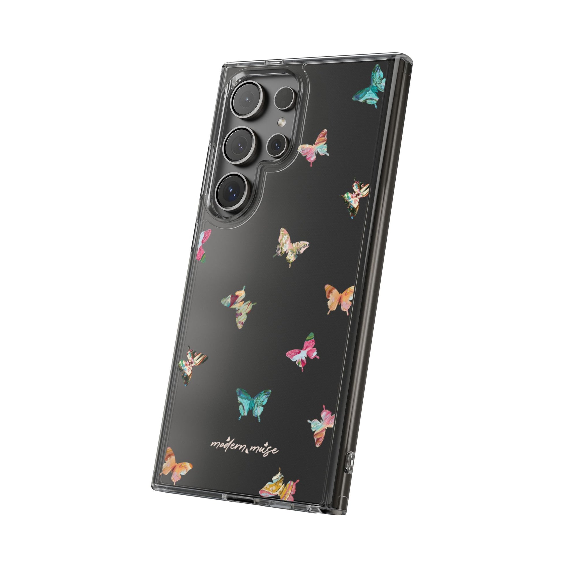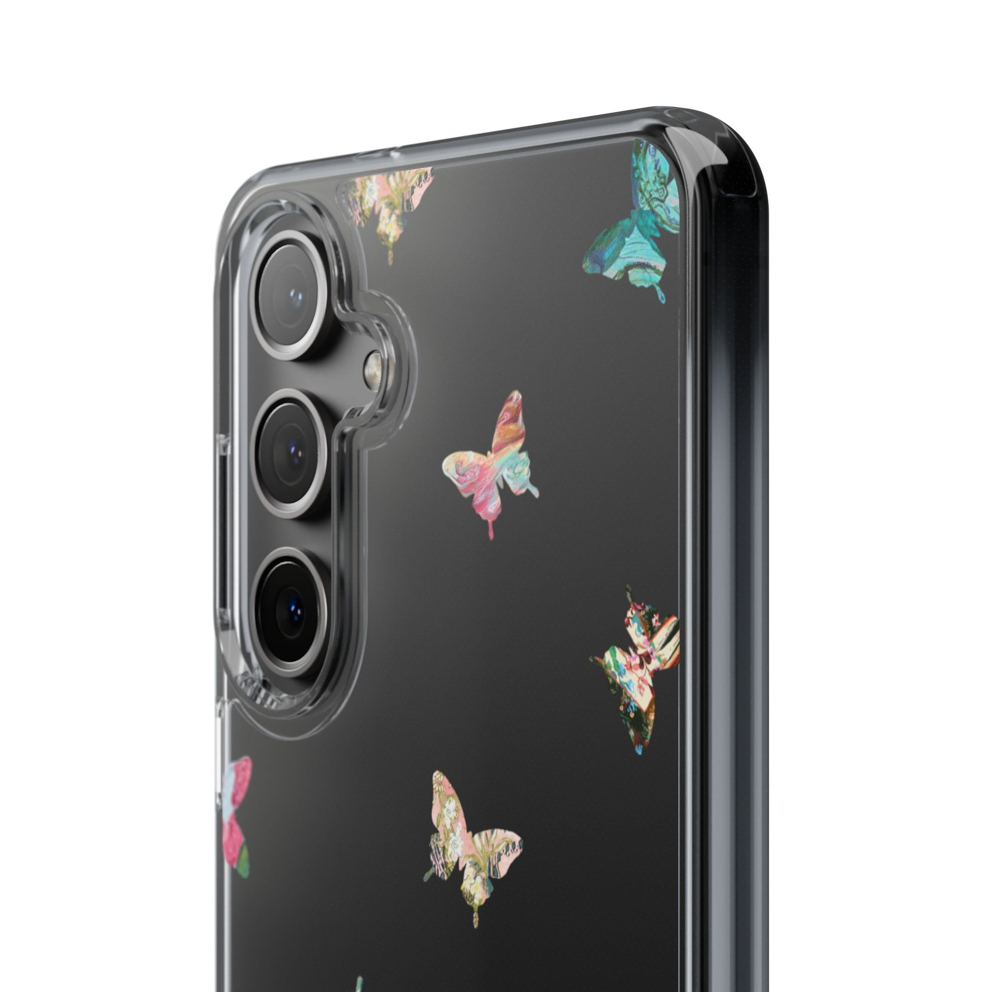 Clear, slim, and endlessly cheerful — this clear impact-resistant case keeps your phone safe while letting a playful butterfly print shine through. The lightweight polycarbonate back and soft TPU sides cushion against daily bumps without adding bulk. Edge-to-edge 3D printing and in-surface printing lock the colorful butterflies beneath a glossy finish so the design stays vivid and won’t rub off. It snaps on easily, leaves ports and buttons accessible, and still supports wireless charging so your routine stays effortless. Fits into a creative, style-conscious life where protection and personality go hand in hand.