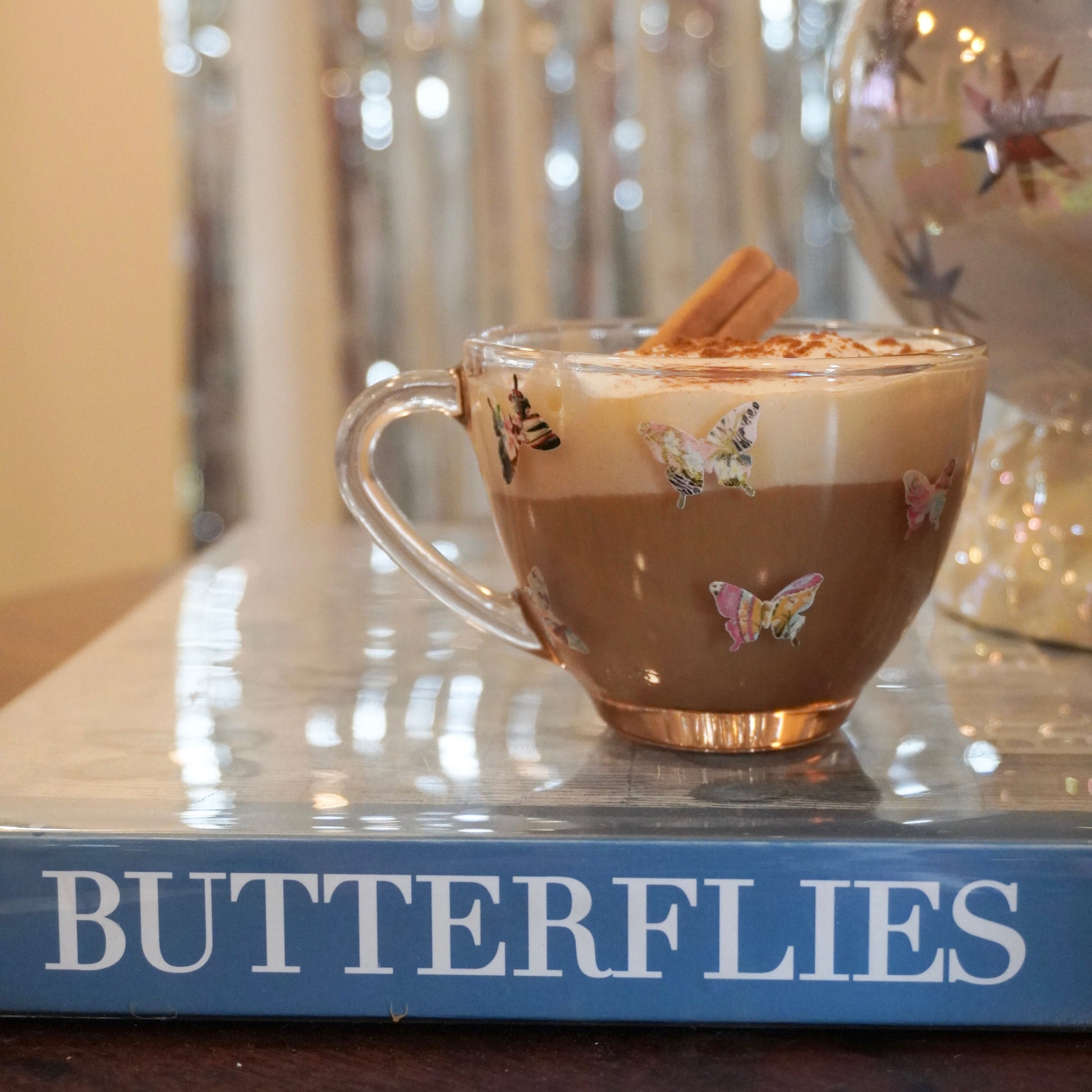Handmade, repurposed vintage mugs with our original butterfly designs