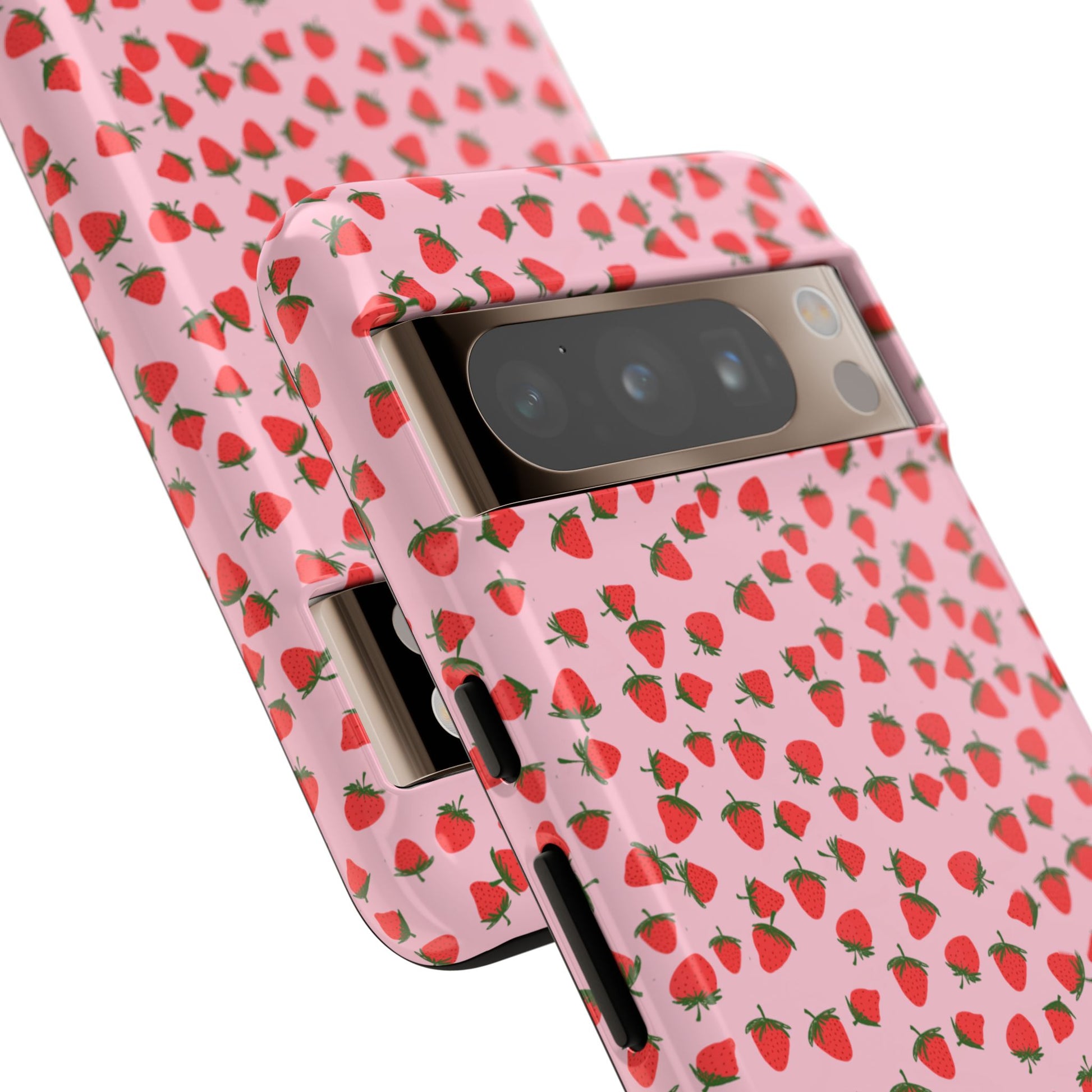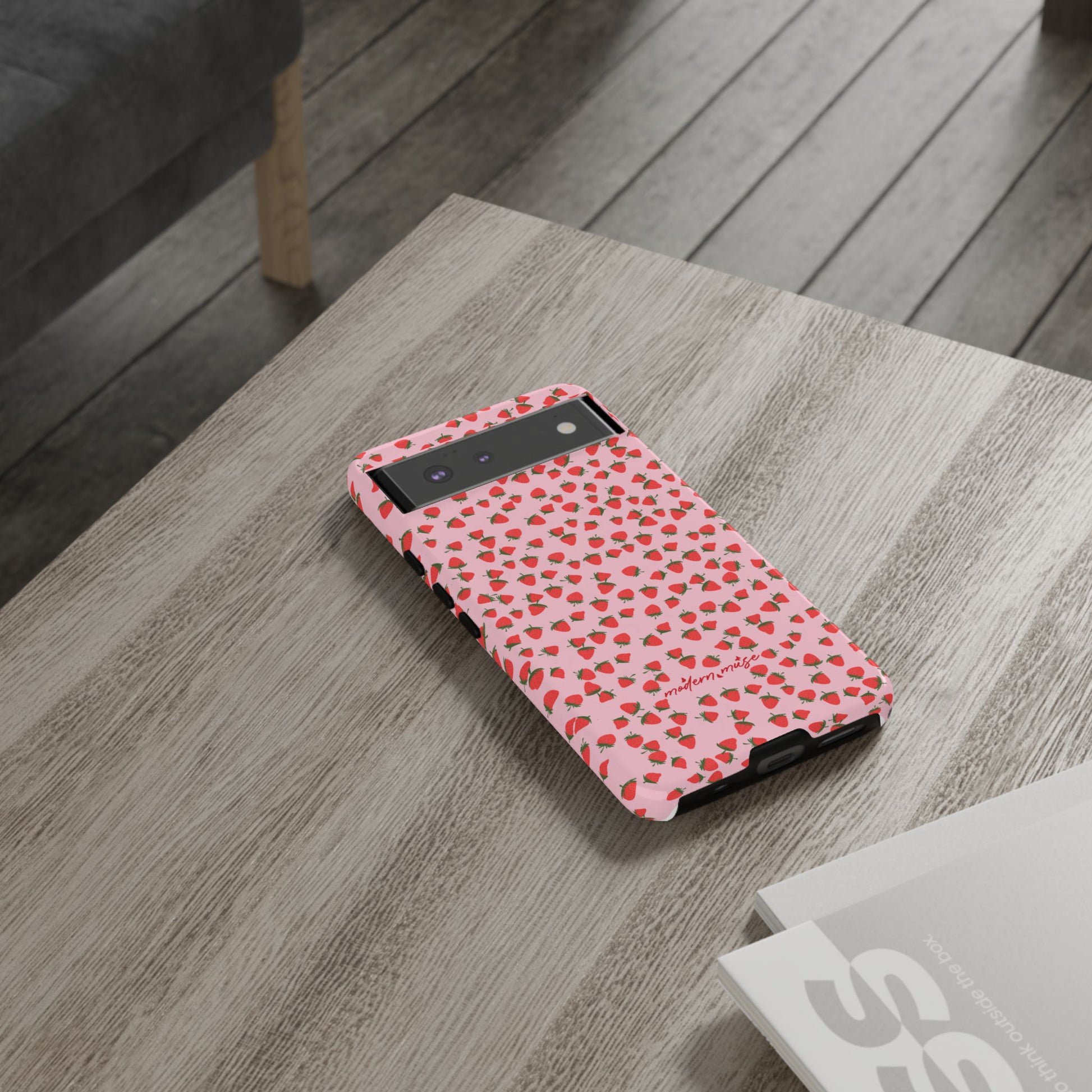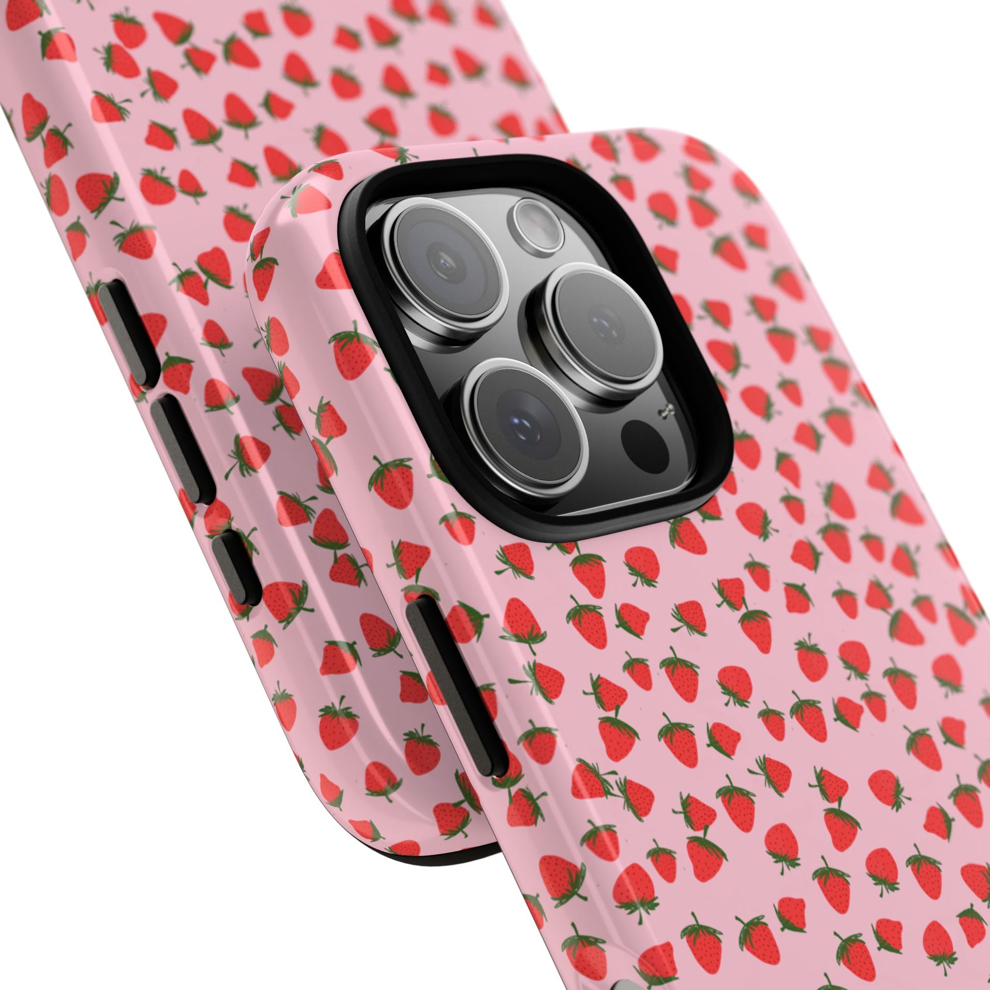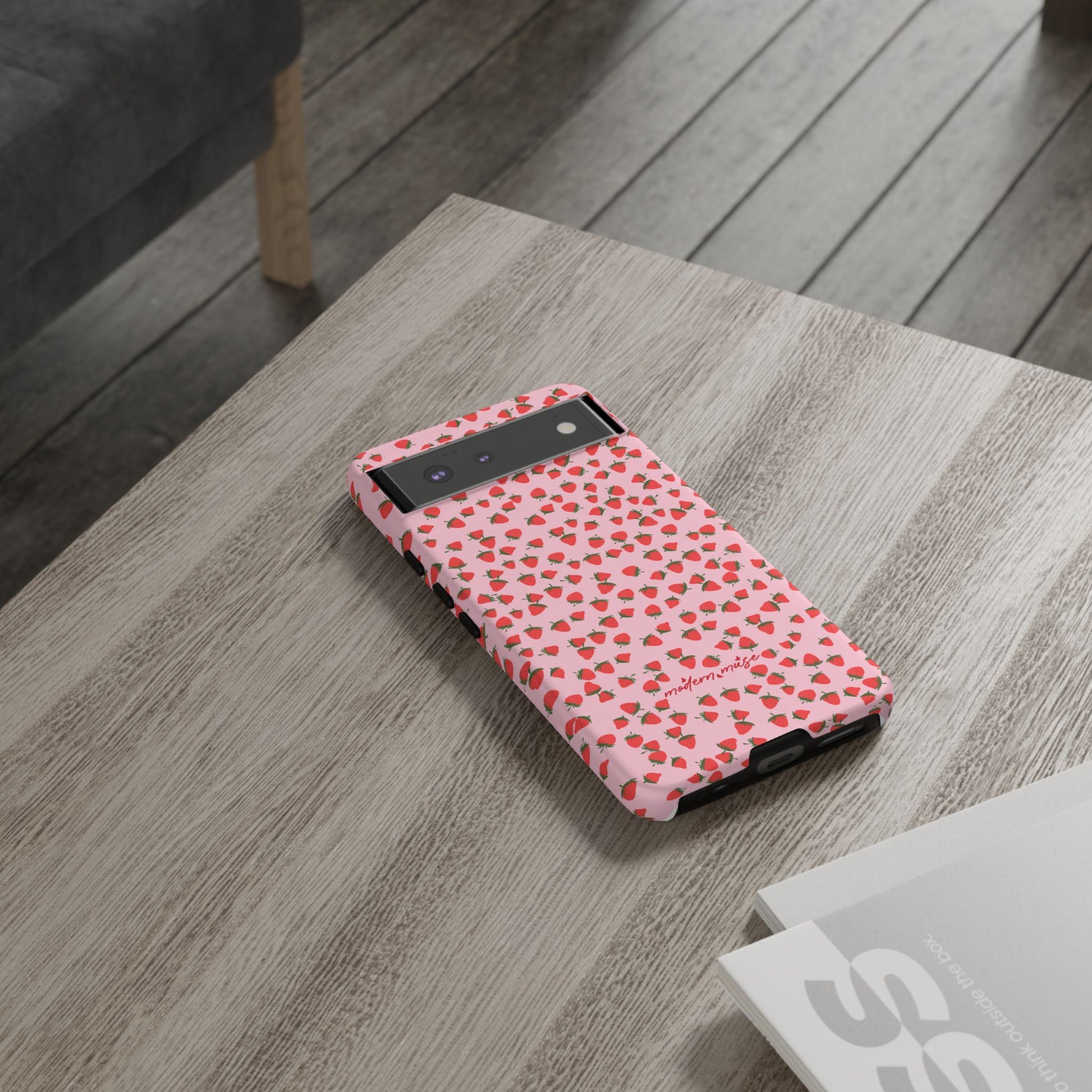 Introducing our vibrant and playful phone case, perfect for adding a splash of personality to your device. This durable phone case is designed with a fresh strawberry pattern that radiates a cheerful vibe, making it an excellent accessory for anyone looking to express their fun side. It seamlessly fits into everyday life, protecting your phone while keeping it stylish. Ideal for young adults and trendy individuals, this case makes a thoughtful gift for birthdays, holidays, or special occasions like Valentine's Day. Brighten up your phone and your day with this delightful accessory!