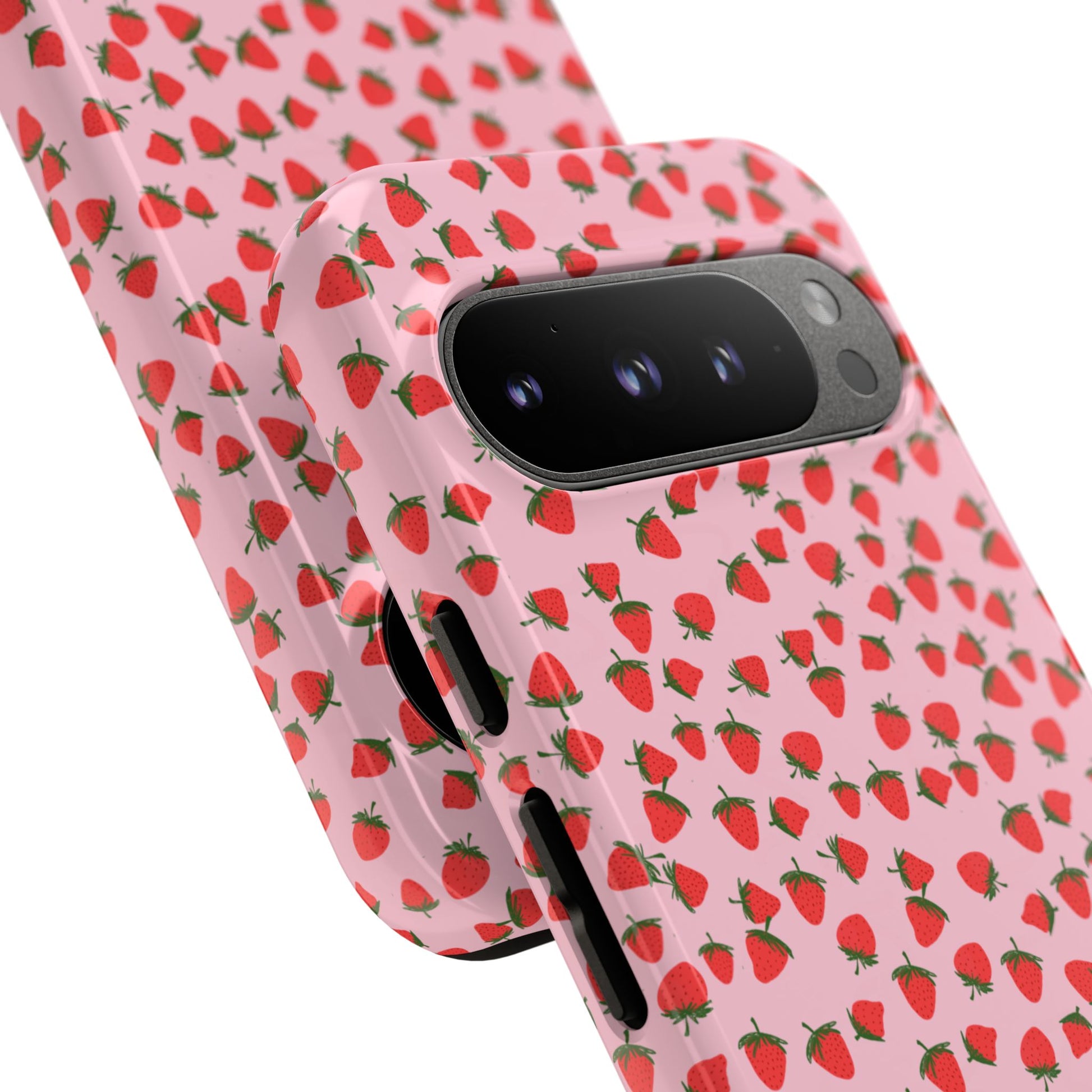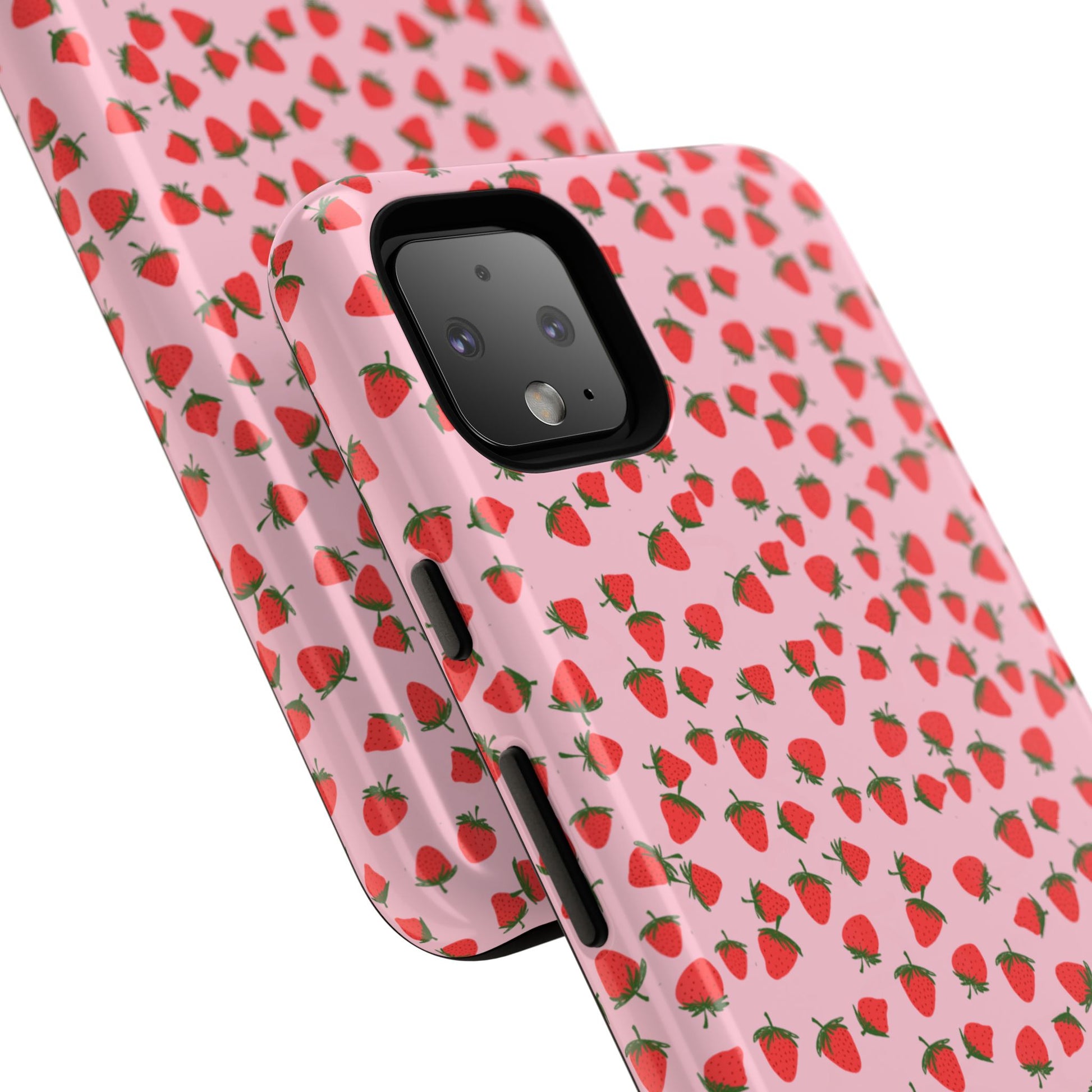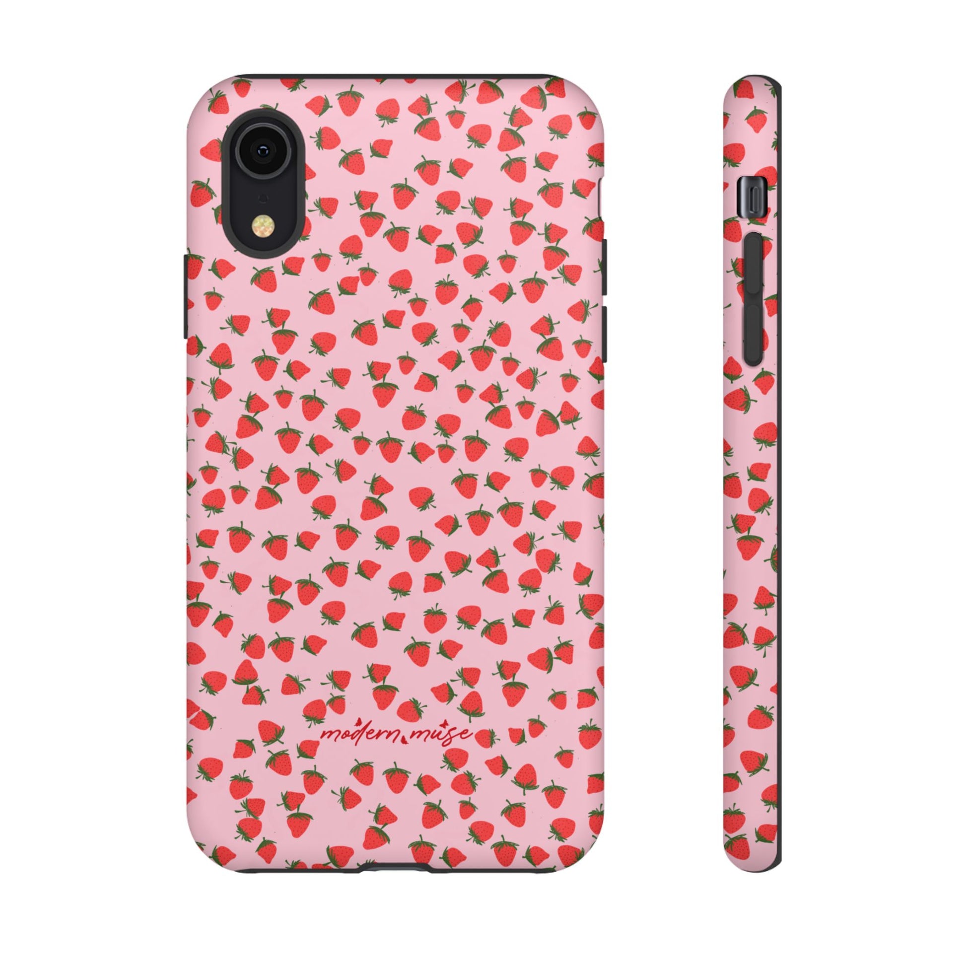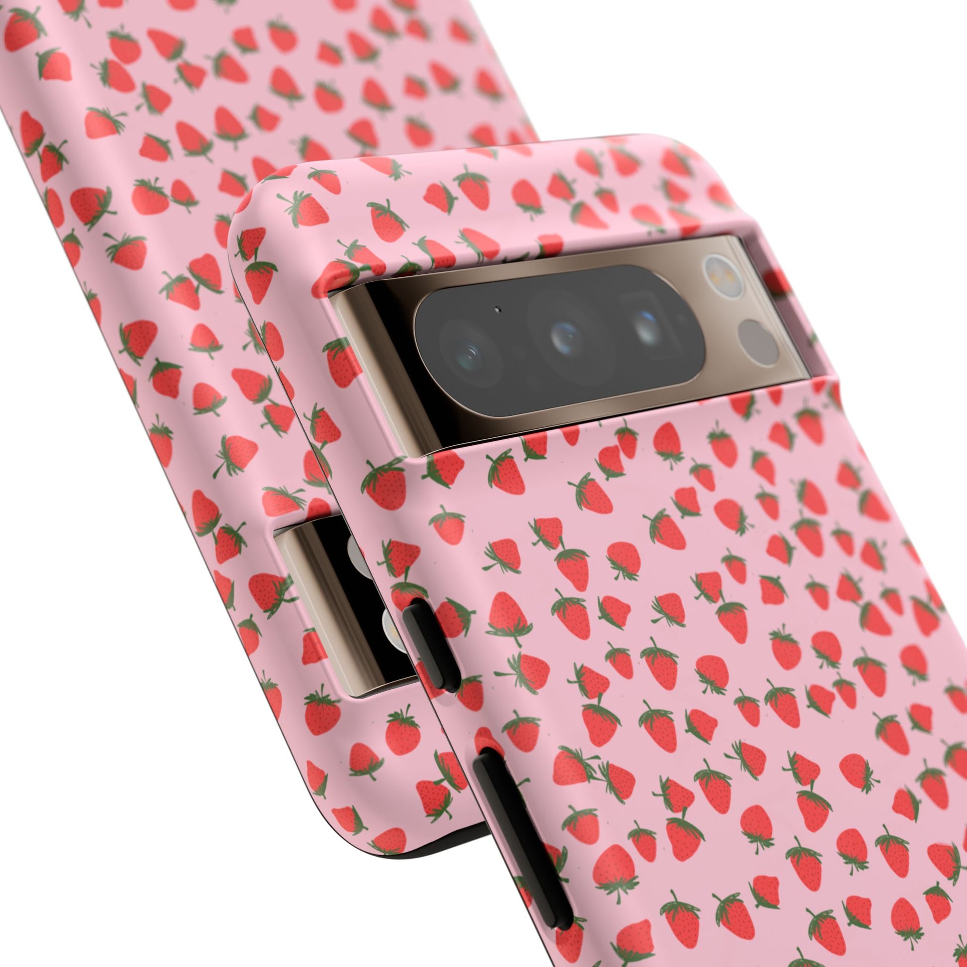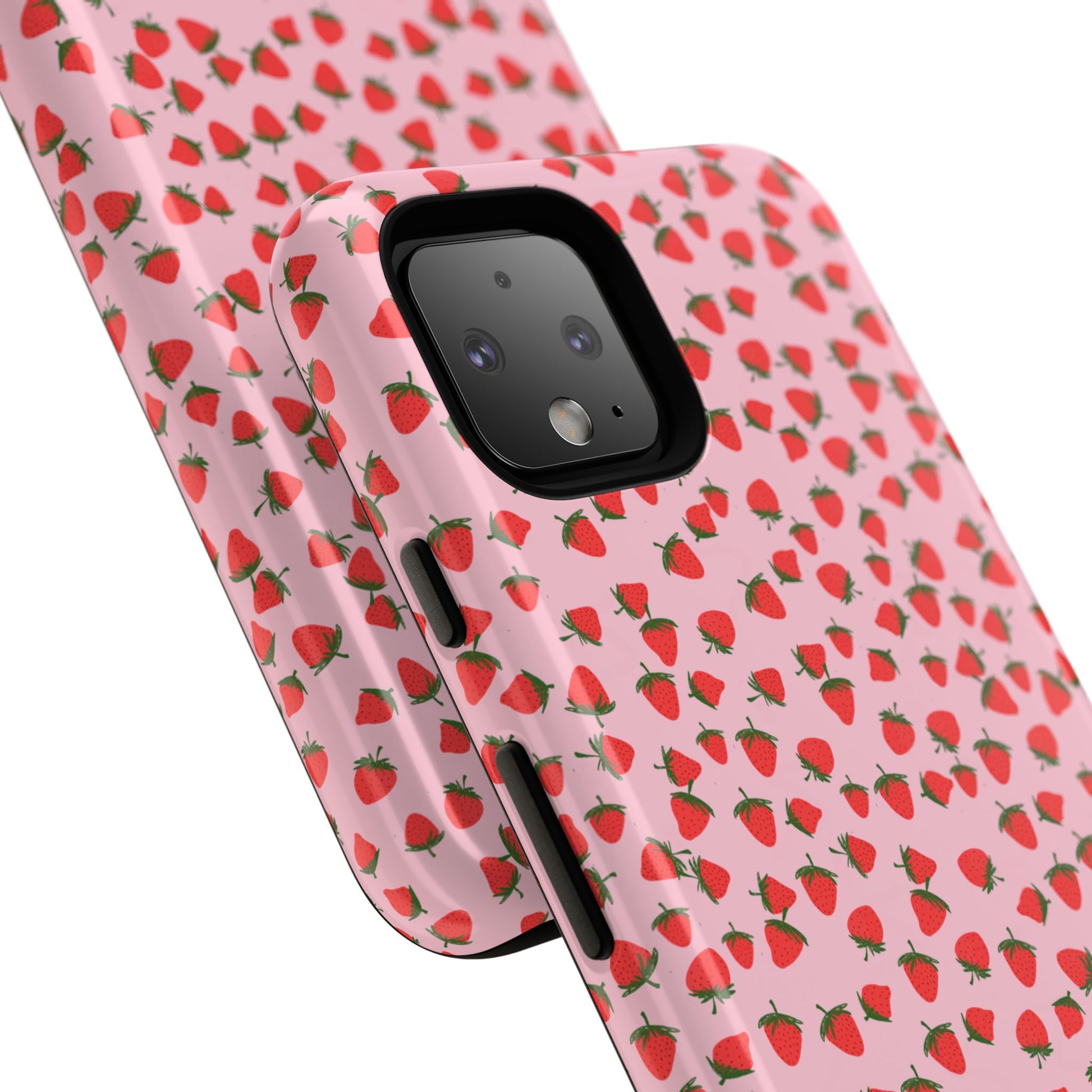 Introducing our vibrant and playful phone case, perfect for adding a splash of personality to your device. This durable phone case is designed with a fresh strawberry pattern that radiates a cheerful vibe, making it an excellent accessory for anyone looking to express their fun side. It seamlessly fits into everyday life, protecting your phone while keeping it stylish. Ideal for young adults and trendy individuals, this case makes a thoughtful gift for birthdays, holidays, or special occasions like Valentine's Day. Brighten up your phone and your day with this delightful accessory!