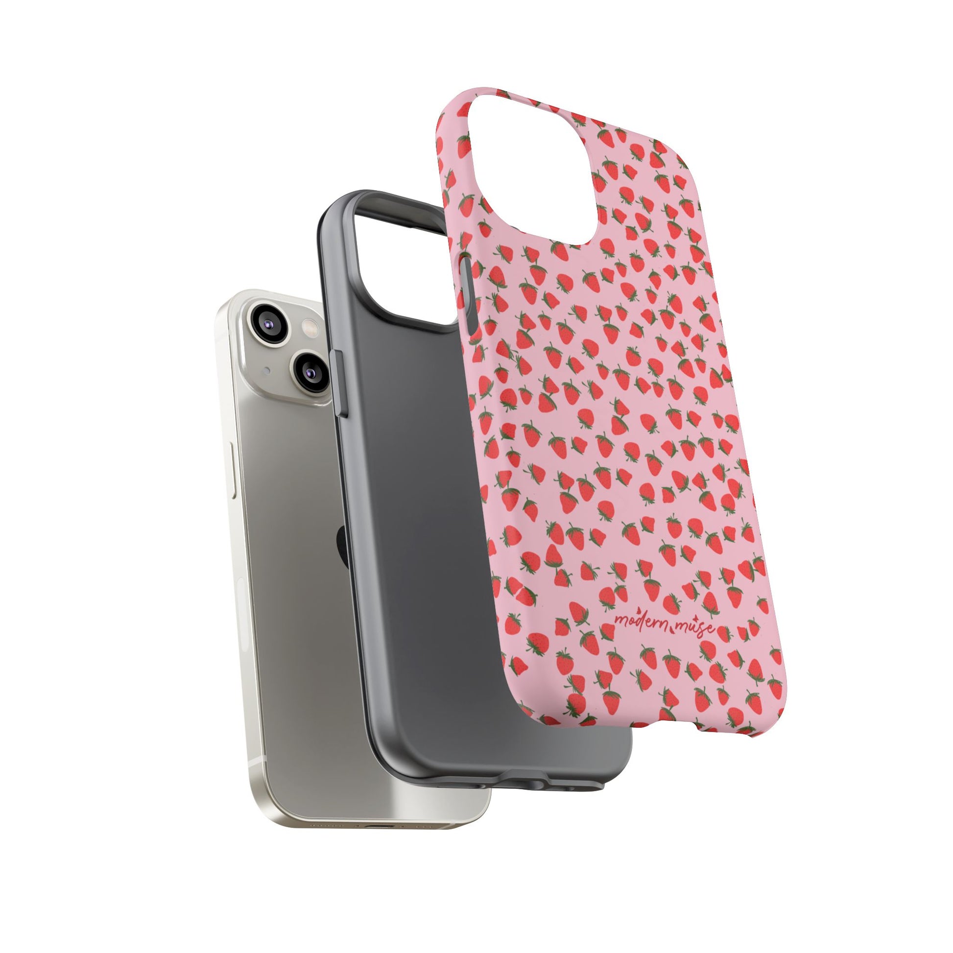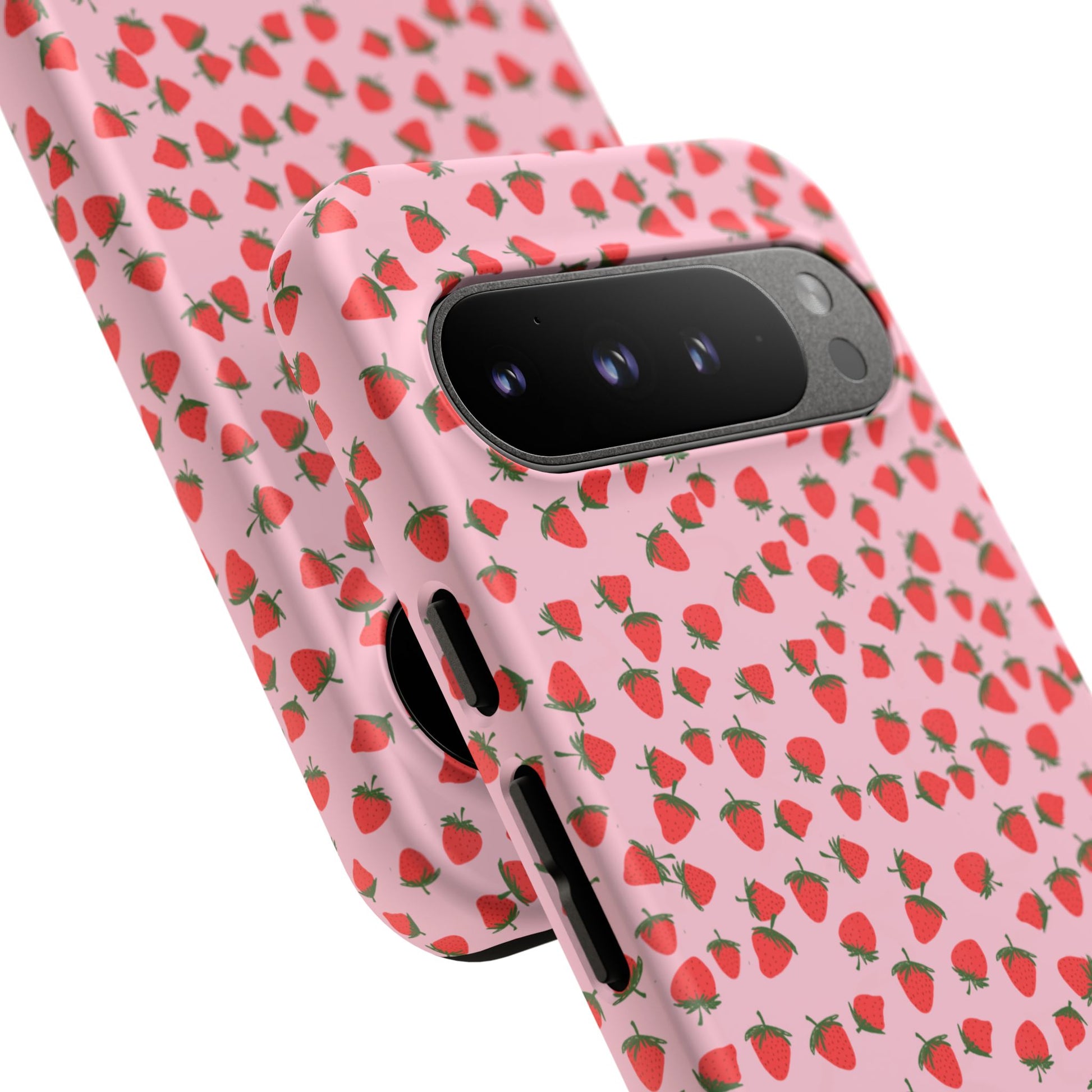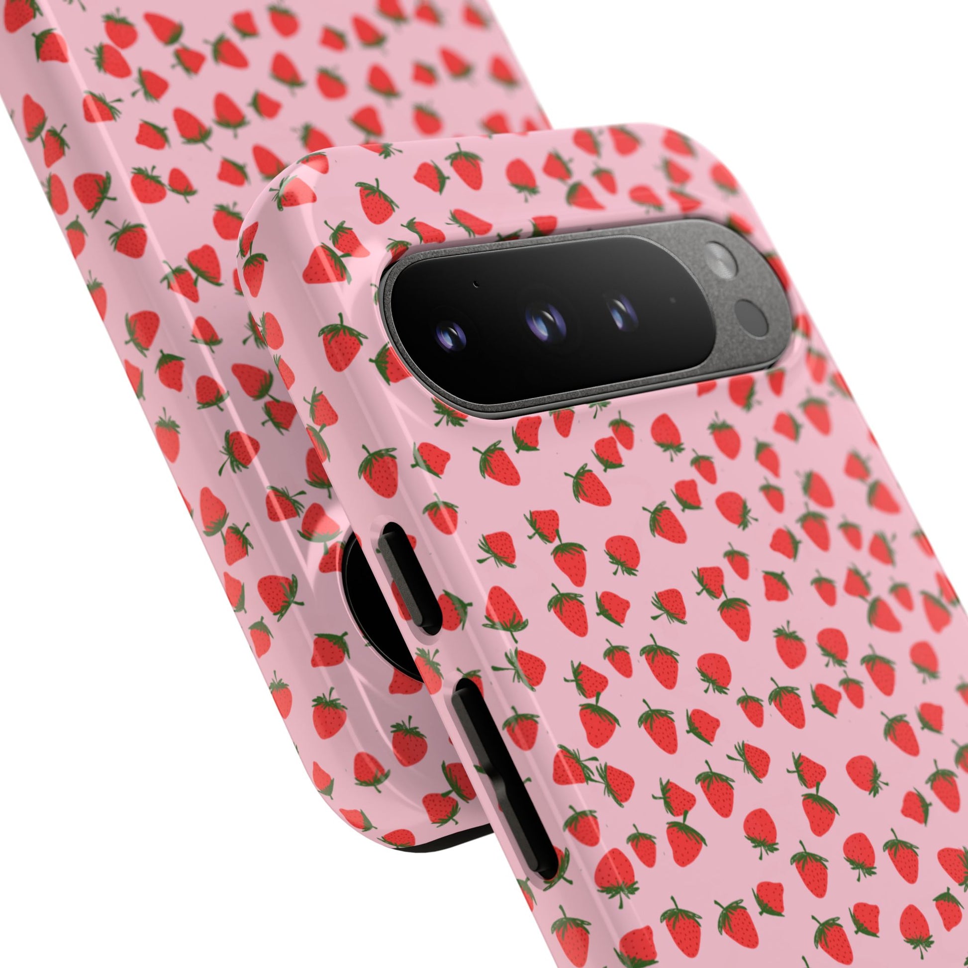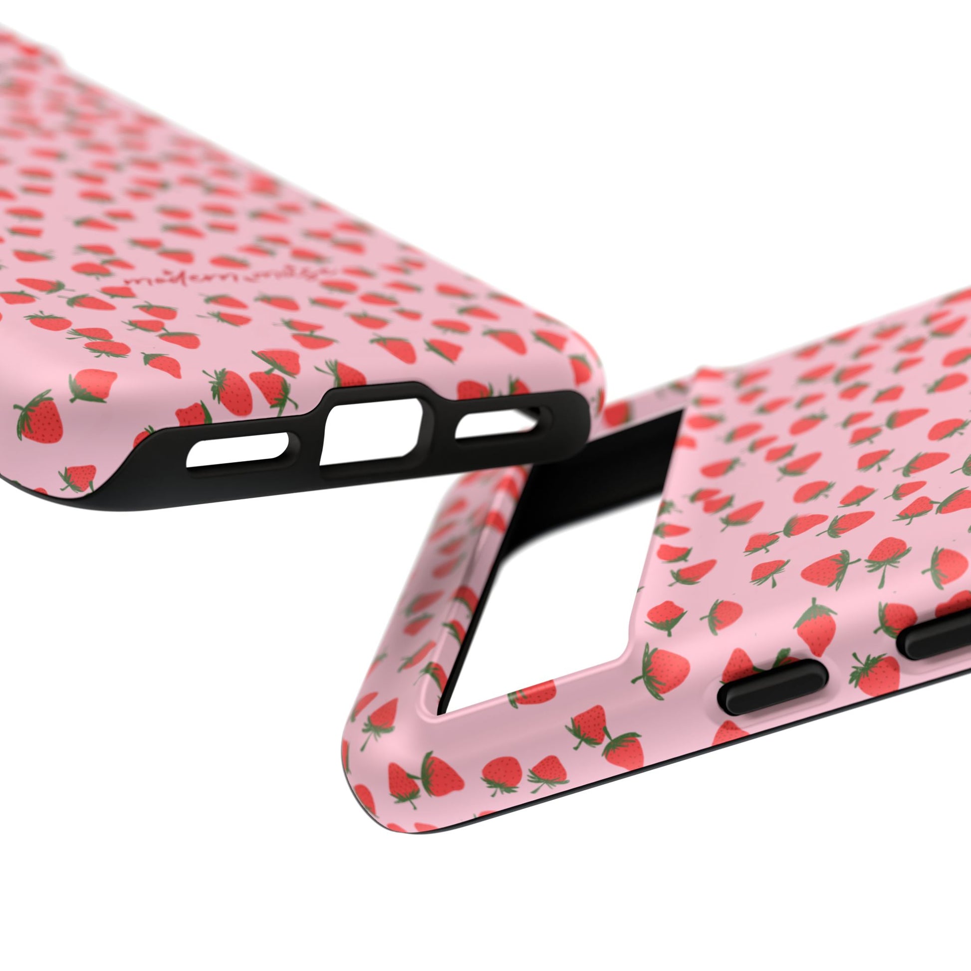Introducing our vibrant and playful phone case, perfect for adding a splash of personality to your device. This durable phone case is designed with a fresh strawberry pattern that radiates a cheerful vibe, making it an excellent accessory for anyone looking to express their fun side. It seamlessly fits into everyday life, protecting your phone while keeping it stylish. Ideal for young adults and trendy individuals, this case makes a thoughtful gift for birthdays, holidays, or special occasions like Valentine's Day. Brighten up your phone and your day with this delightful accessory!