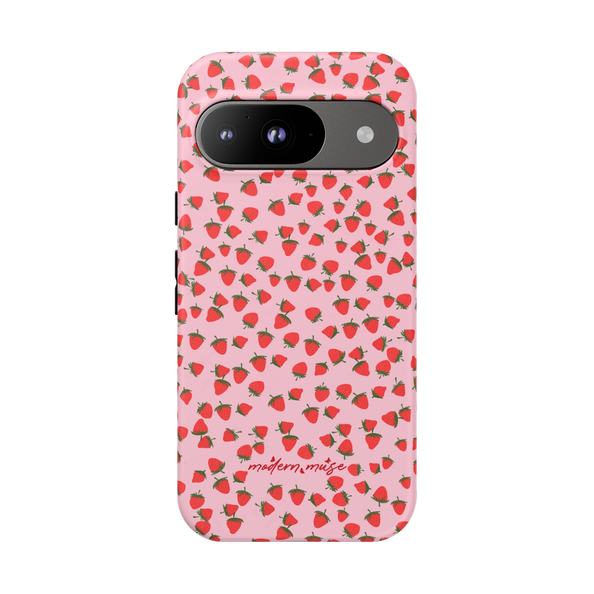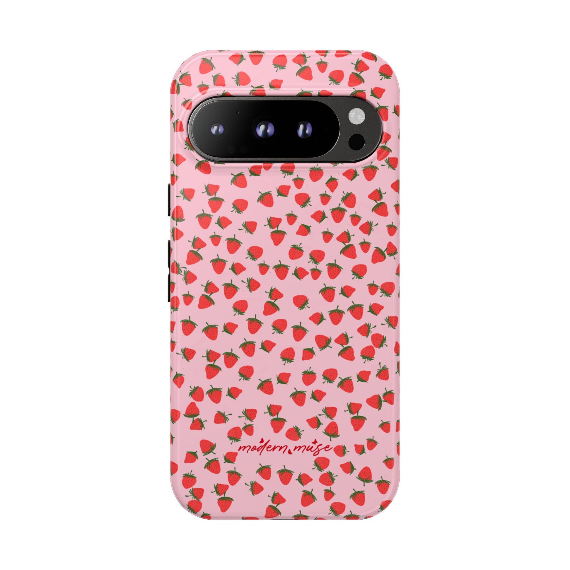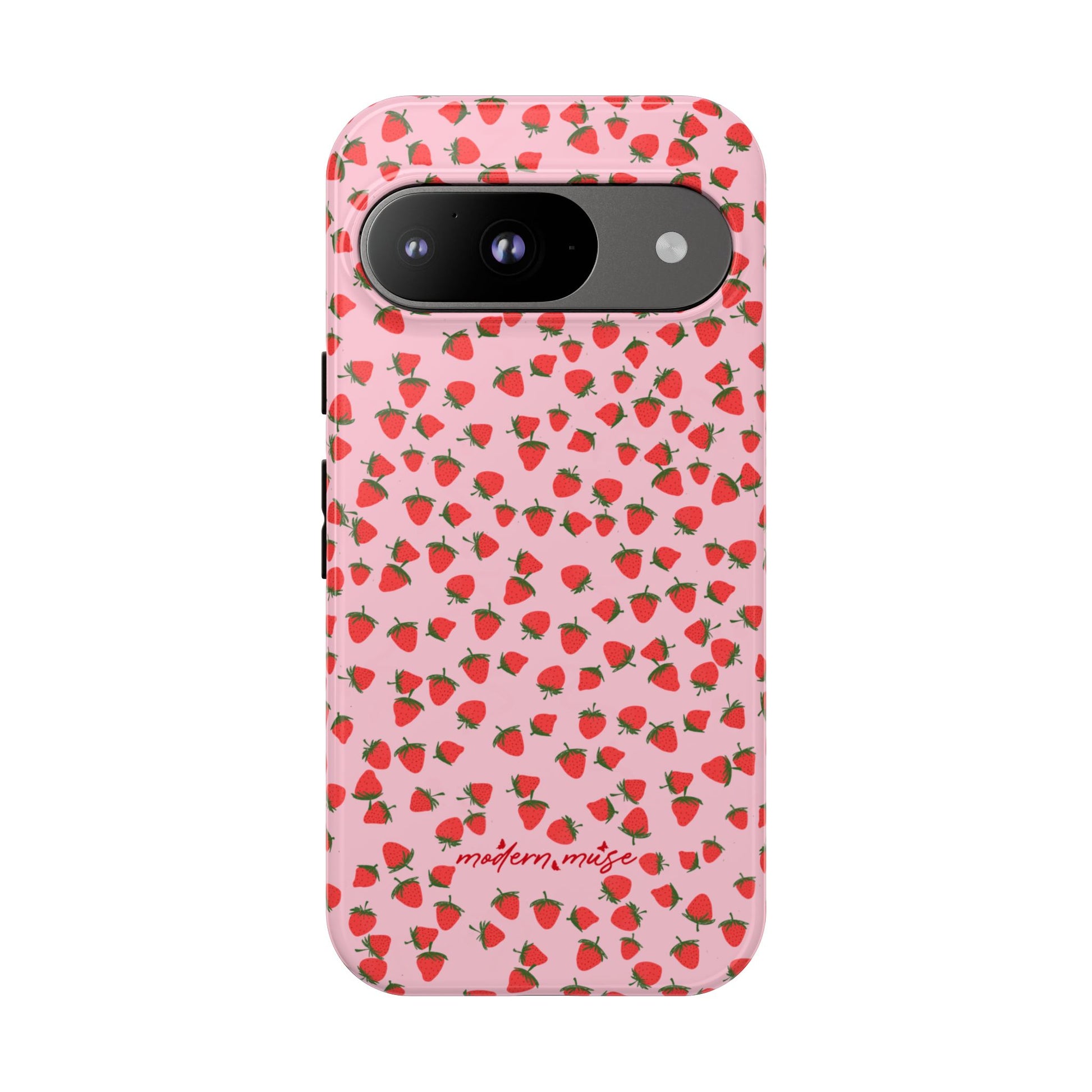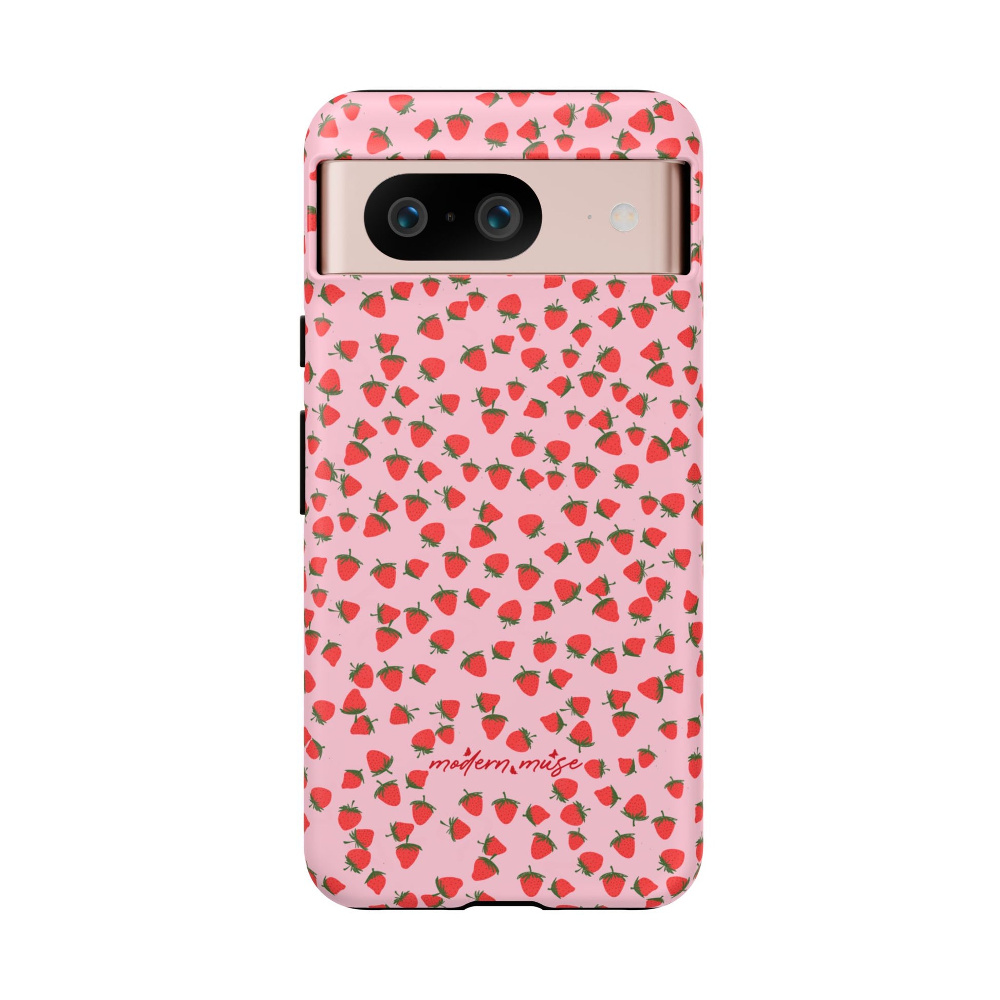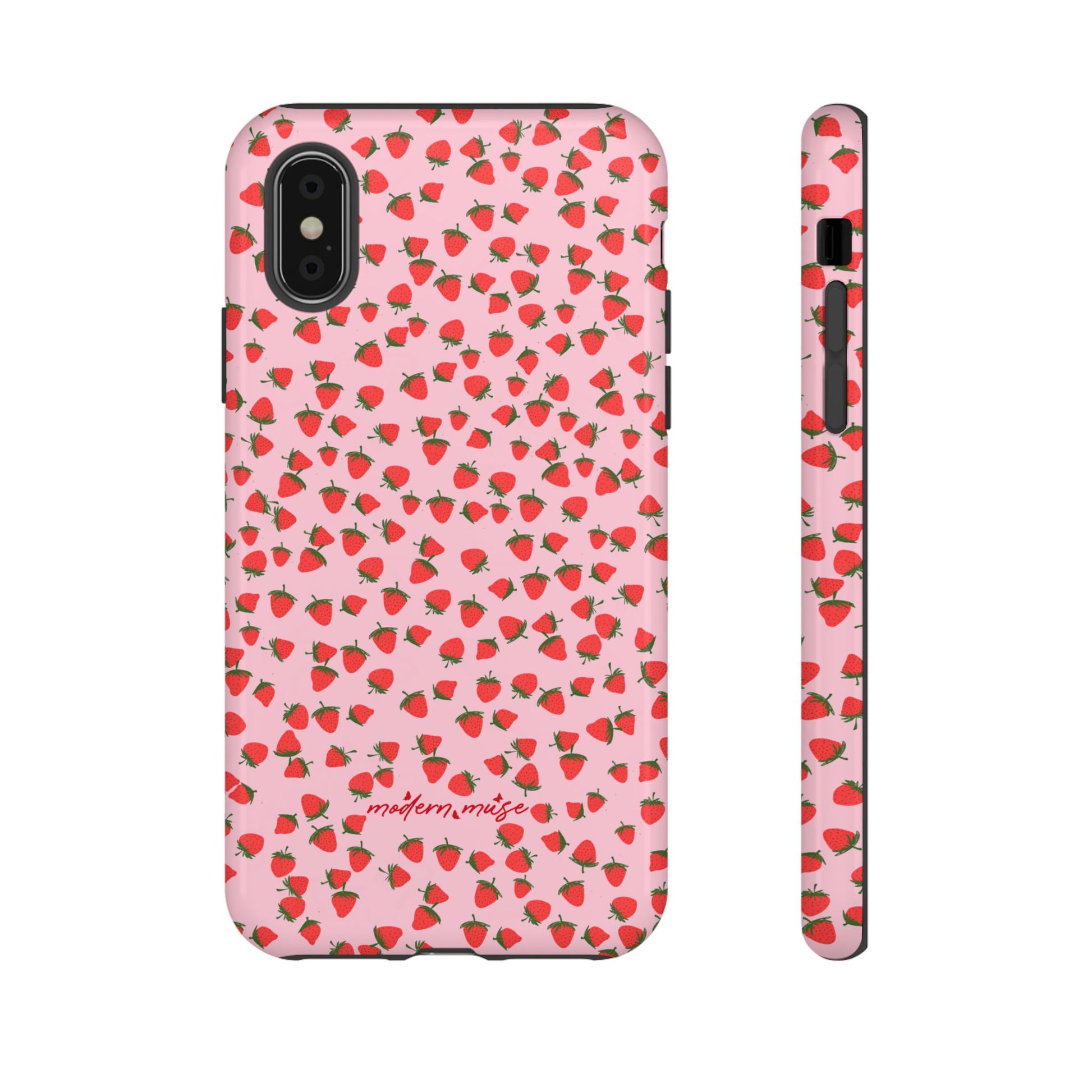 Introducing our vibrant and playful phone case, perfect for adding a splash of personality to your device. This durable phone case is designed with a fresh strawberry pattern that radiates a cheerful vibe, making it an excellent accessory for anyone looking to express their fun side. It seamlessly fits into everyday life, protecting your phone while keeping it stylish. Ideal for young adults and trendy individuals, this case makes a thoughtful gift for birthdays, holidays, or special occasions like Valentine's Day. Brighten up your phone and your day with this delightful accessory!