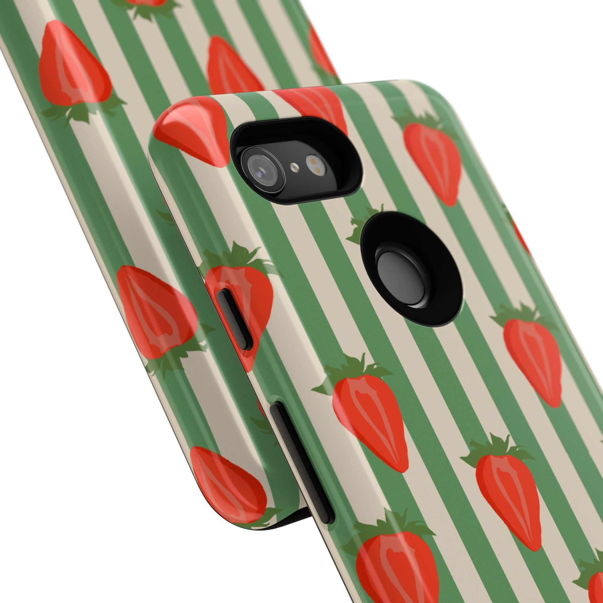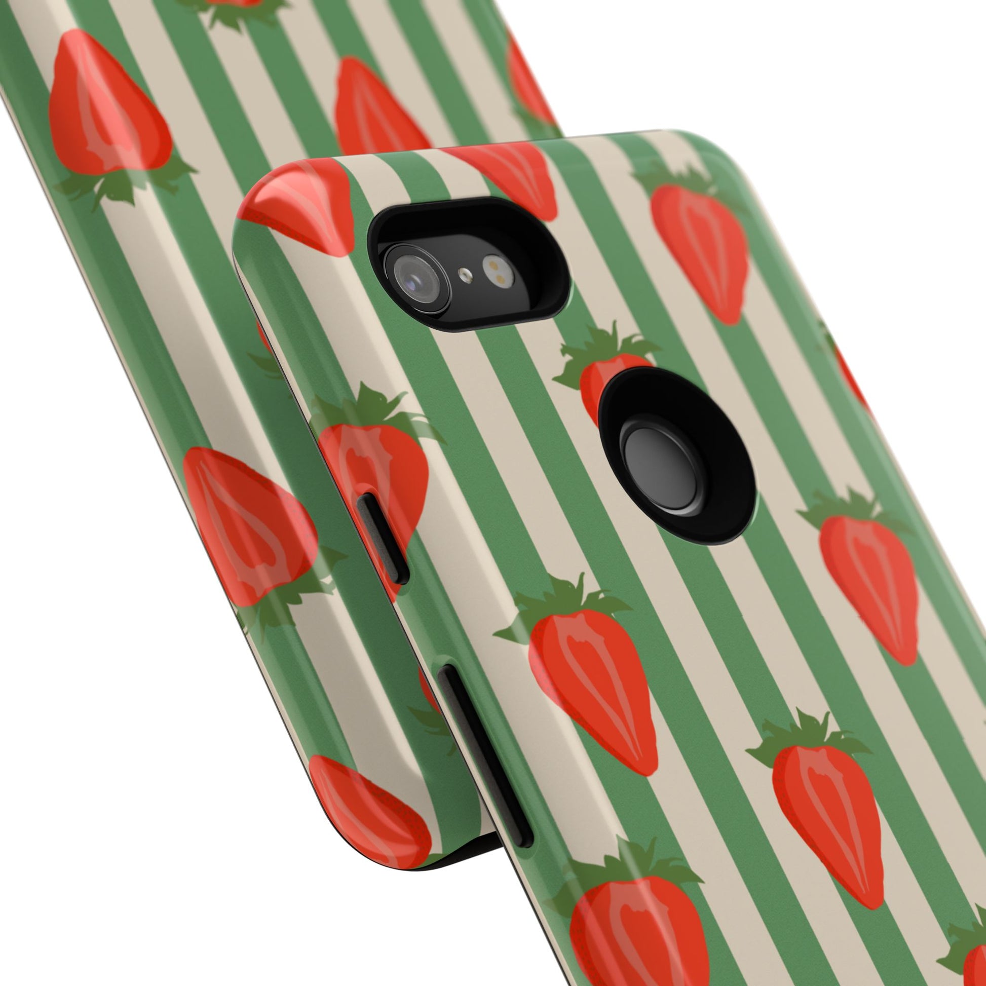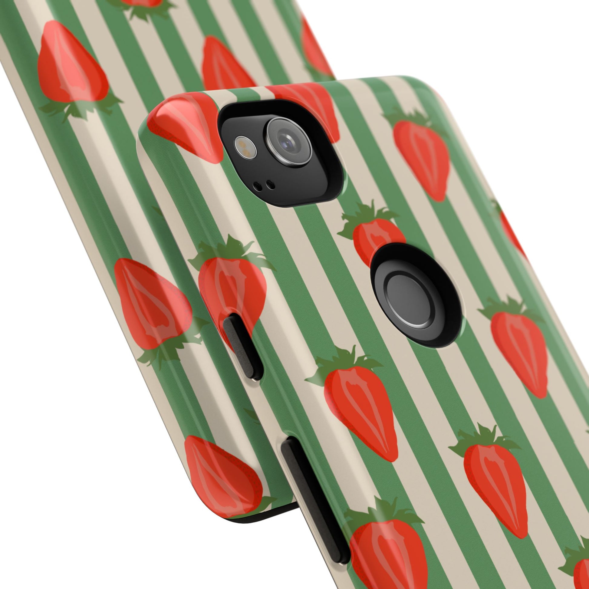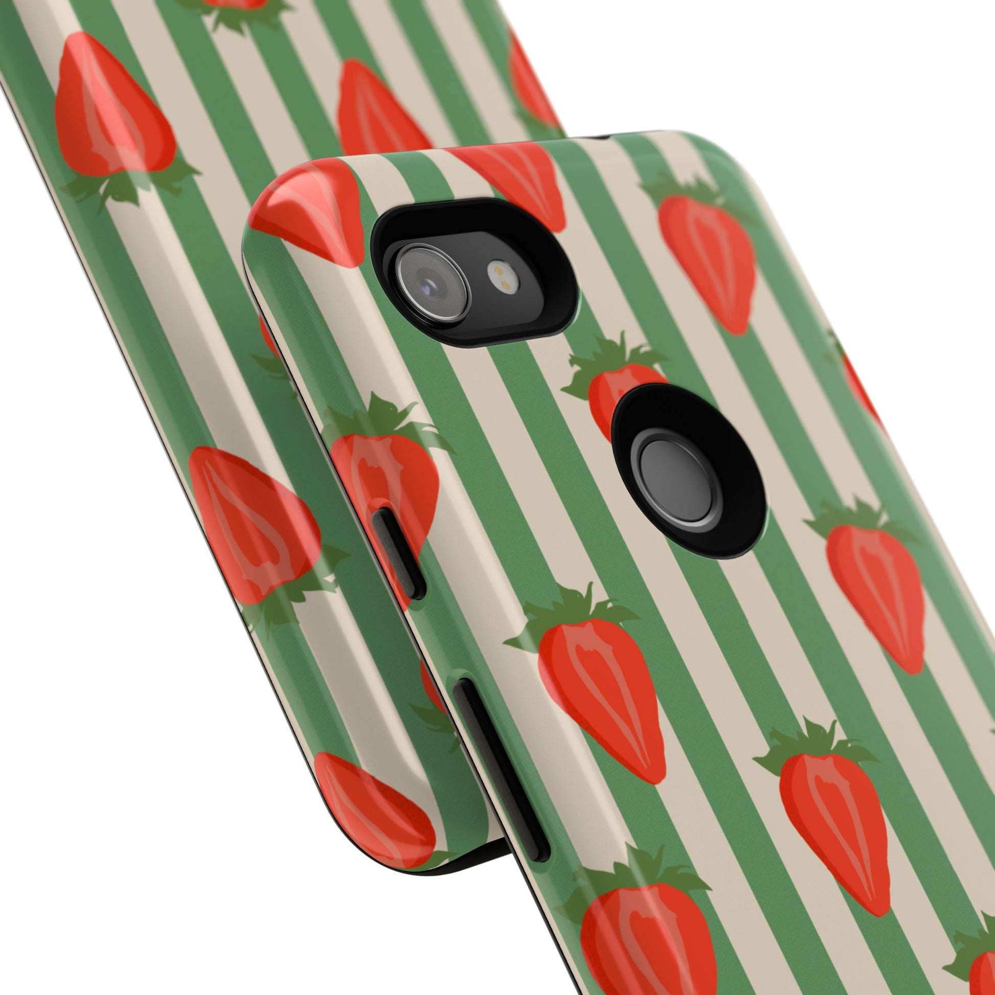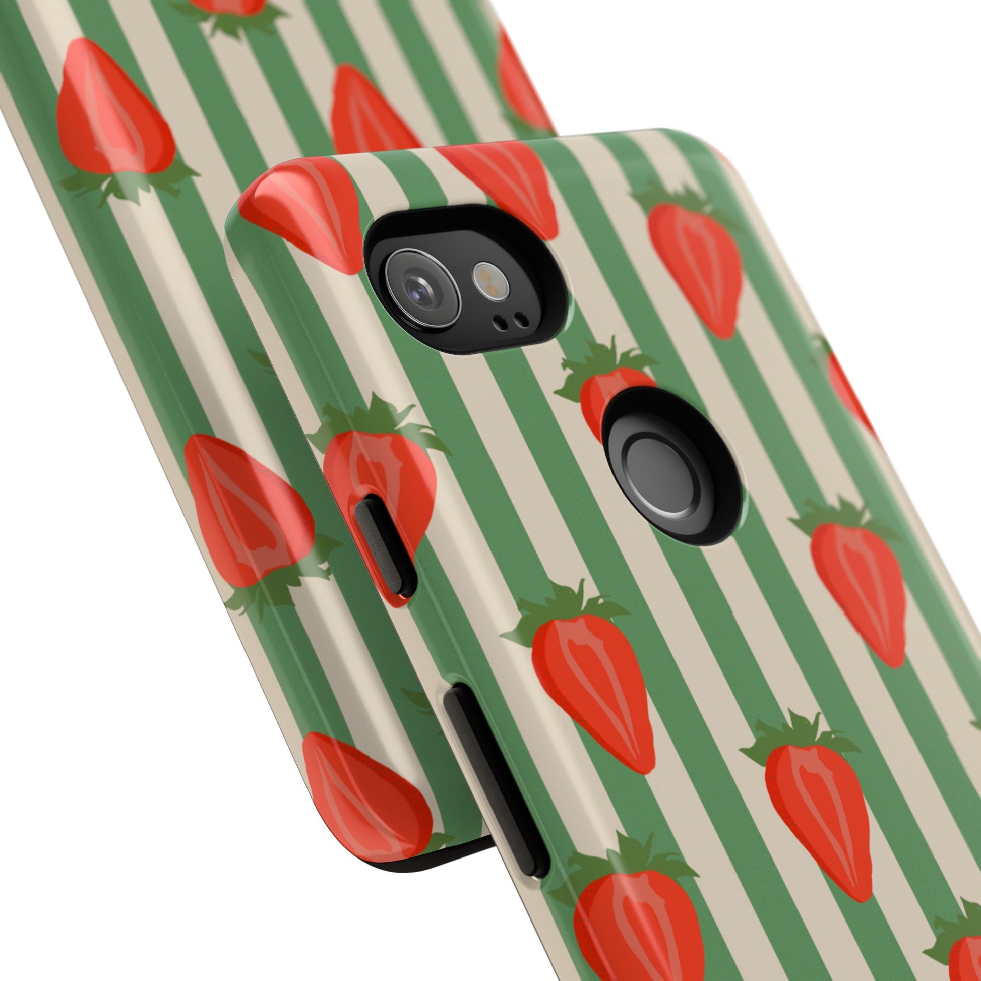 Introducing our stylish and durable Tough Cases, perfect for those who appreciate both aesthetics and functionality. Each case features a vibrant design that captures attention while providing exceptional protection for your device. The lively strawberry pattern against a chic striped background brings a refreshing vibe, making your phone a trendy accessory for any occasion.