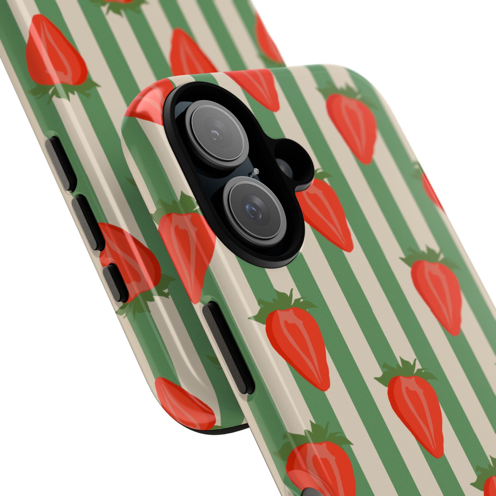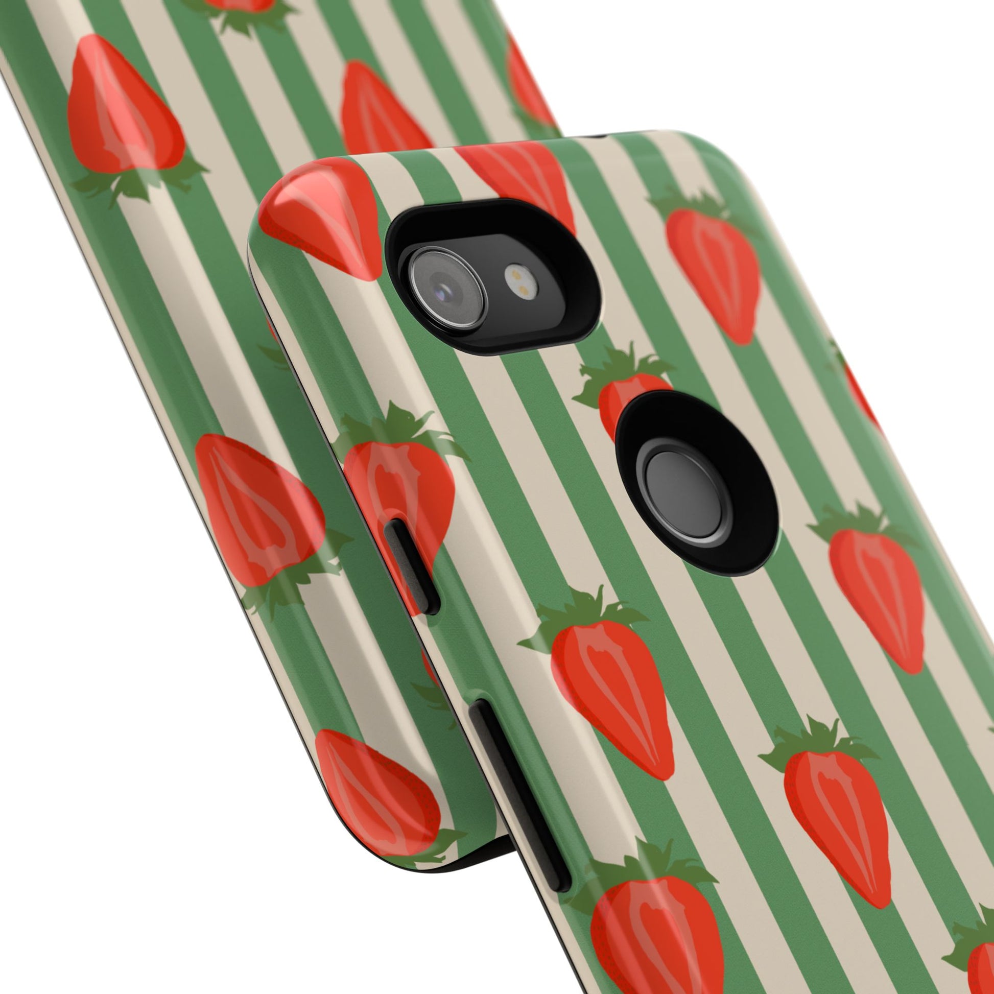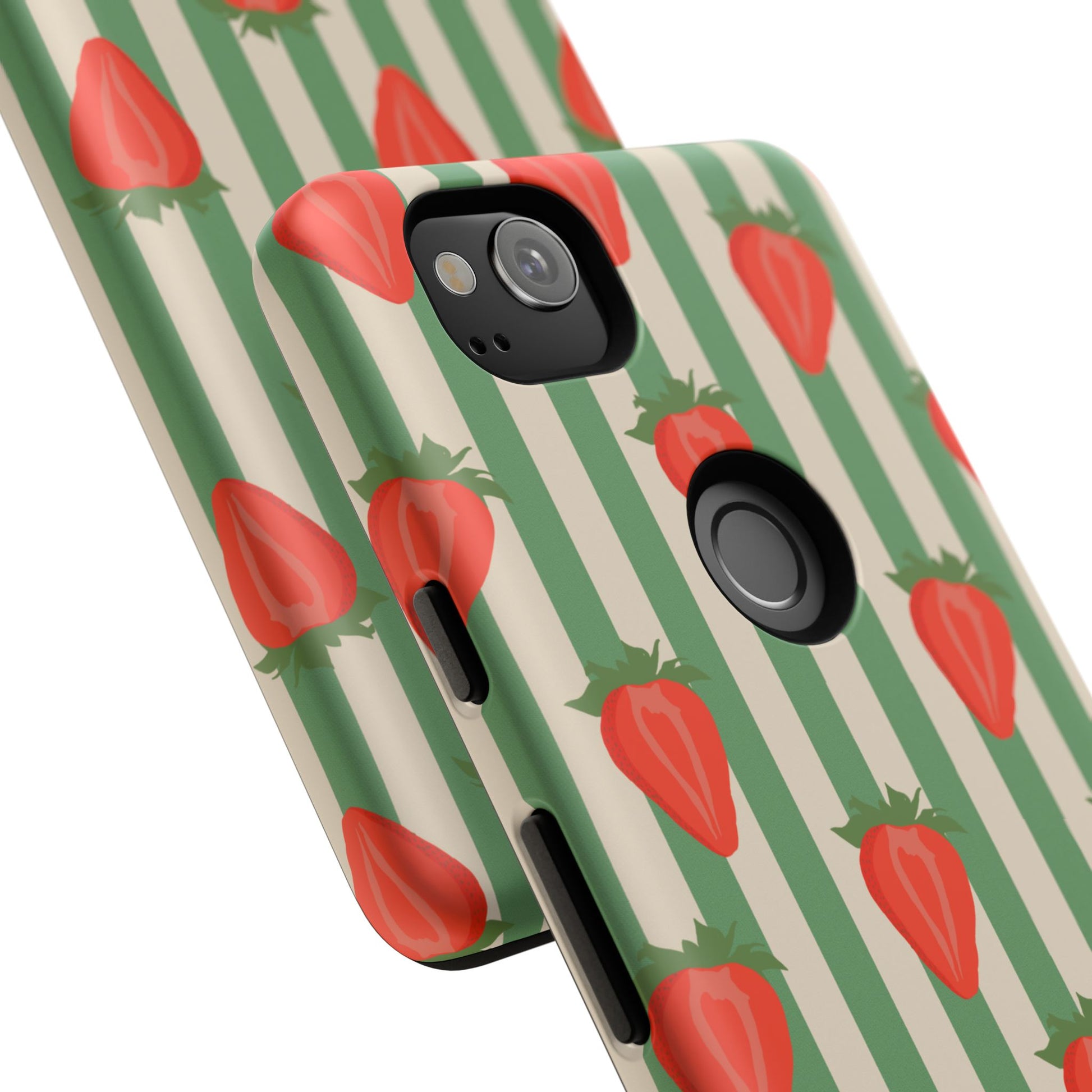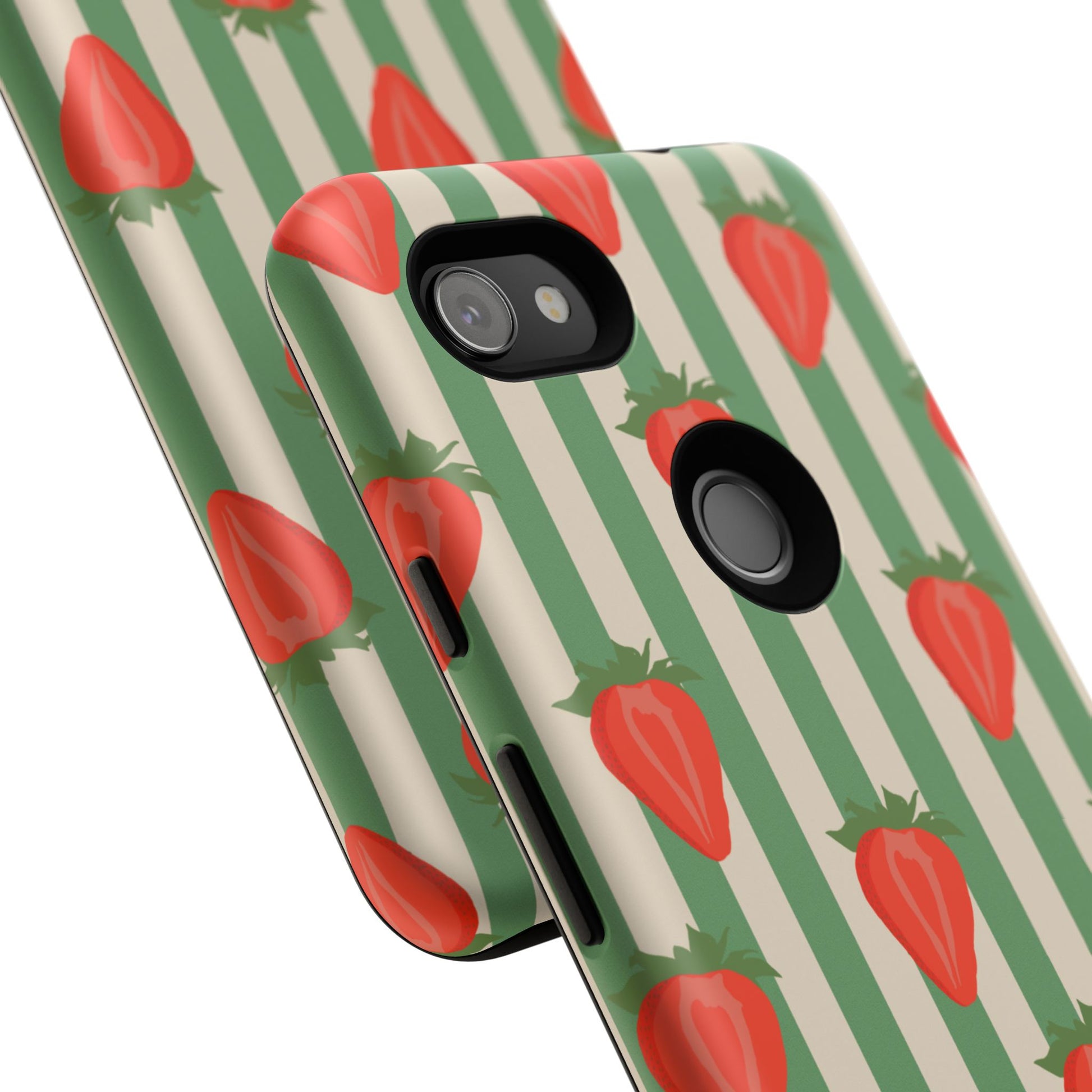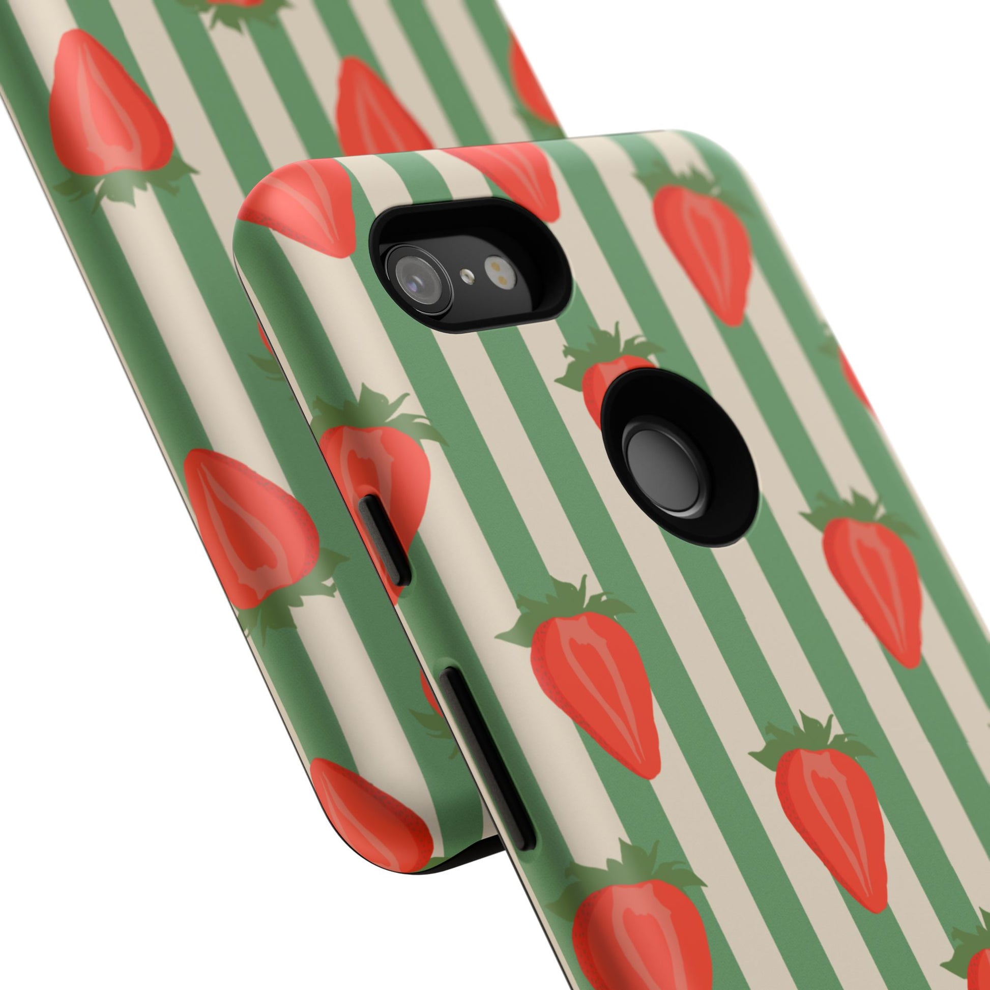 Introducing our stylish and durable Tough Cases, perfect for those who appreciate both aesthetics and functionality. Each case features a vibrant design that captures attention while providing exceptional protection for your device. The lively strawberry pattern against a chic striped background brings a refreshing vibe, making your phone a trendy accessory for any occasion.