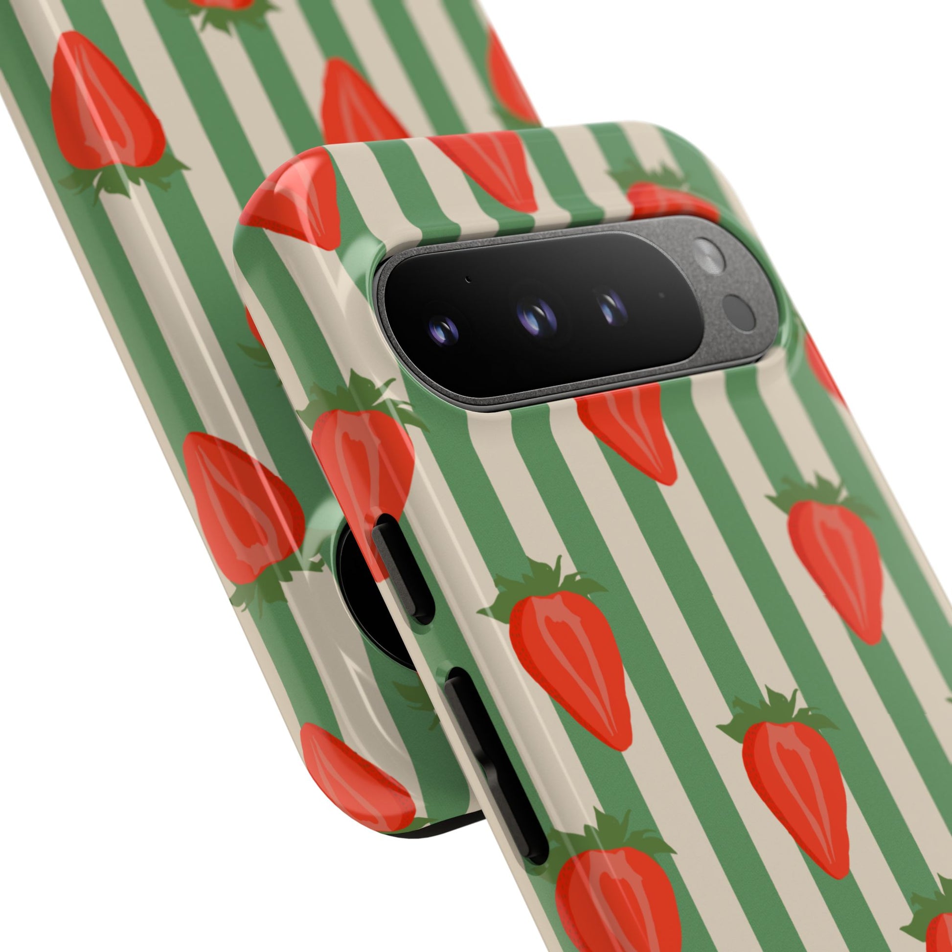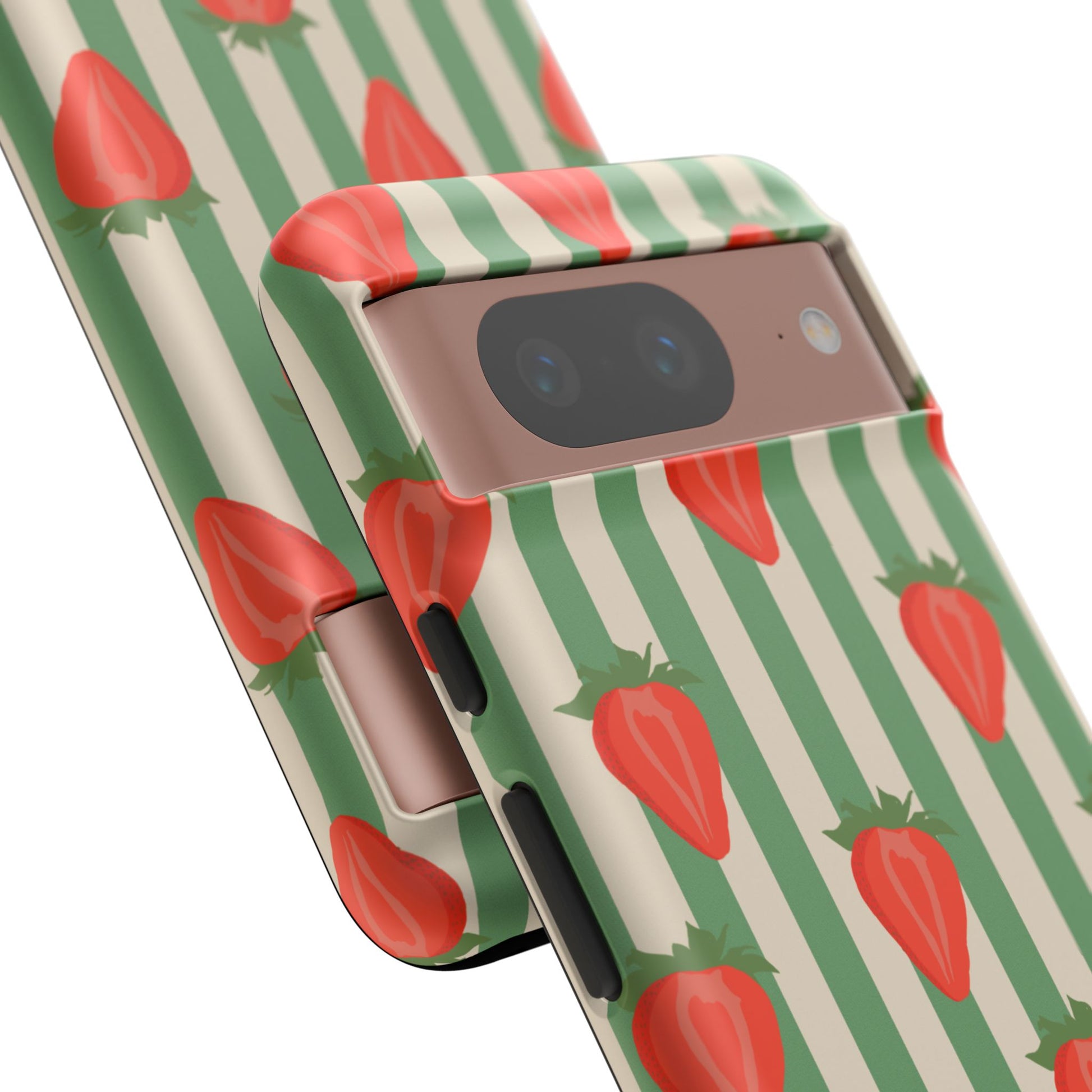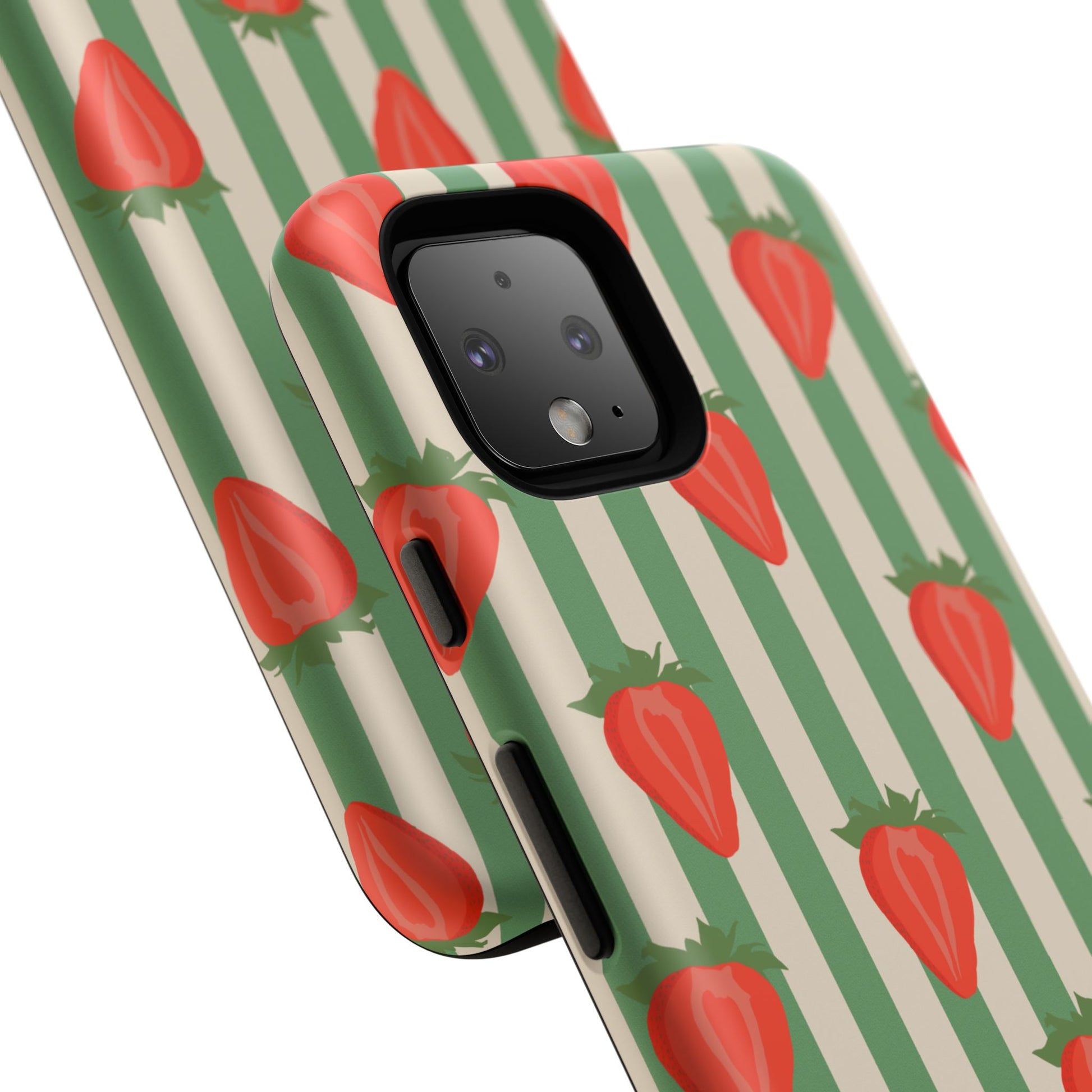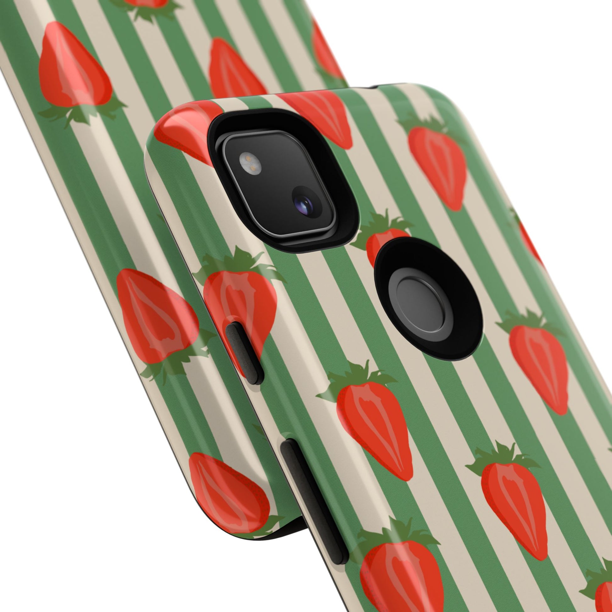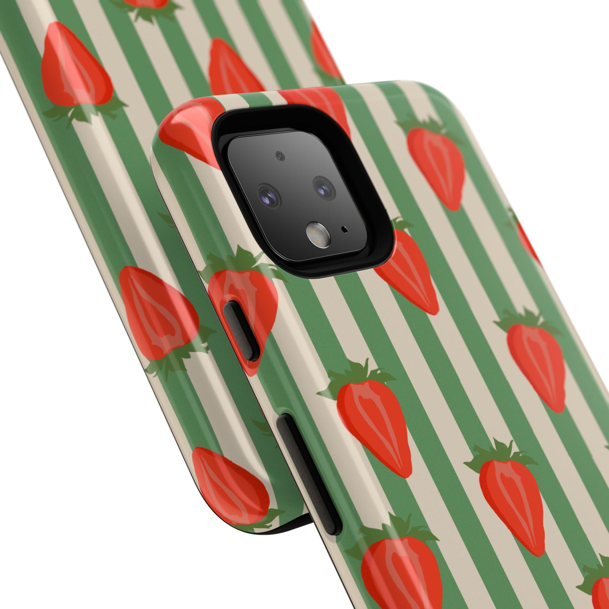 Introducing our stylish and durable Tough Cases, perfect for those who appreciate both aesthetics and functionality. Each case features a vibrant design that captures attention while providing exceptional protection for your device. The lively strawberry pattern against a chic striped background brings a refreshing vibe, making your phone a trendy accessory for any occasion.