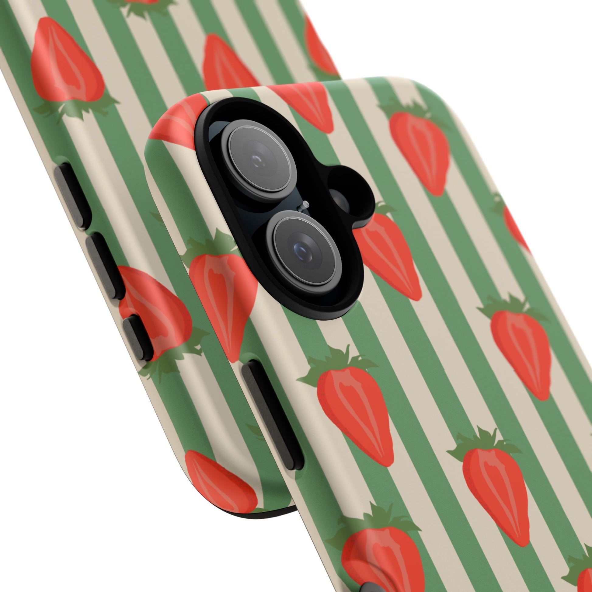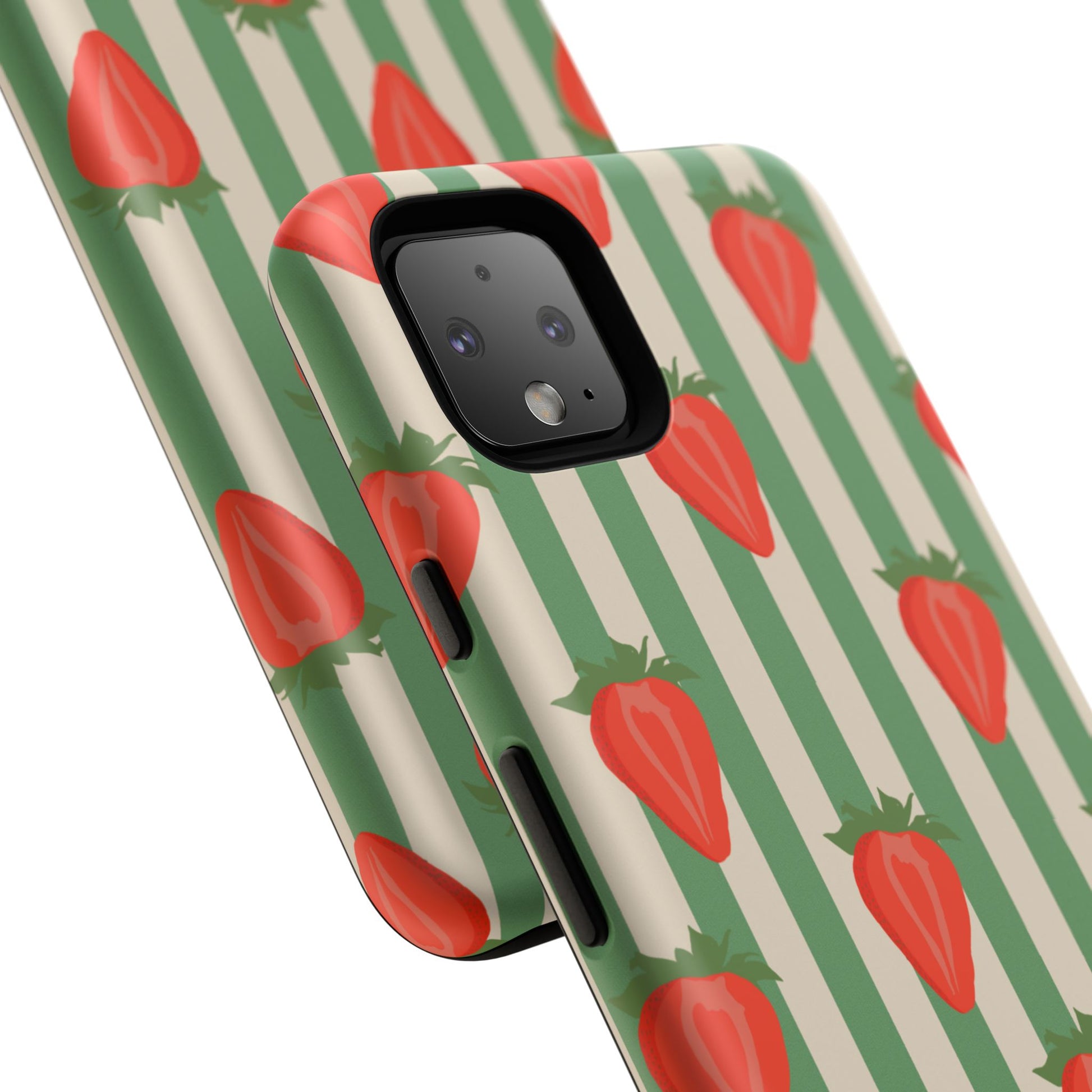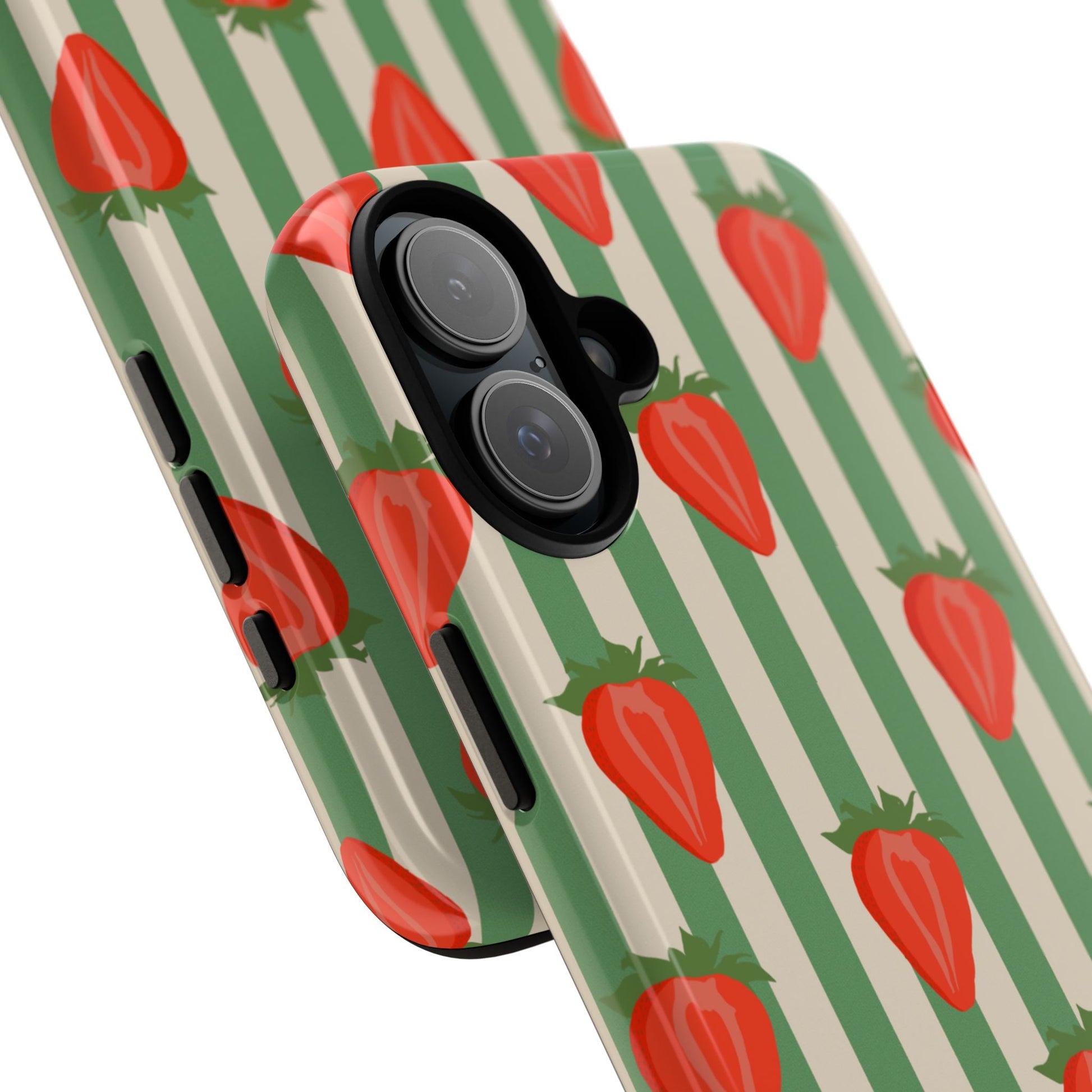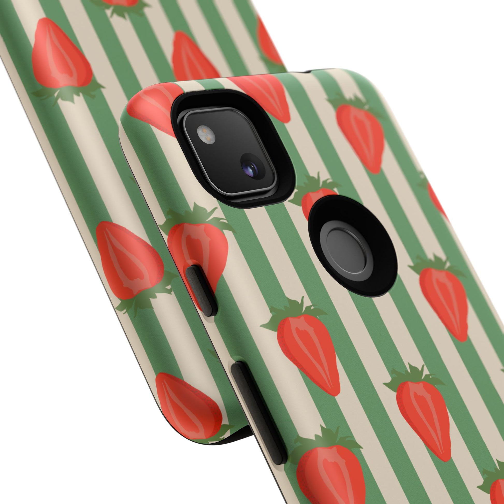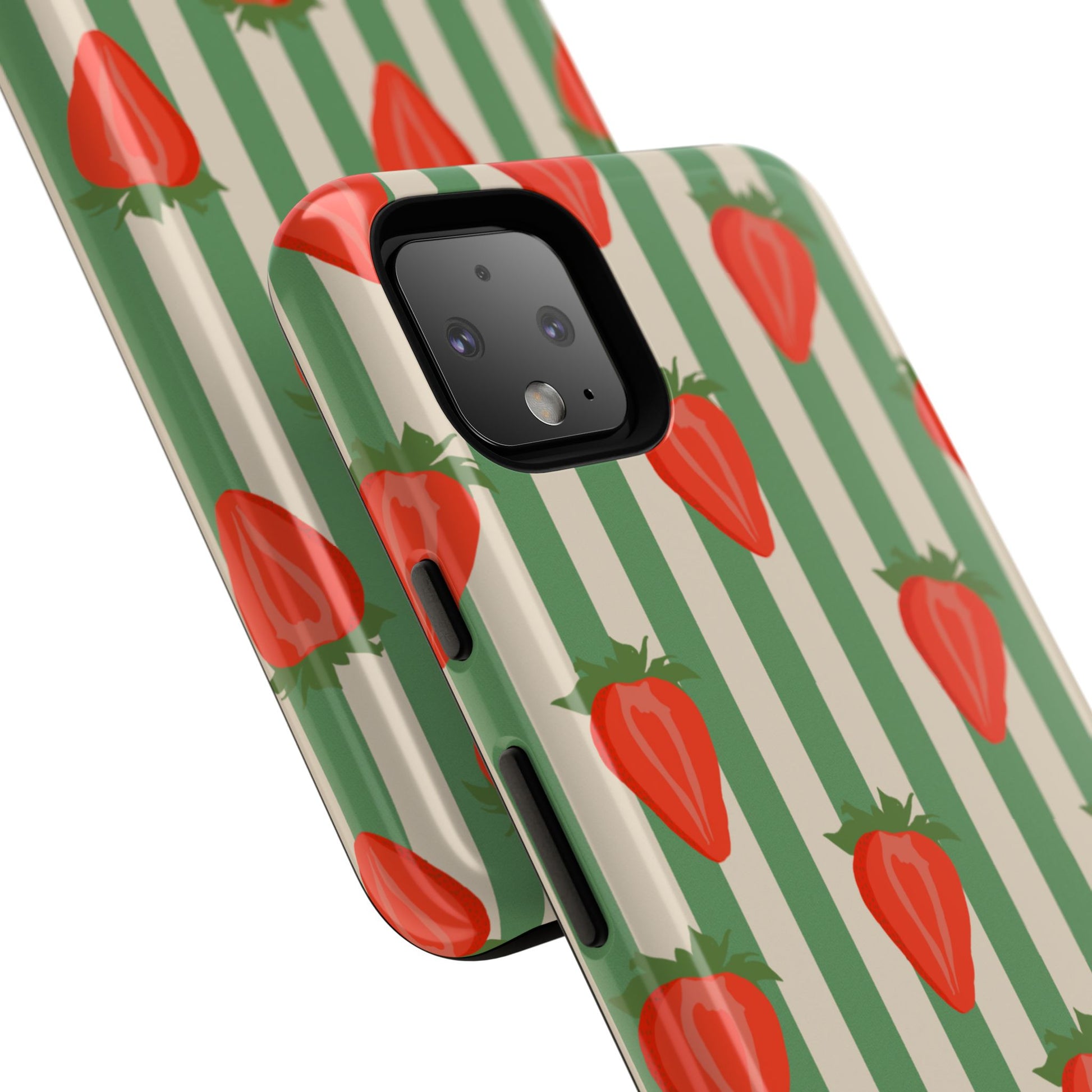 Introducing our stylish and durable Tough Cases, perfect for those who appreciate both aesthetics and functionality. Each case features a vibrant design that captures attention while providing exceptional protection for your device. The lively strawberry pattern against a chic striped background brings a refreshing vibe, making your phone a trendy accessory for any occasion.