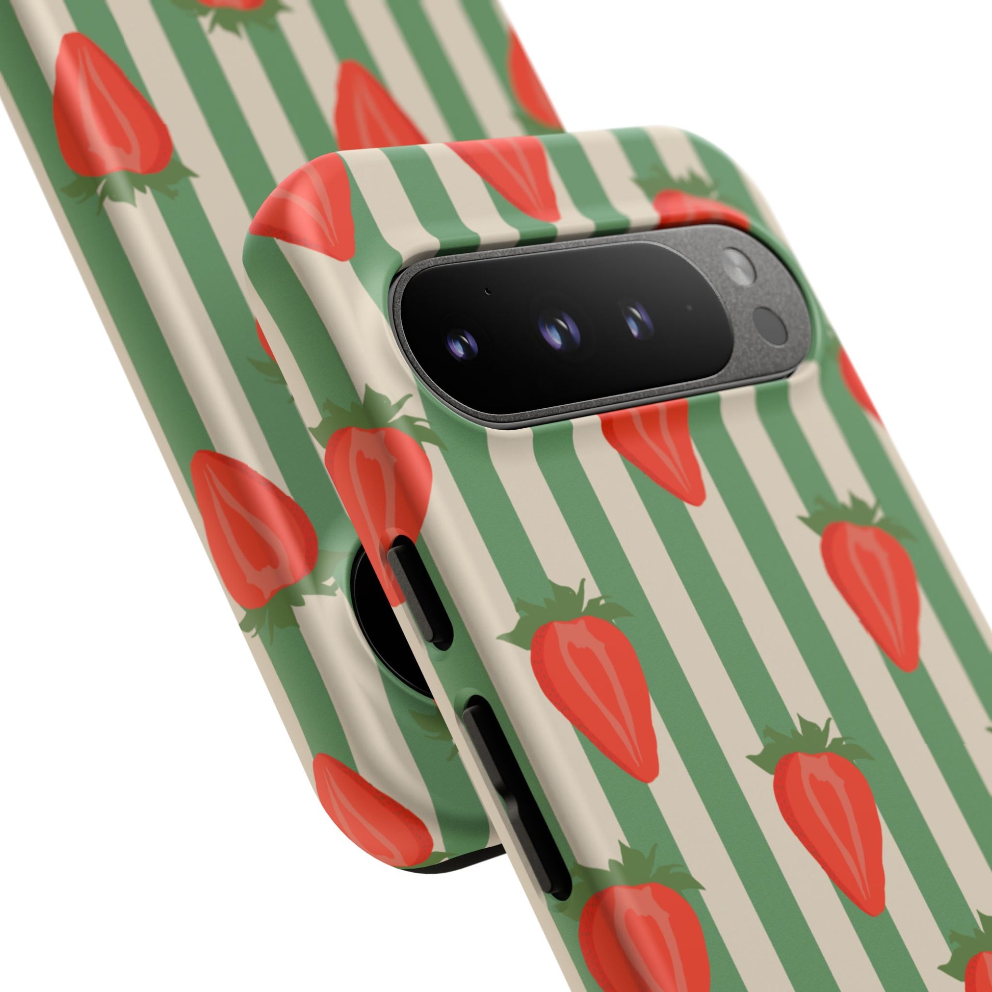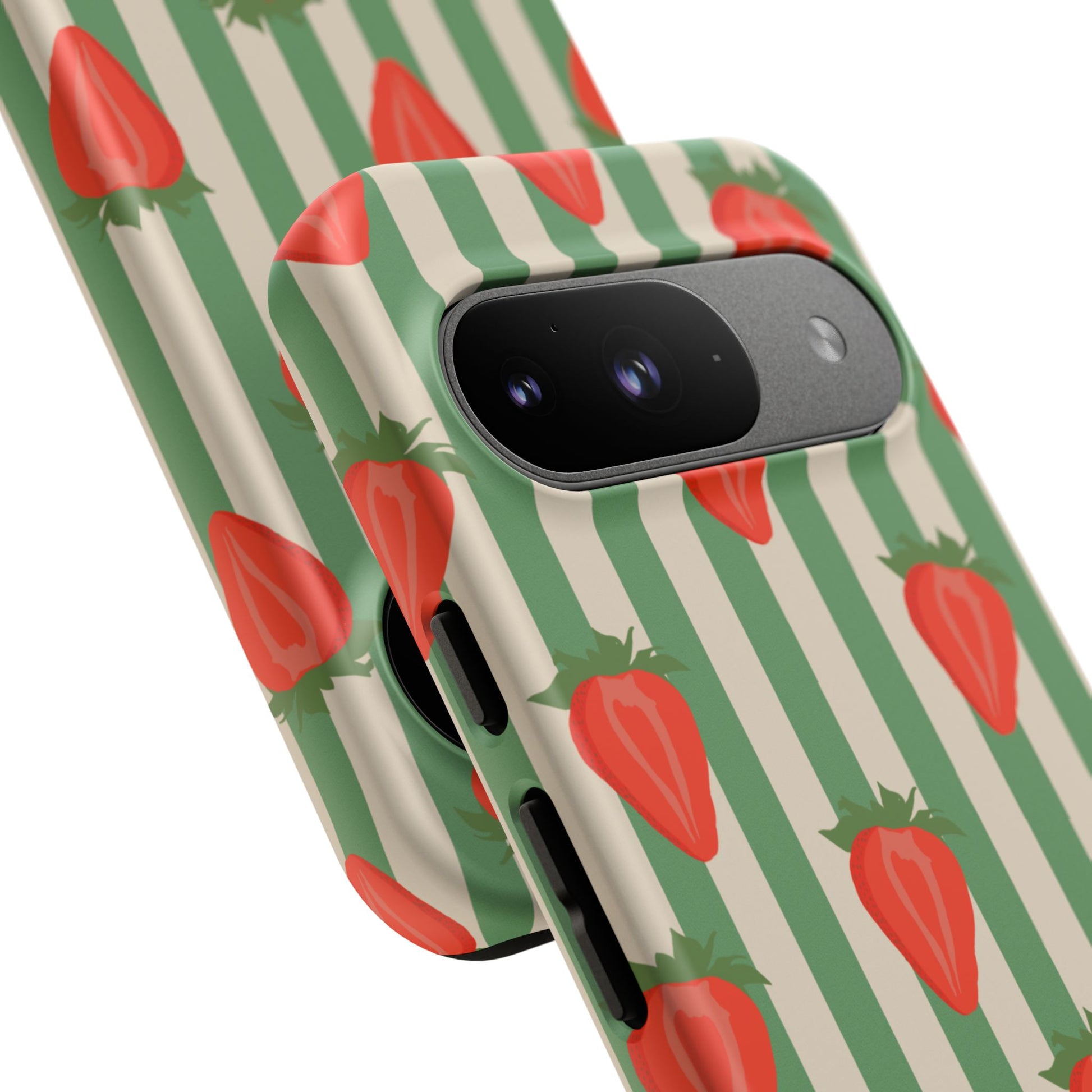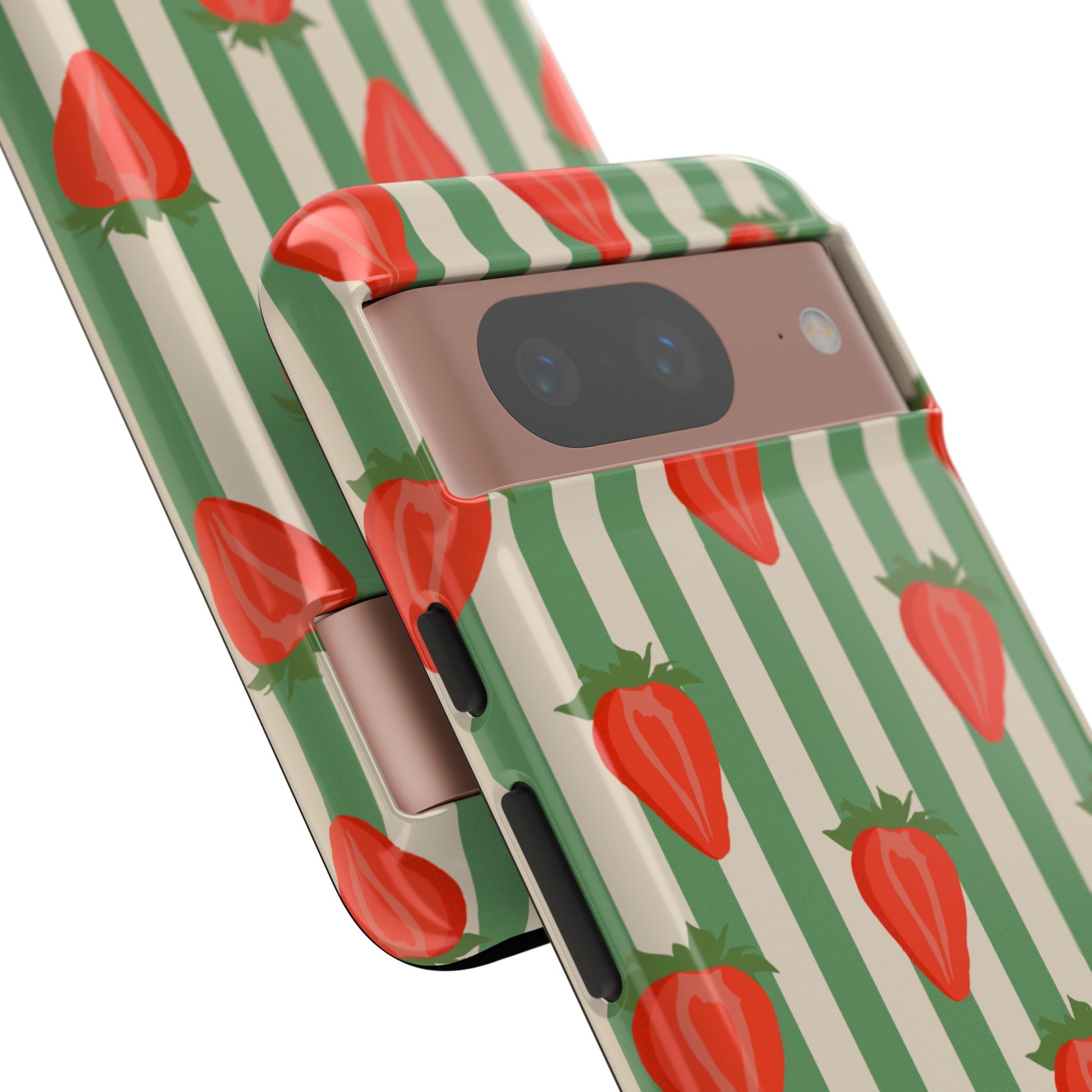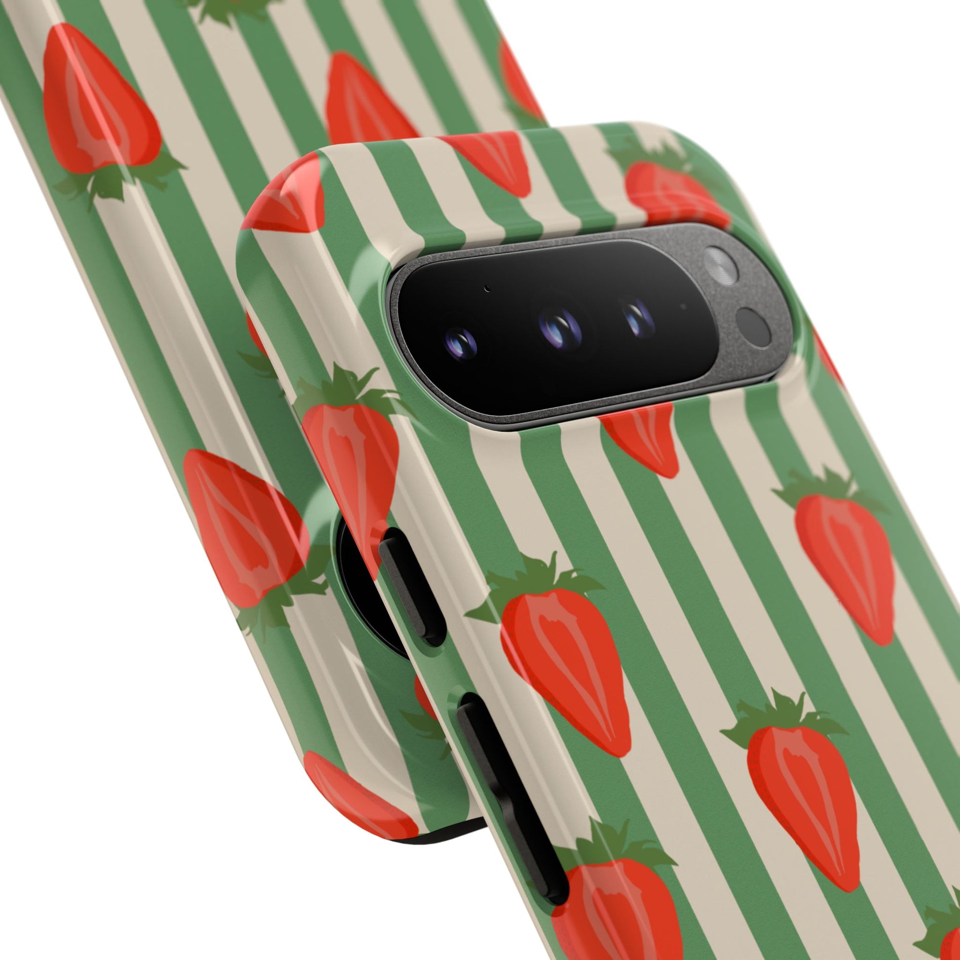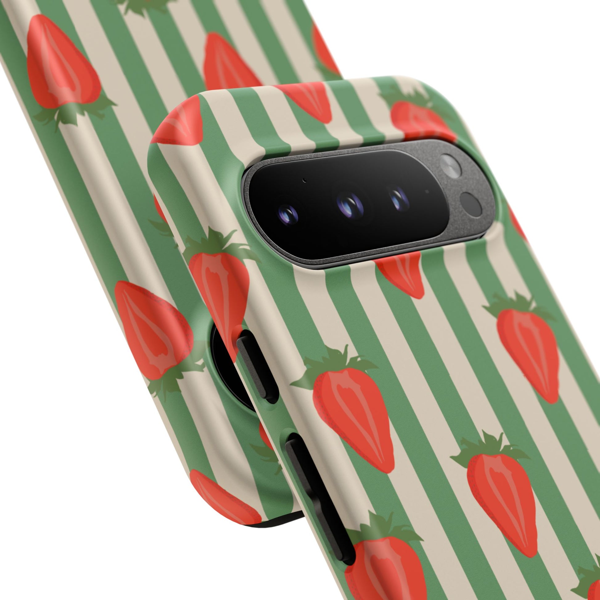Introducing our stylish and durable Tough Cases, perfect for those who appreciate both aesthetics and functionality. Each case features a vibrant design that captures attention while providing exceptional protection for your device. The lively strawberry pattern against a chic striped background brings a refreshing vibe, making your phone a trendy accessory for any occasion.