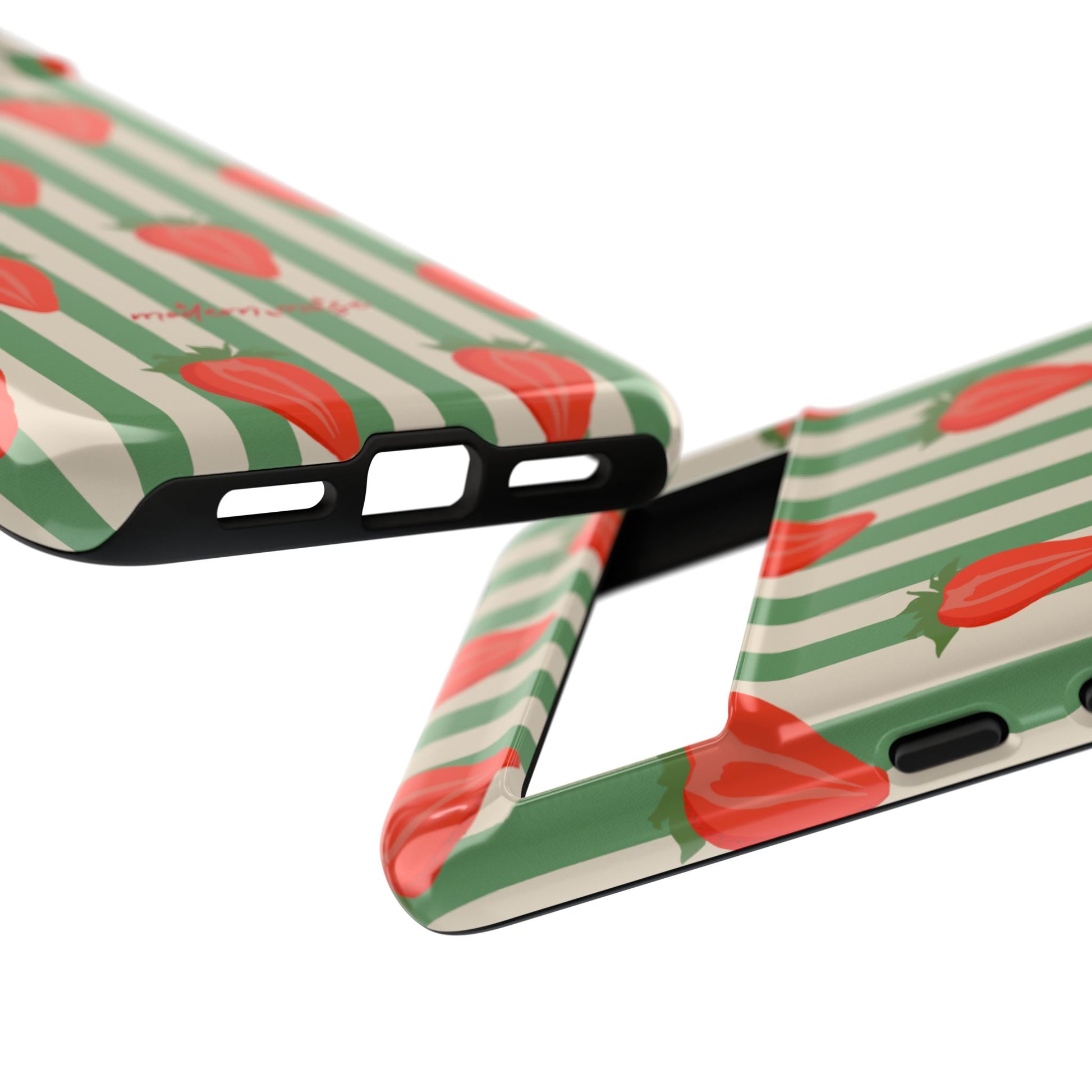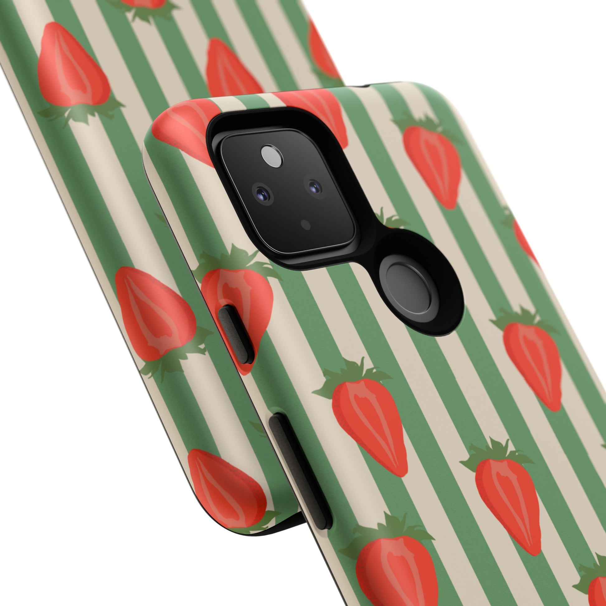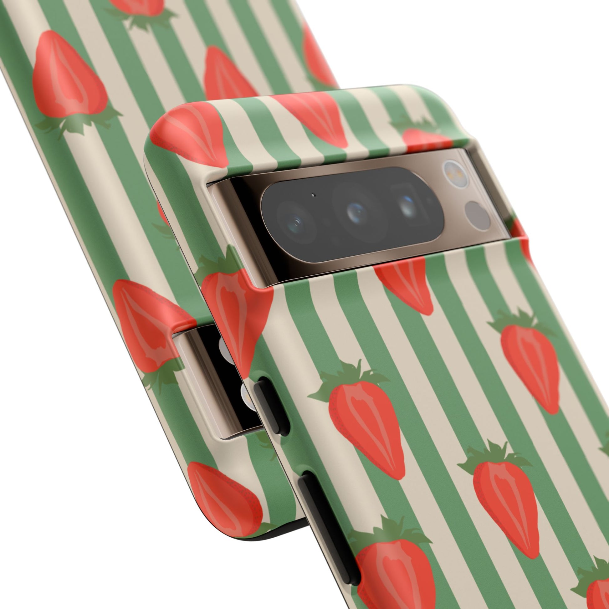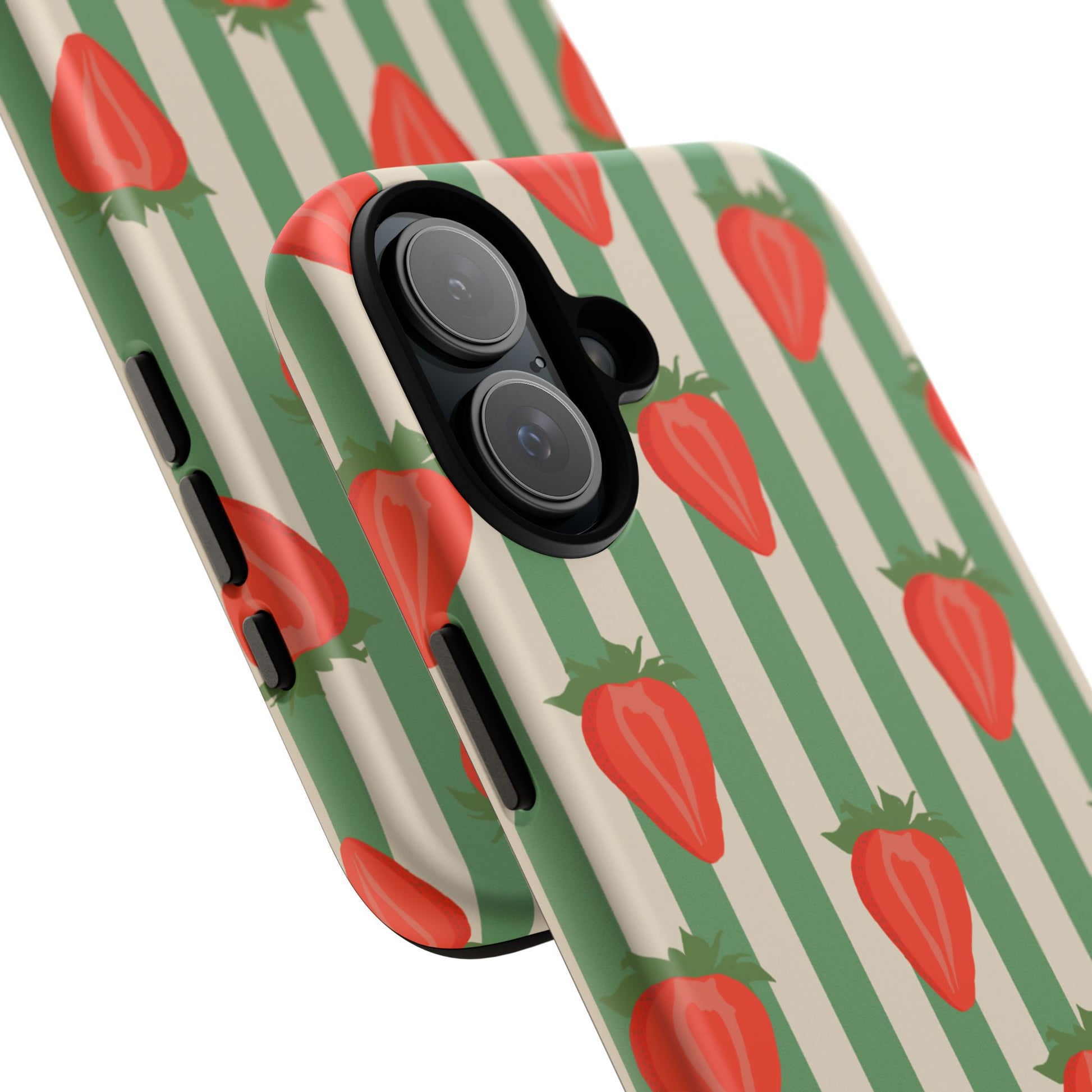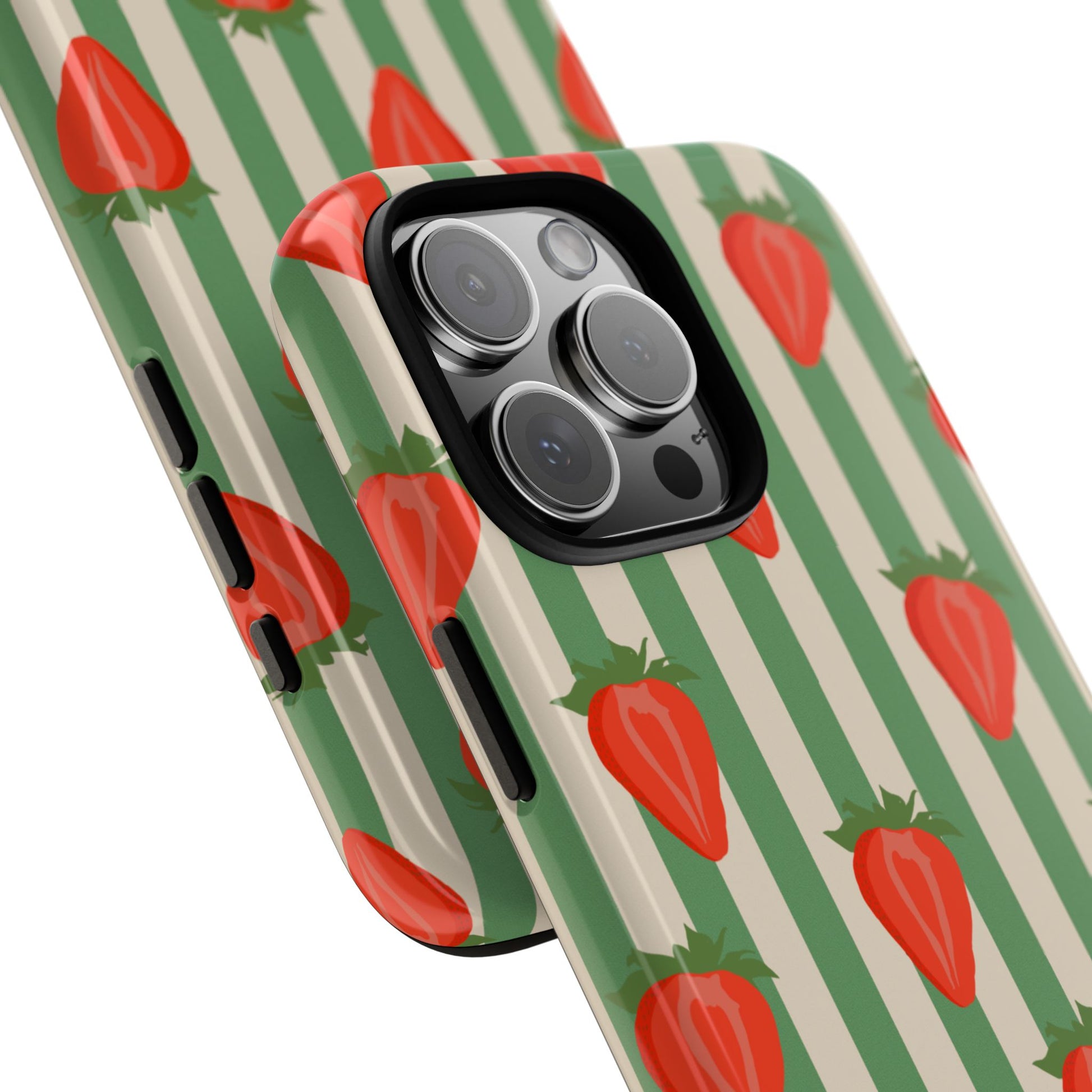 Introducing our stylish and durable Tough Cases, perfect for those who appreciate both aesthetics and functionality. Each case features a vibrant design that captures attention while providing exceptional protection for your device. The lively strawberry pattern against a chic striped background brings a refreshing vibe, making your phone a trendy accessory for any occasion.