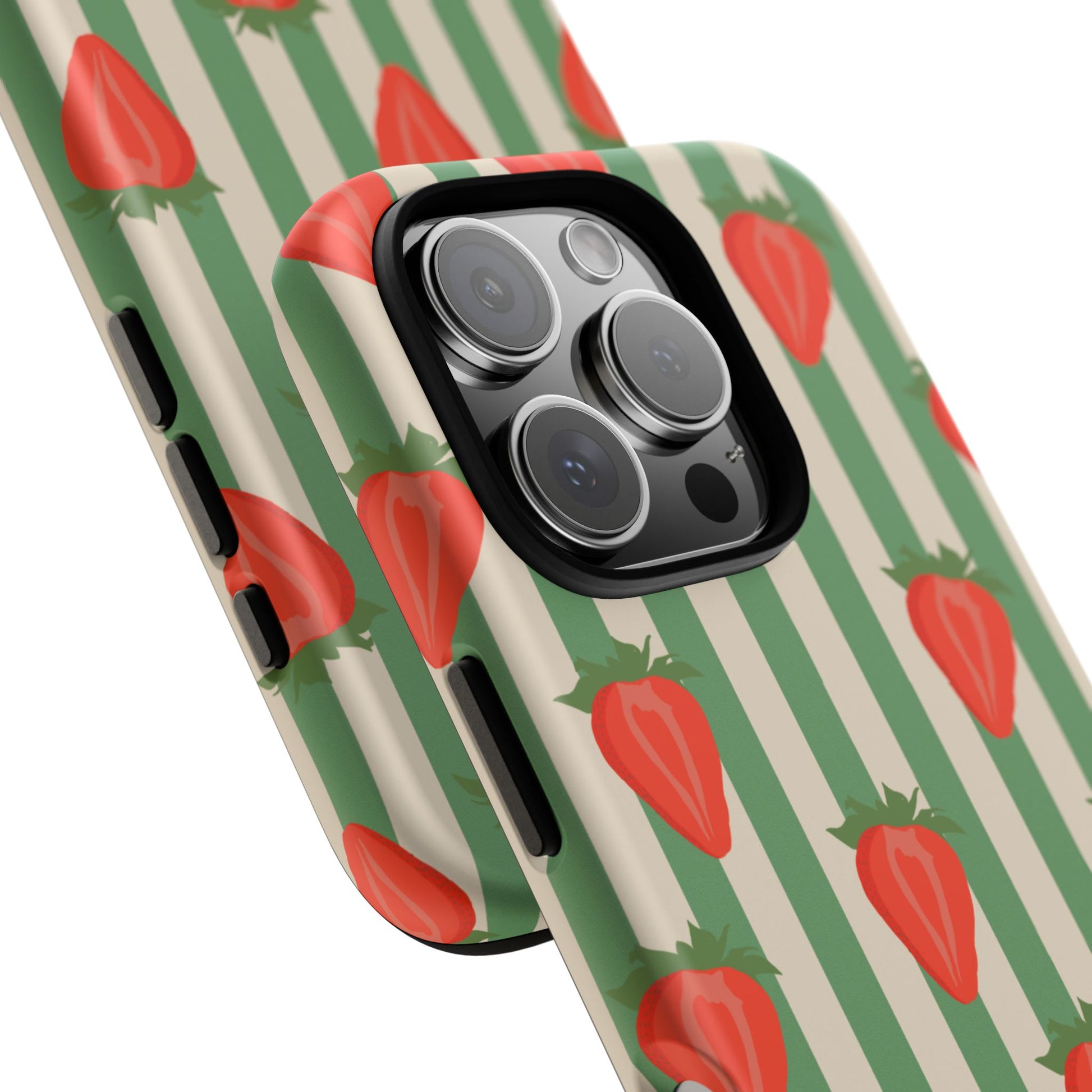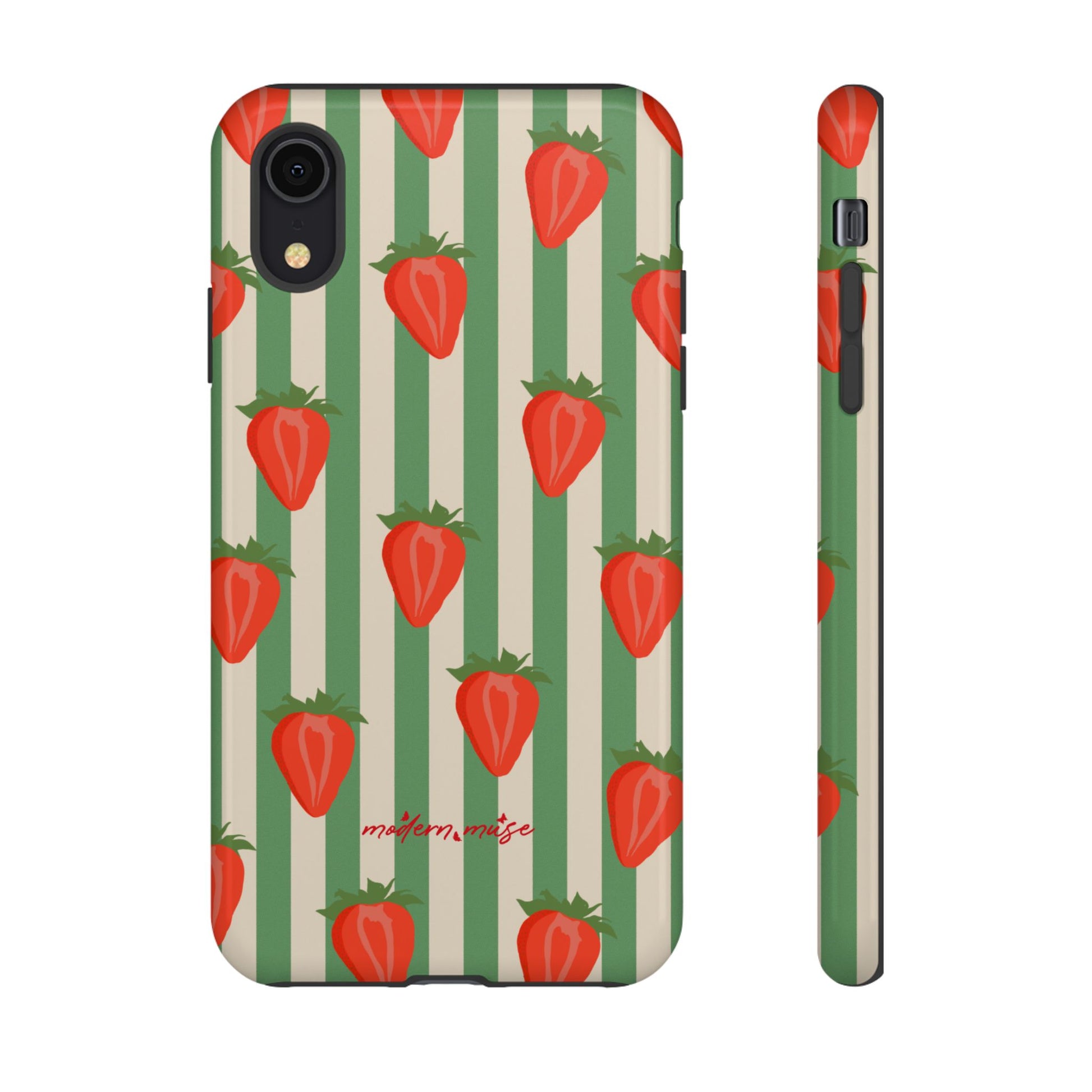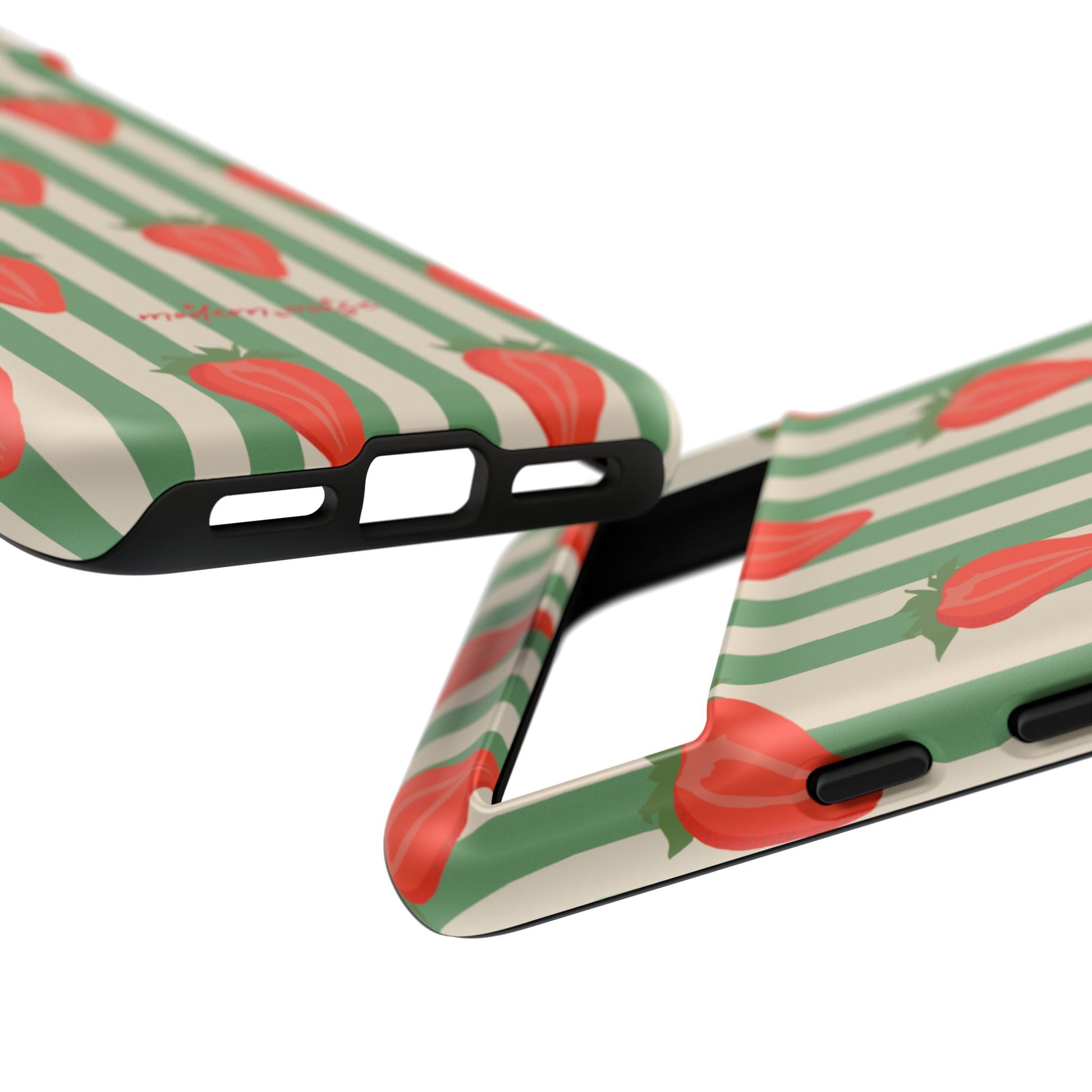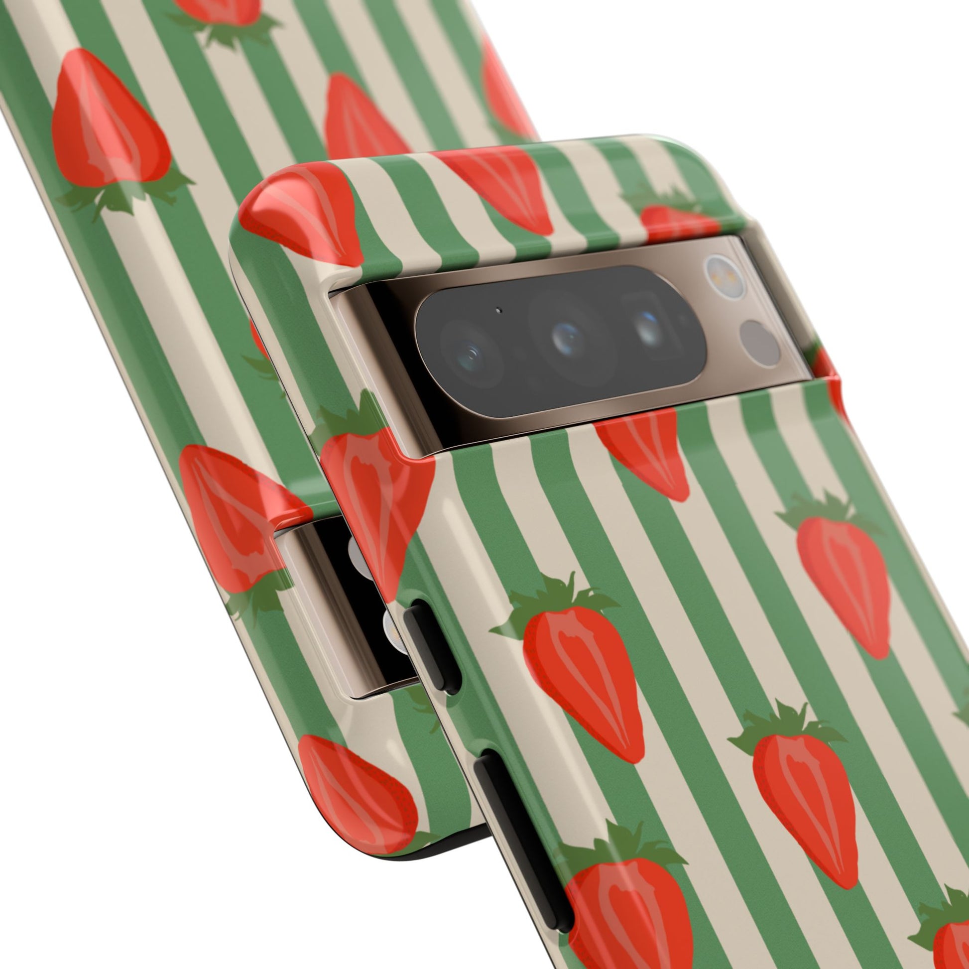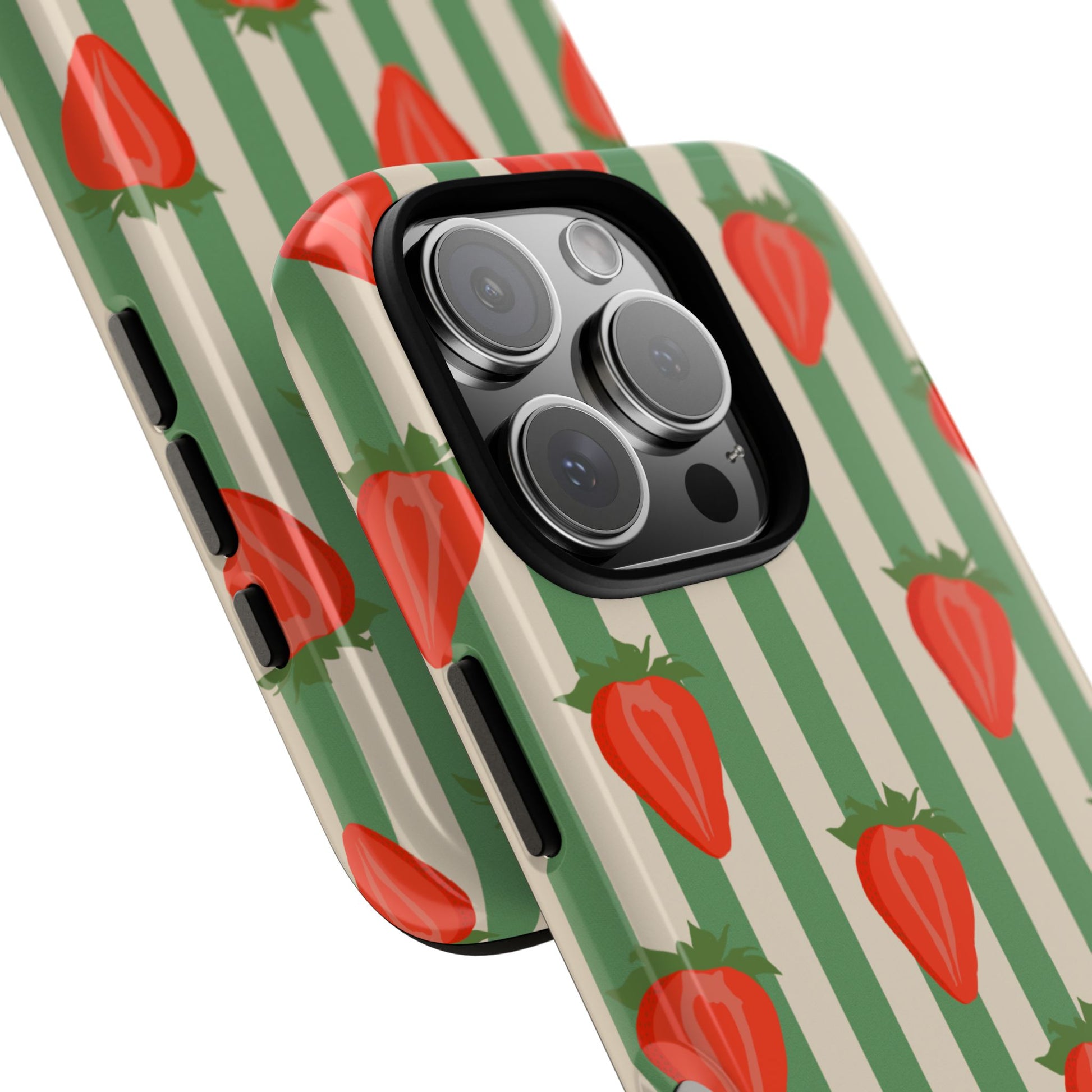 Introducing our stylish and durable Tough Cases, perfect for those who appreciate both aesthetics and functionality. Each case features a vibrant design that captures attention while providing exceptional protection for your device. The lively strawberry pattern against a chic striped background brings a refreshing vibe, making your phone a trendy accessory for any occasion.