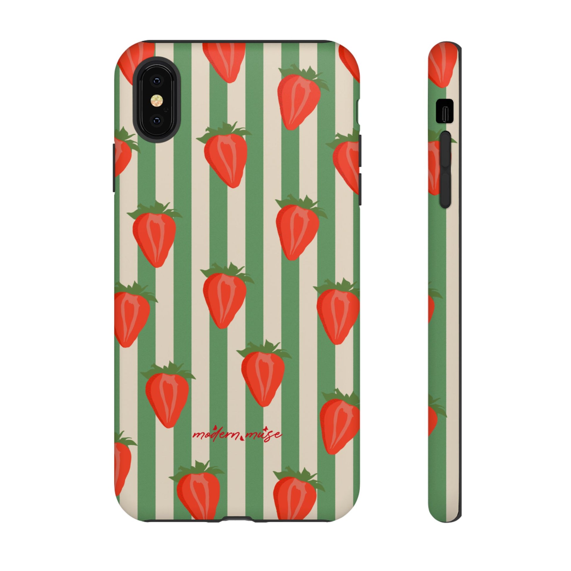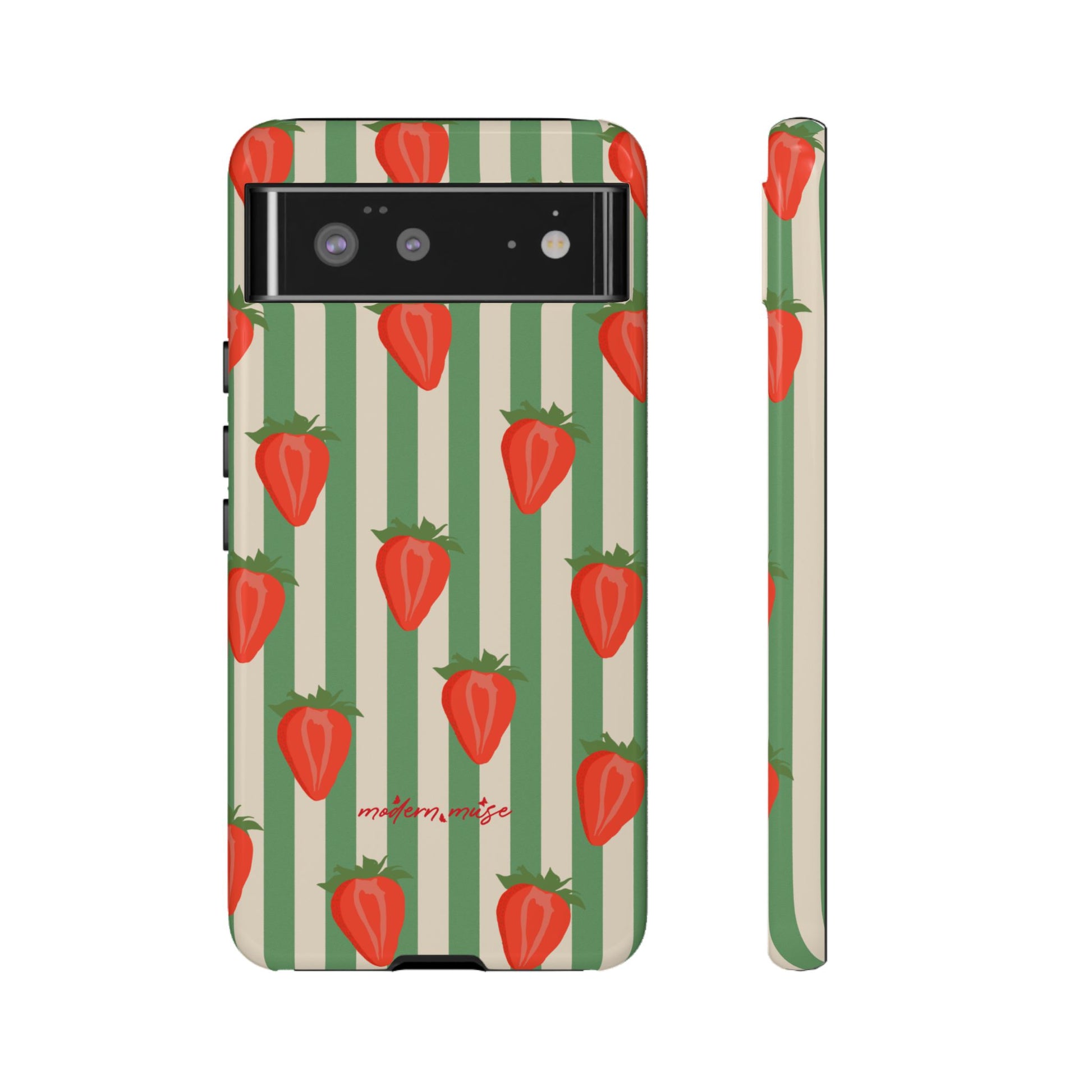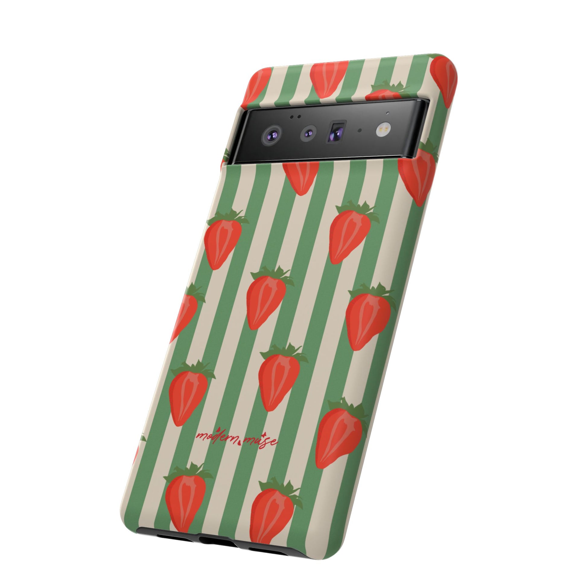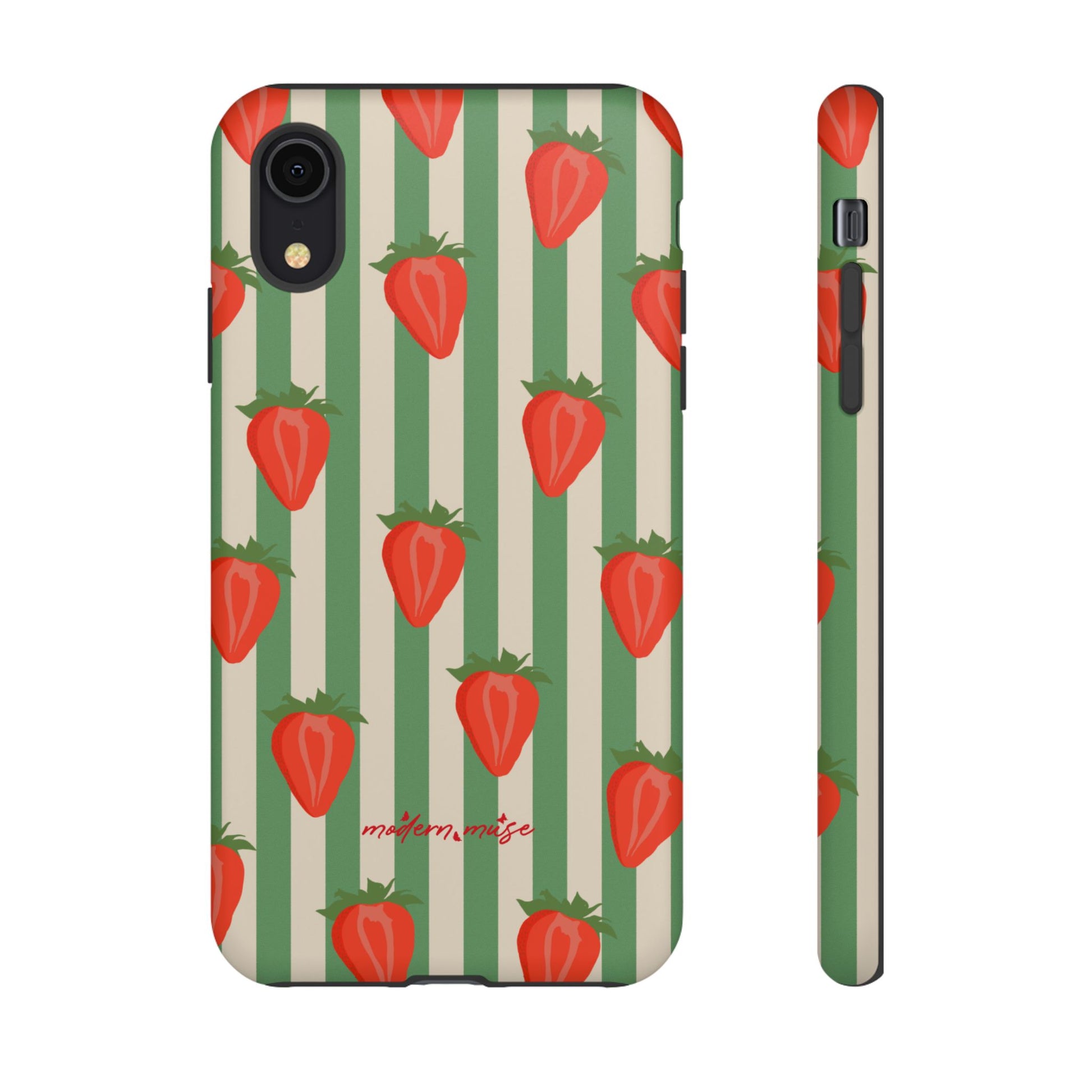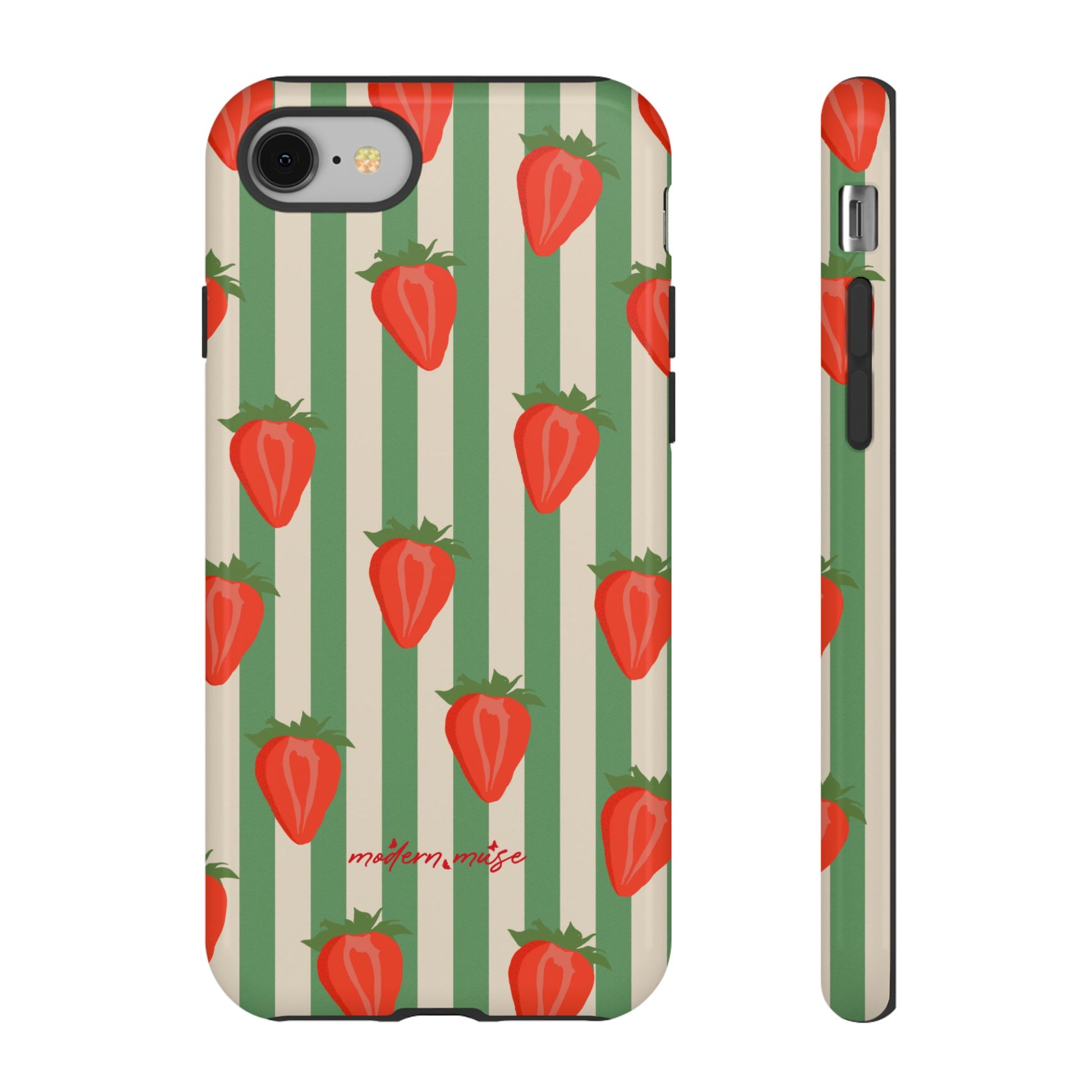 Introducing our stylish and durable Tough Cases, perfect for those who appreciate both aesthetics and functionality. Each case features a vibrant design that captures attention while providing exceptional protection for your device. The lively strawberry pattern against a chic striped background brings a refreshing vibe, making your phone a trendy accessory for any occasion.